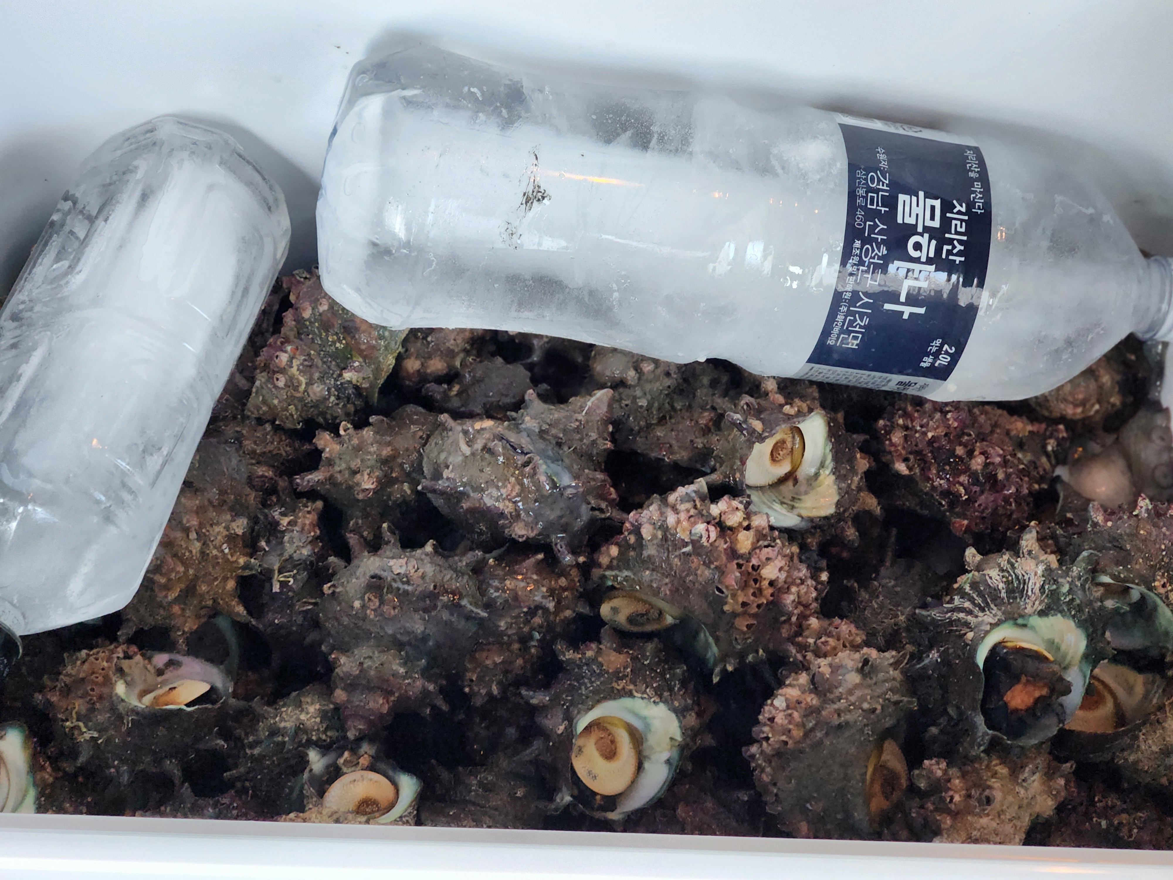 집에 돌아가기전엔 이렇게 자연산 뿔소라와 코끼리조개 대왕조개등을 챙겨주셔서 서울에서 가족들과 지인들과 맛있게 나누어 먹었습니다.