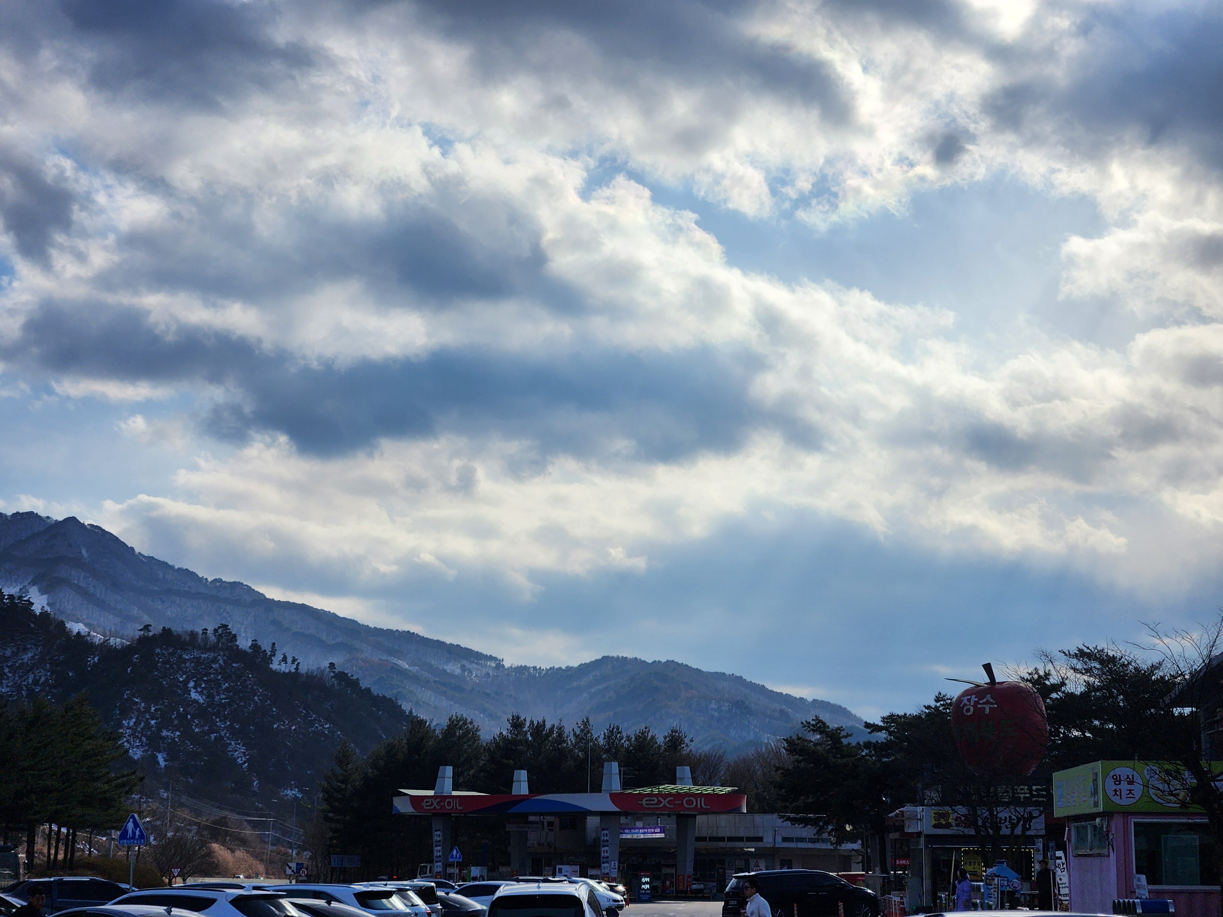 11월즈음 이였으니 날씨가 참 좋았습니다. 살짝 덮힌 설산의 느낌이 참 좋더군요 중간에 덕유산 휴게소에서 찍었습니다.