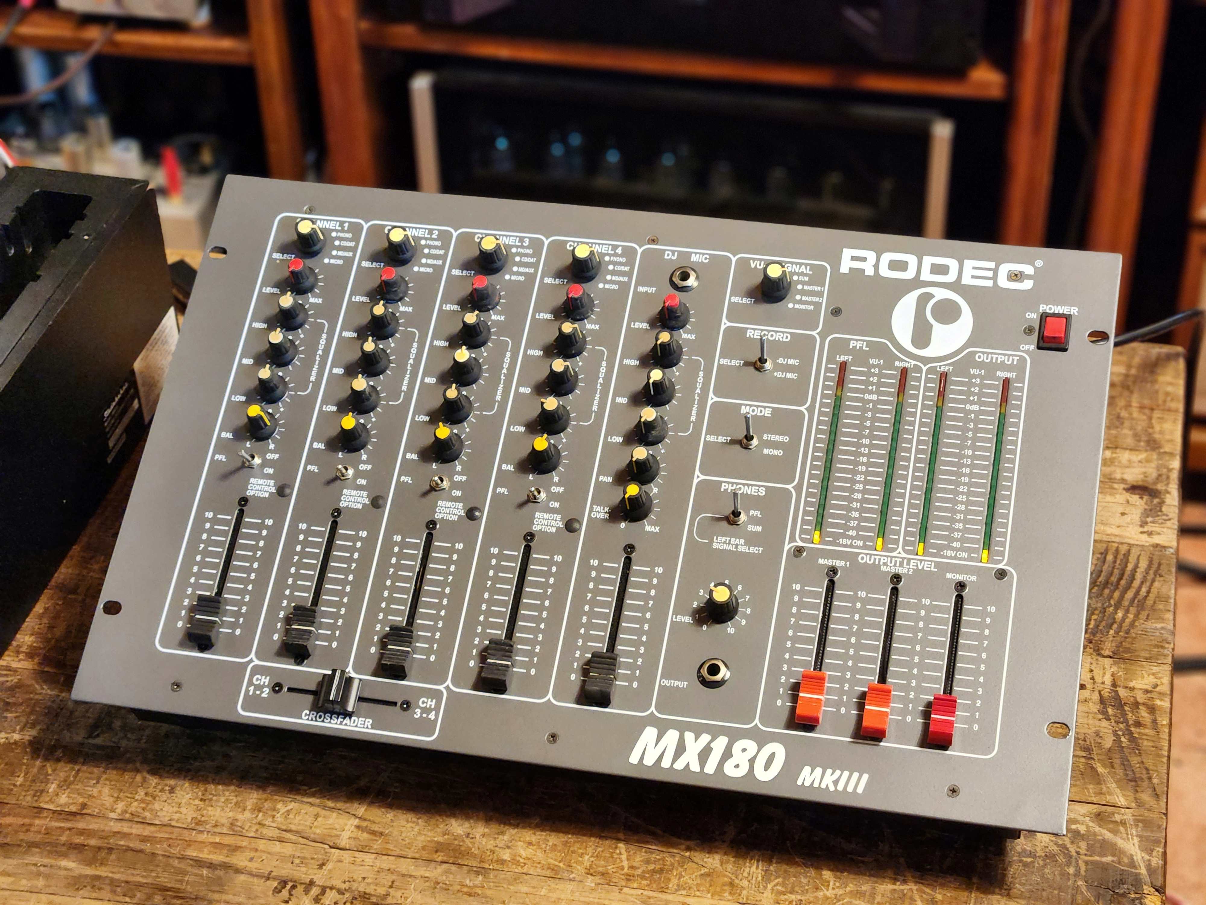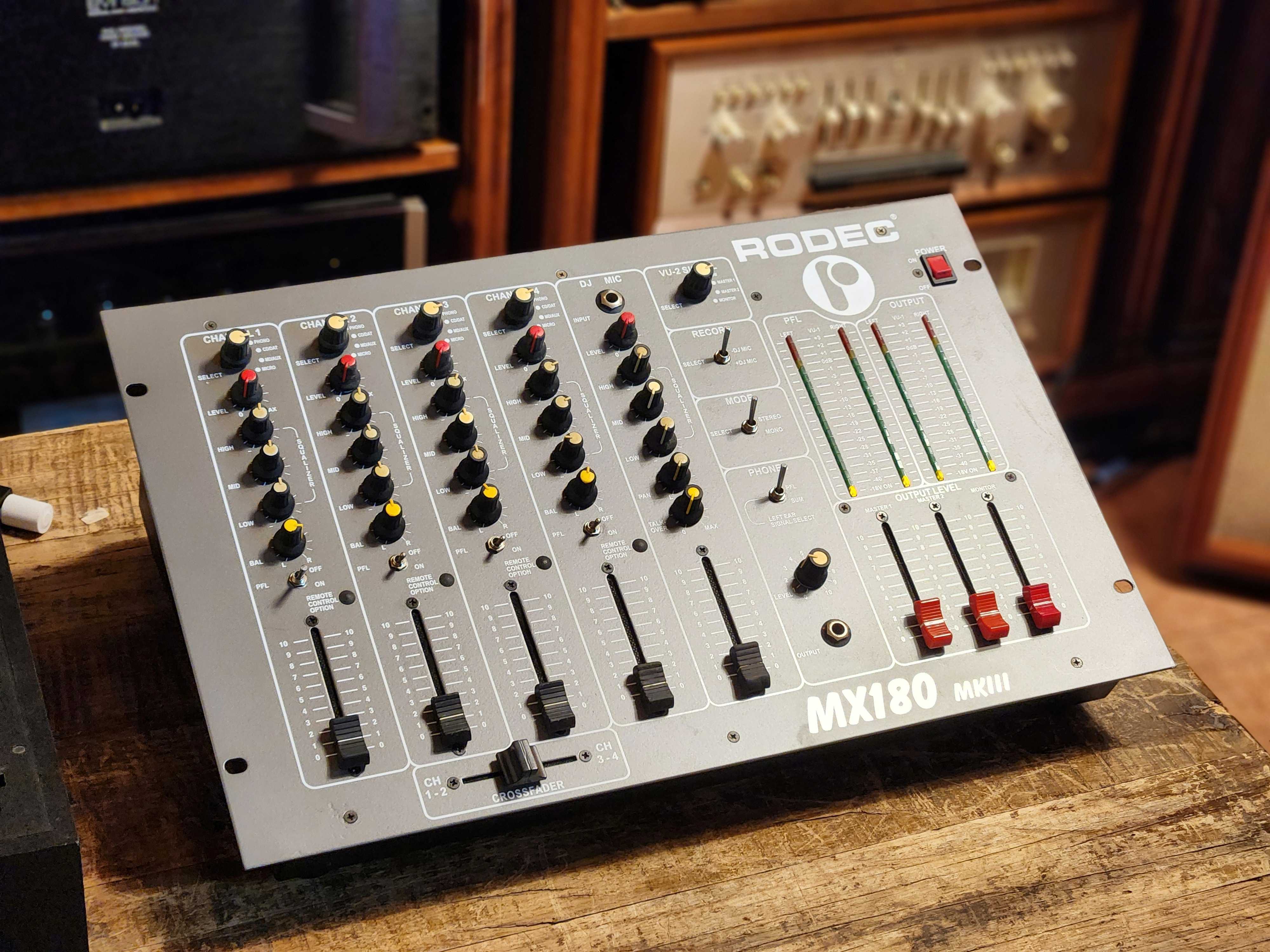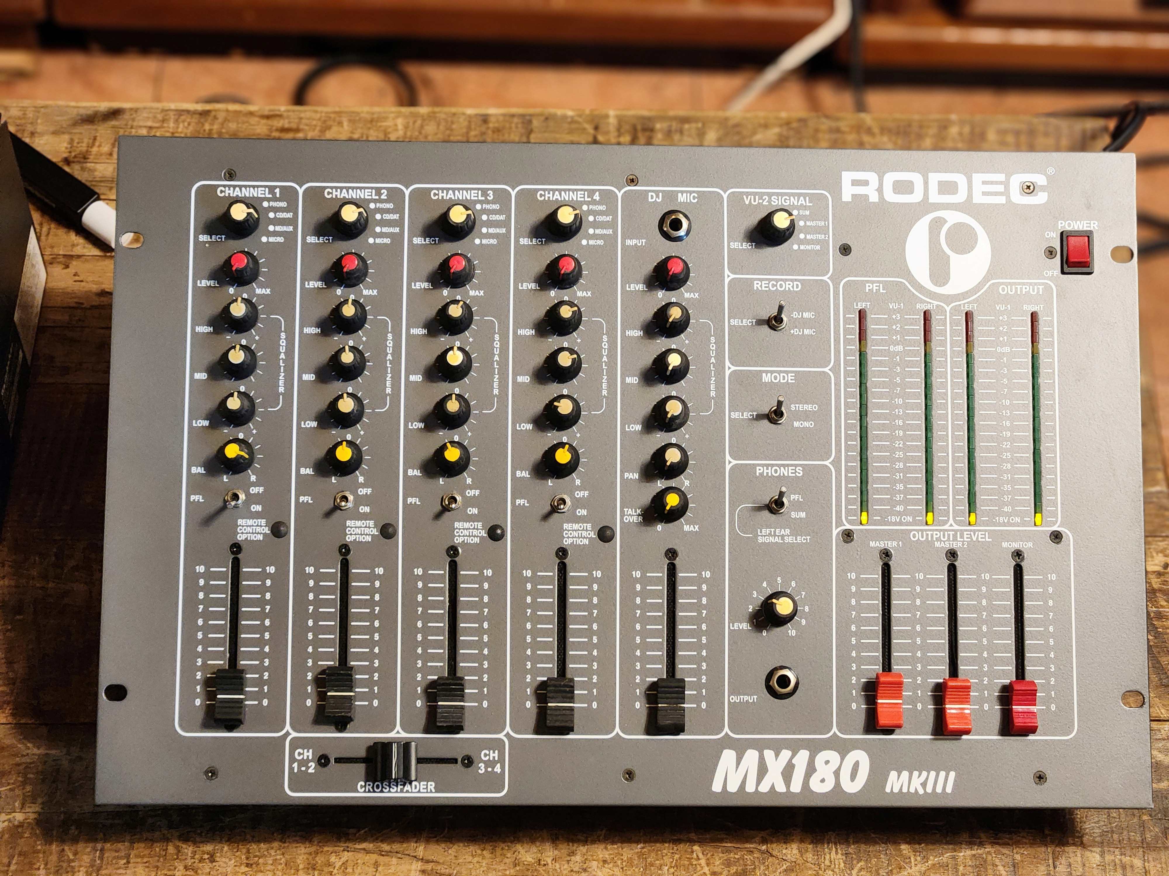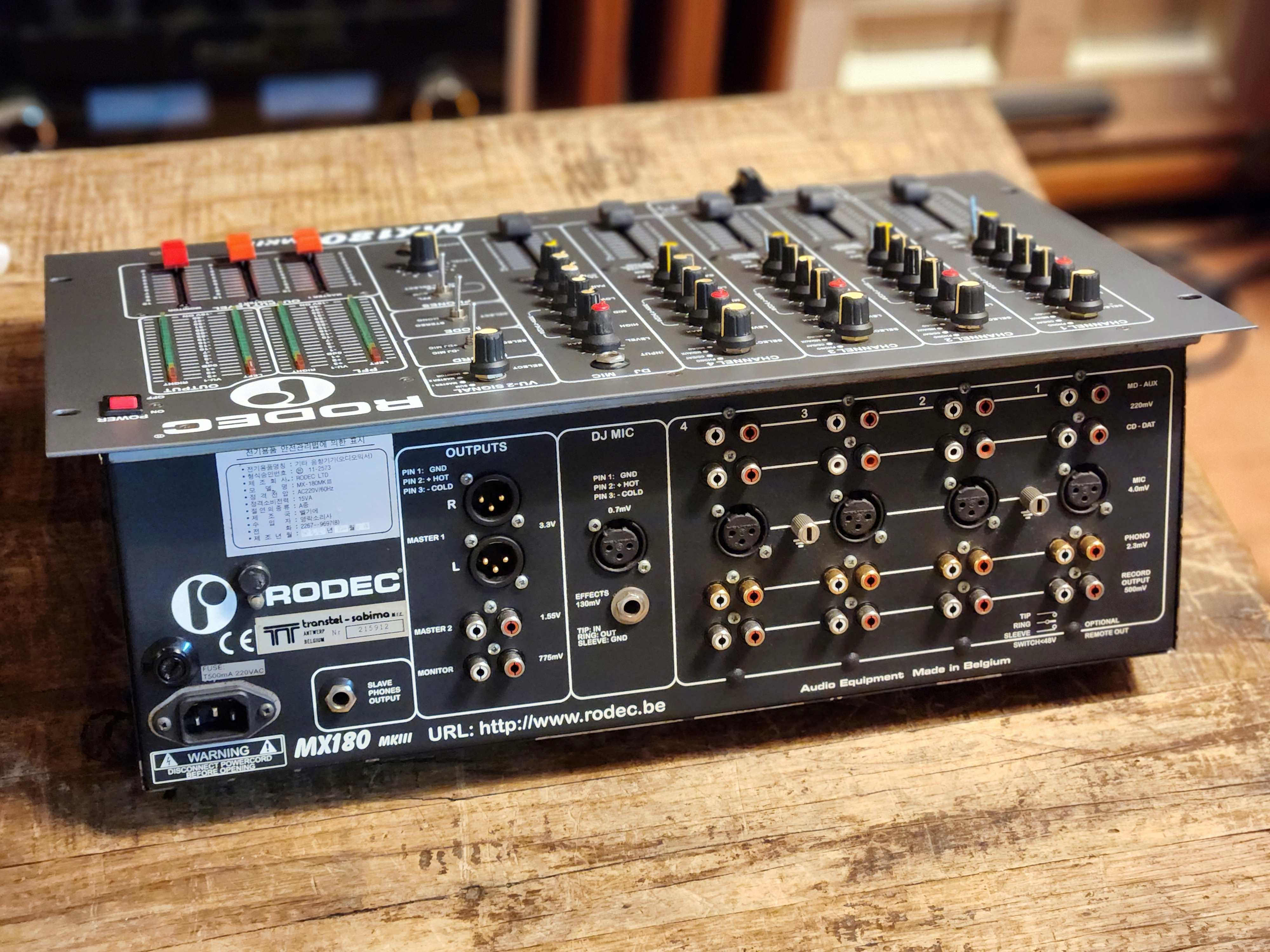 RODEC 로덱사의 MX180MK3 4체널 믹서입니다. 현존하는 LP바에서도 가장 많이 사용되는 제품으로서 구형 믹서중 가장 가성비