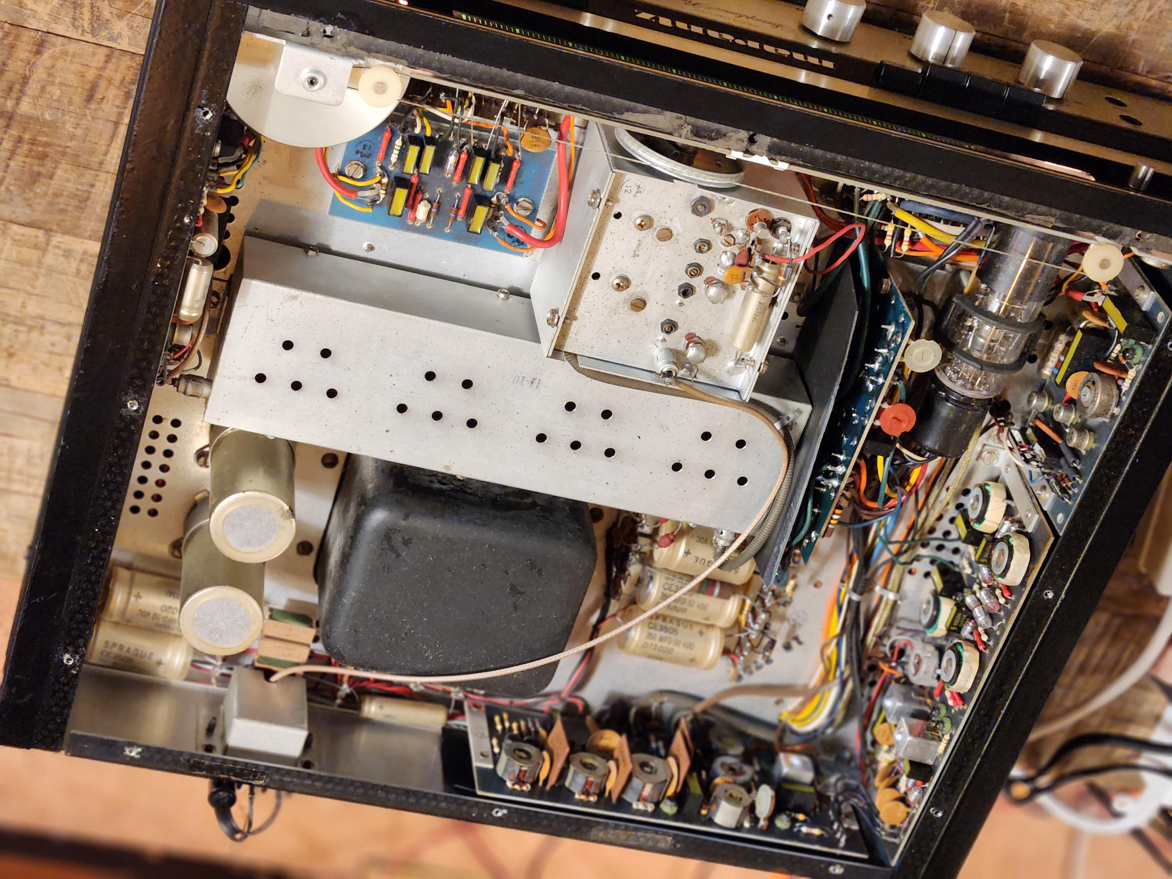음극선관을 제외하고 모델 18은 Marantz 모델 10B 튜너, 7T 솔리드 스테이트 전치 증폭기 및 15 솔리드 스테이트 전력 증폭기에 사용된 것과 동일한 고급 회로를 기반으로 하는 모든 트랜지스터 수신기입니다.