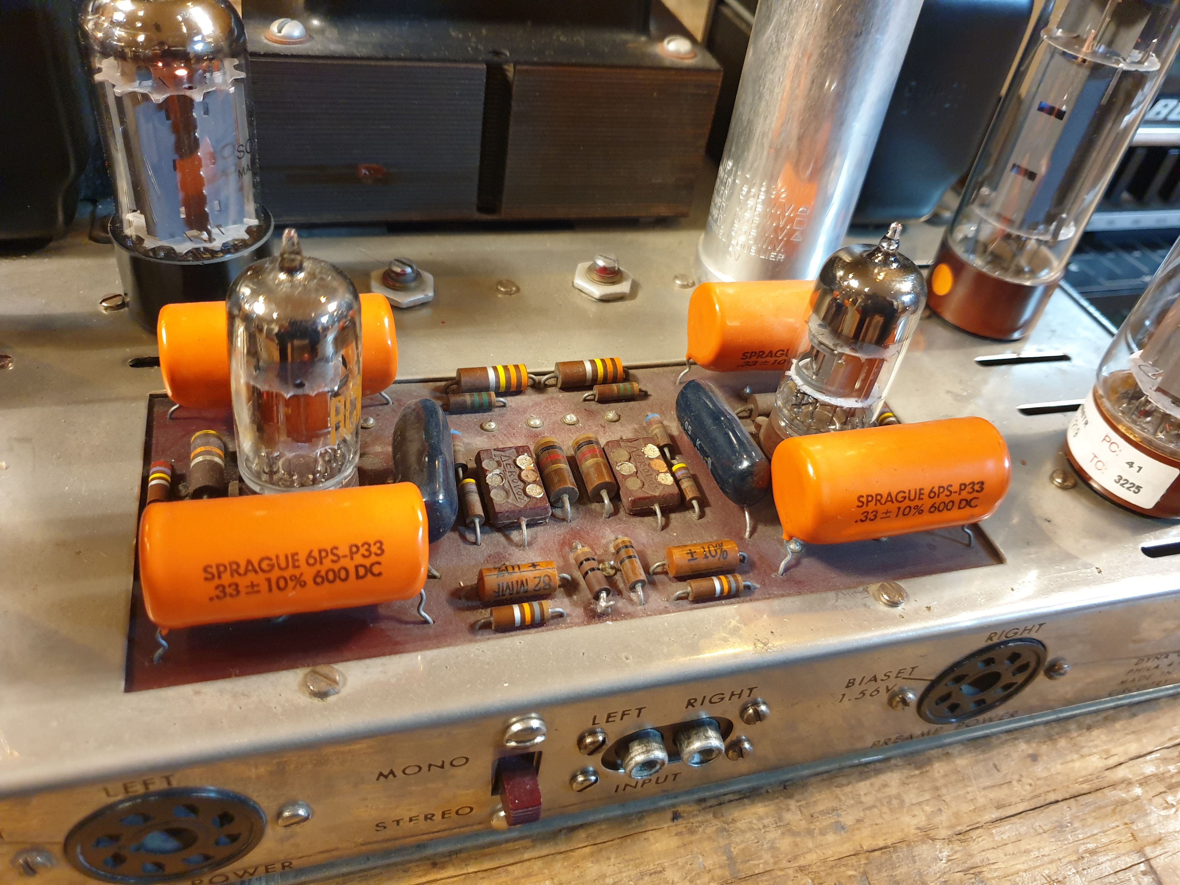 구성되어 있으며 정류관은 RCA GZ34 가 채용되어 있으며 초단관은 7199 미제 제품이 채용되어 있습니다. .개인적인