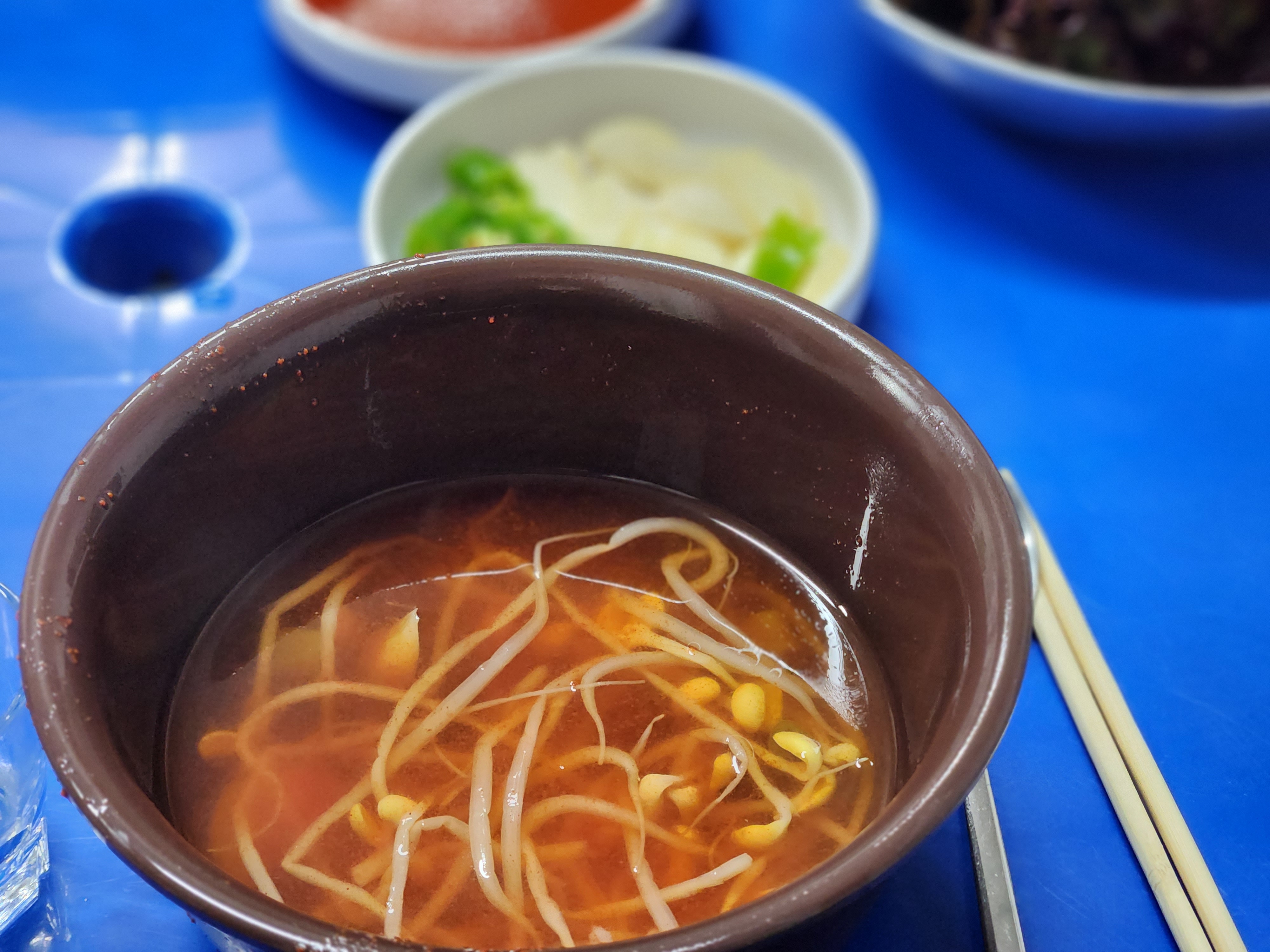 기본상 콩나물국 야채 끝 입니다.