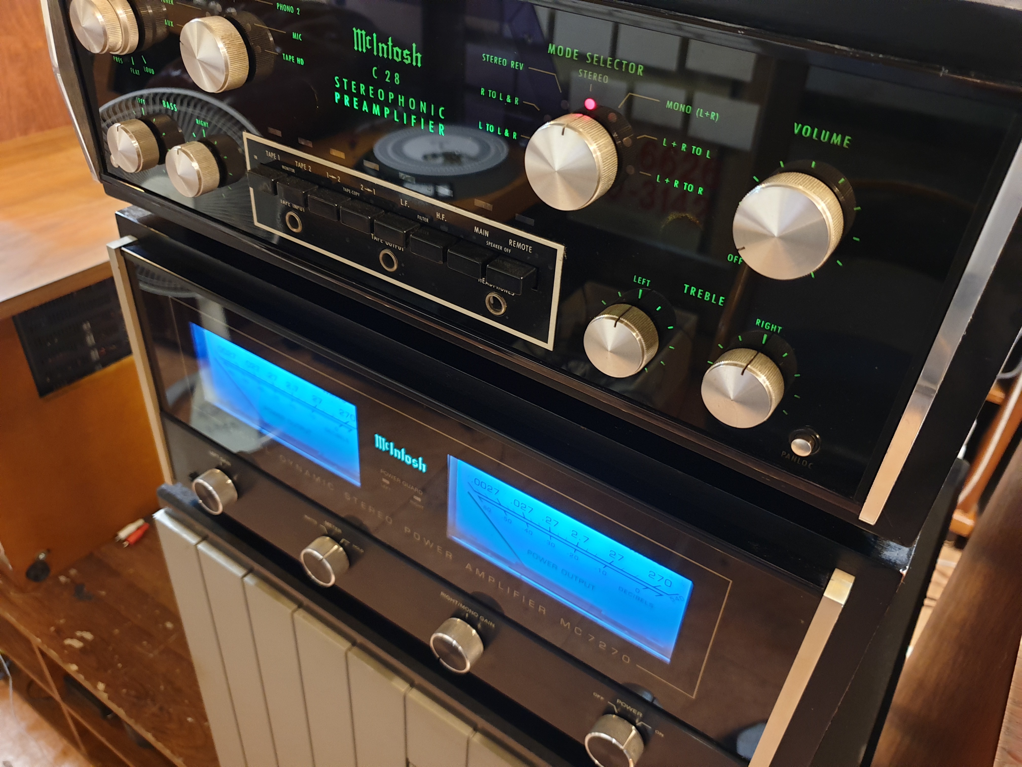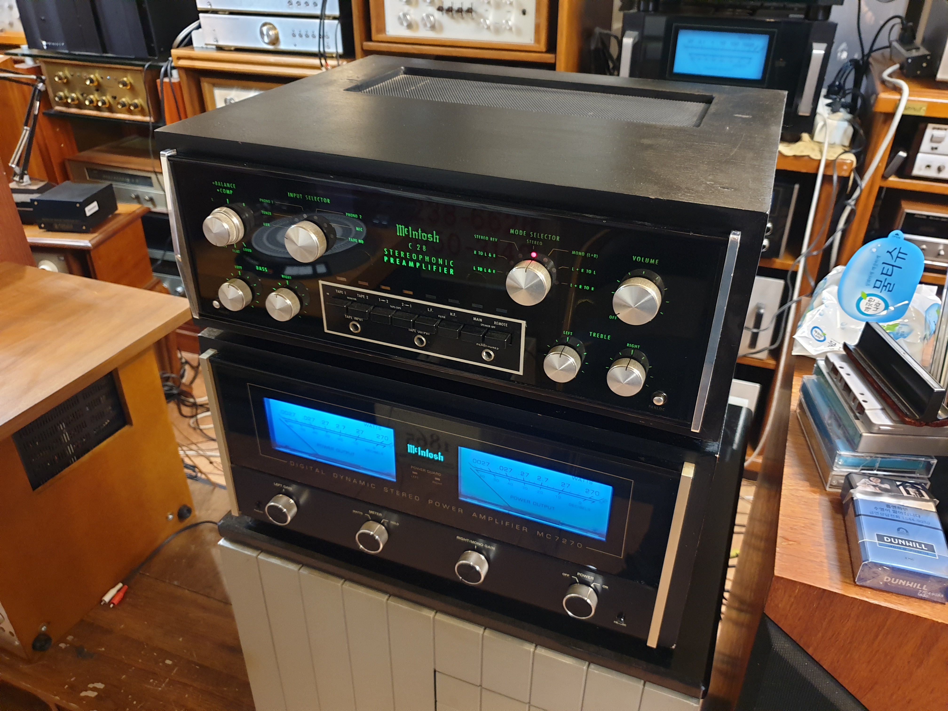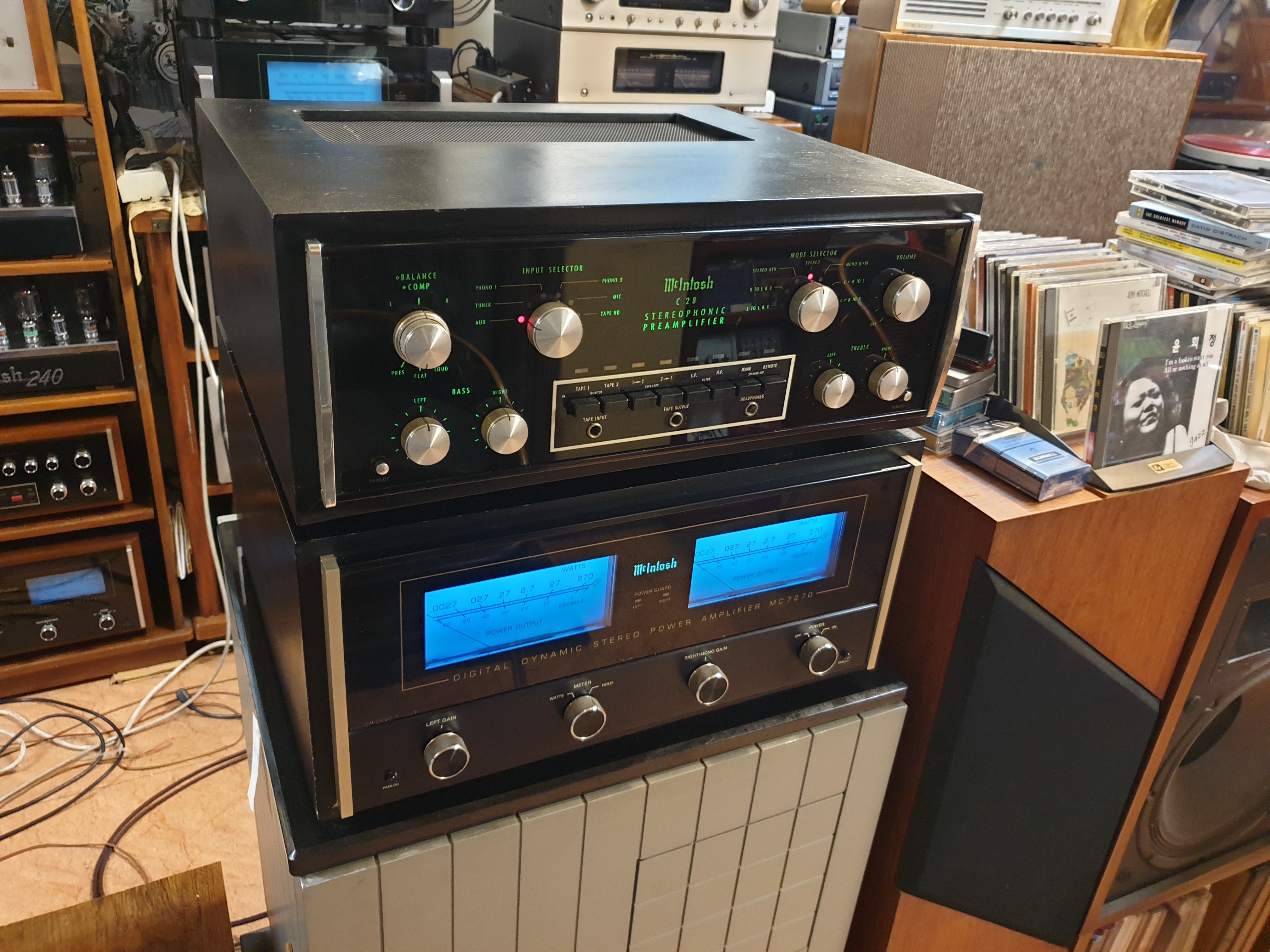 미국 Mcintosh 맥킨토시 사의 구형 명기 제품인 C28프리엠프와 베스트셀러 모델인 MC7270 파워엠프
