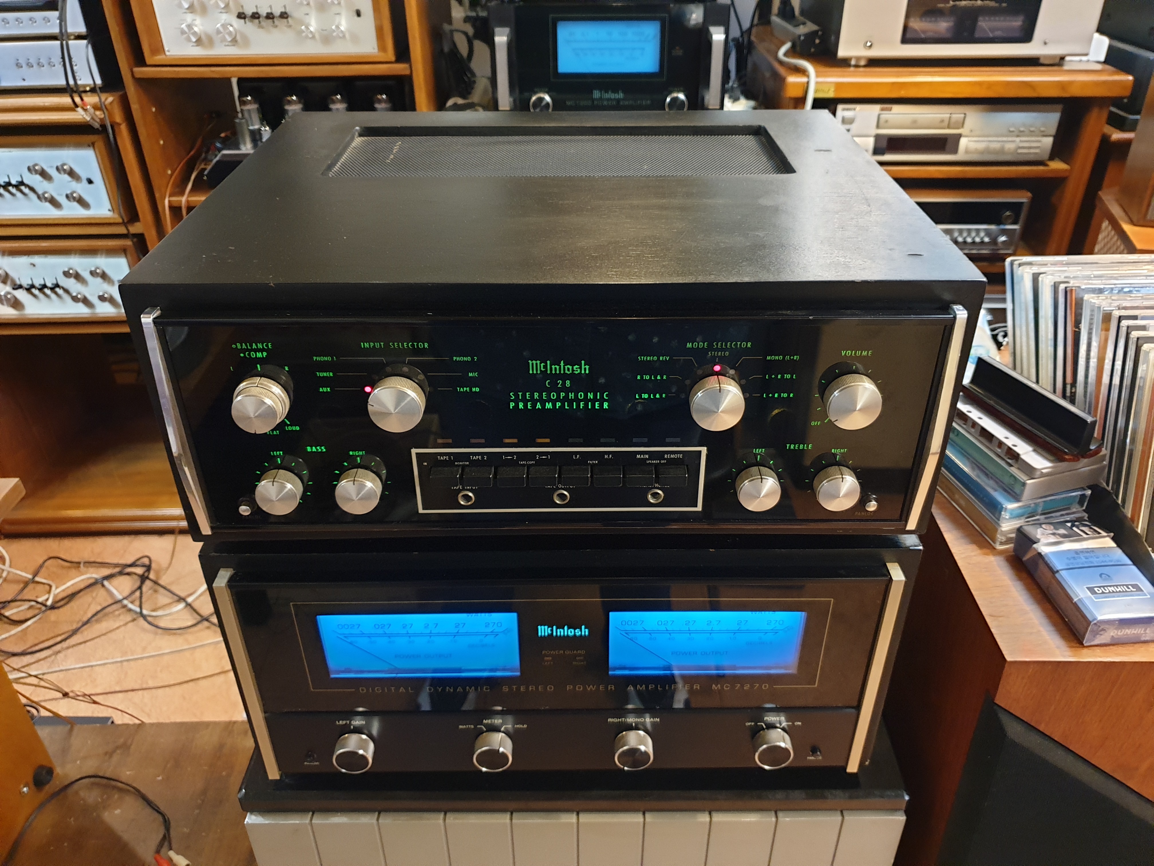 미국 Mcintosh 맥킨토시 사의 구형 명기 제품인 C28프리엠프와 베스트셀러 모델인 MC7270 파워엠프