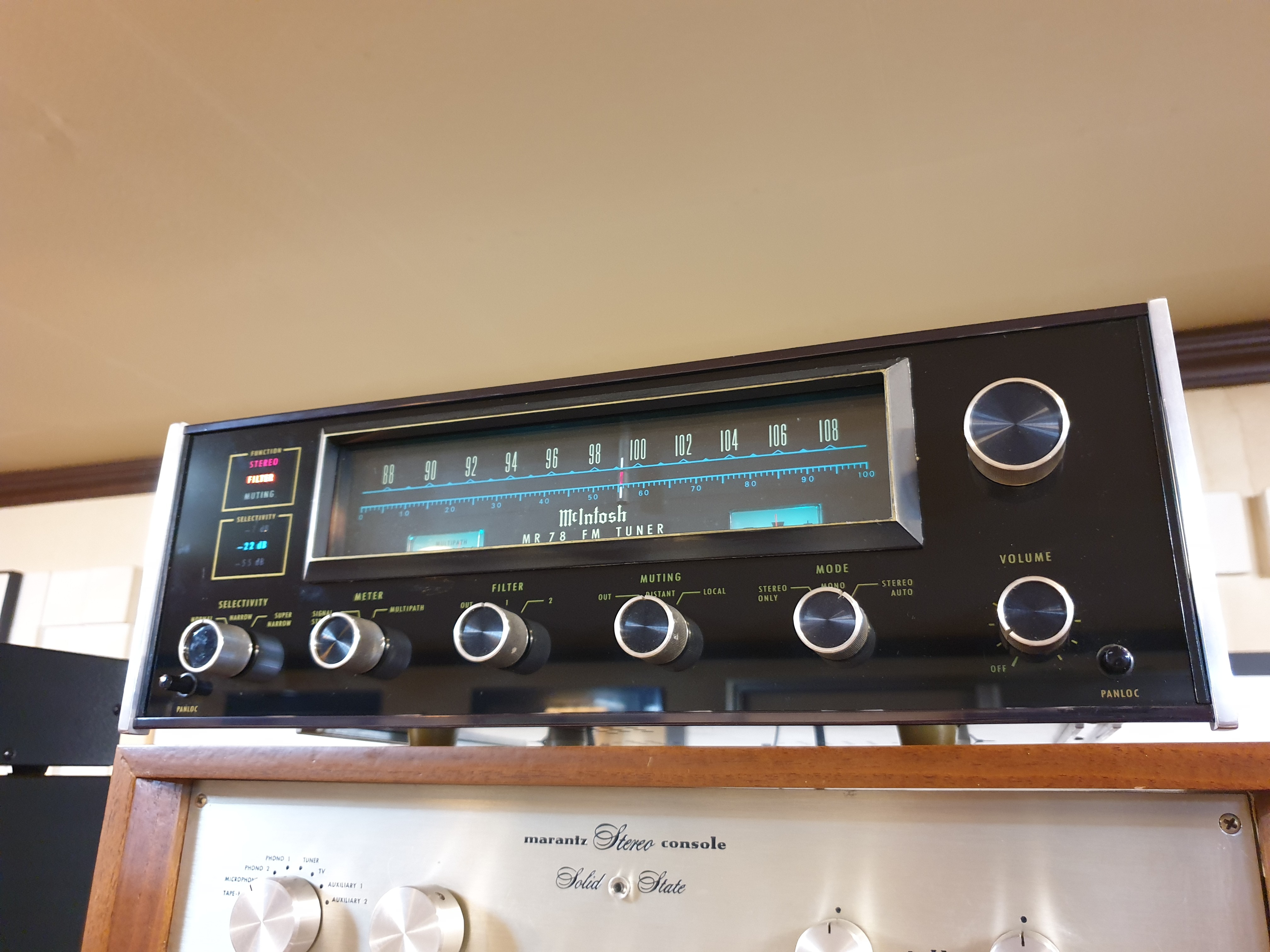 맥킨토시 사의 트렌지스터 튜너명기 MR-78 아날로그 튜너 입니다. 전체적으로 엄청나게 깨끗하진 않지만.