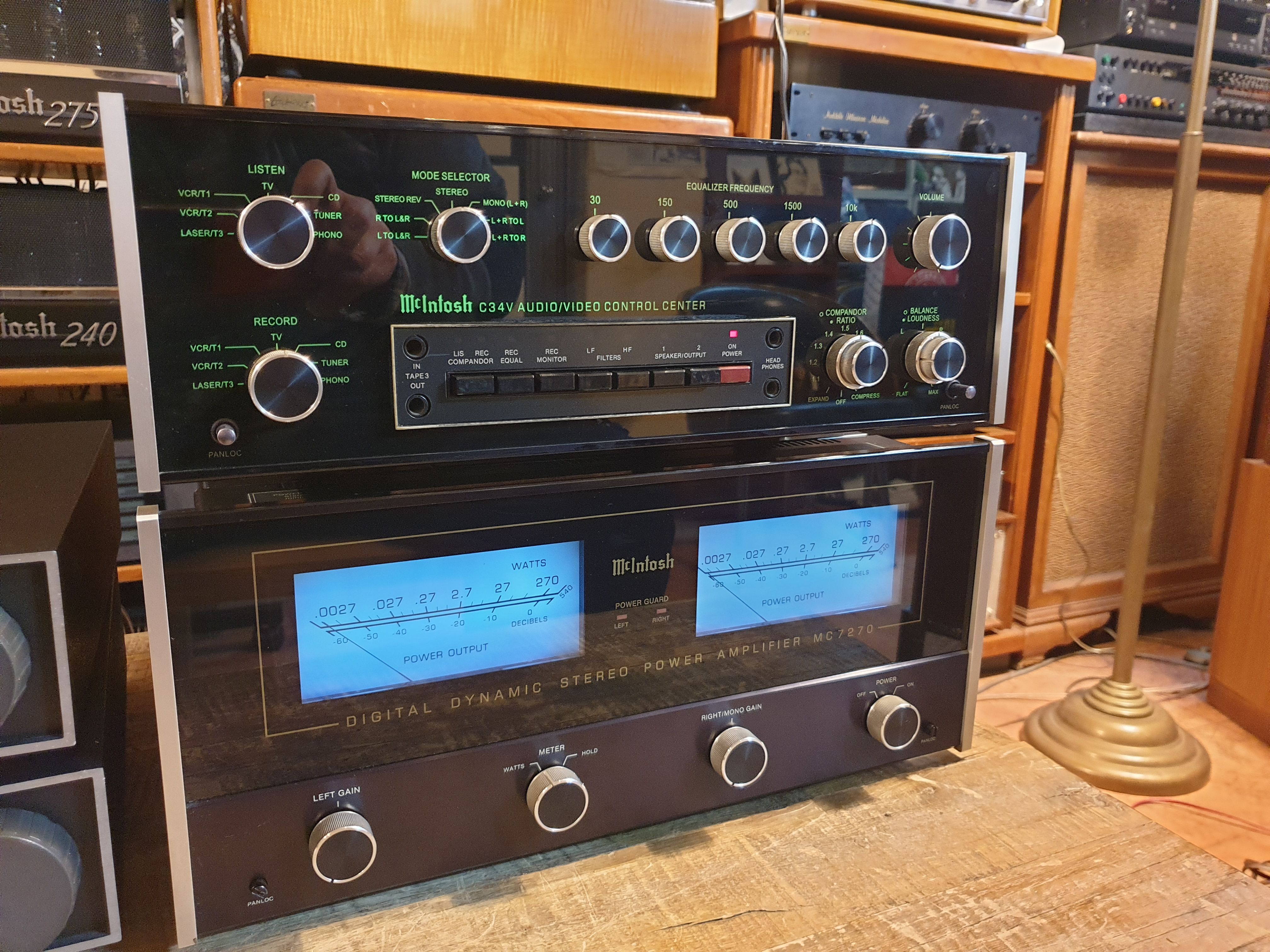 미국 Mcintosh 맥킨토시 사의 롱런형 베스트셀러 조합인 C34V 프리엠프와 MC7270 파워엠프 조합입니다.