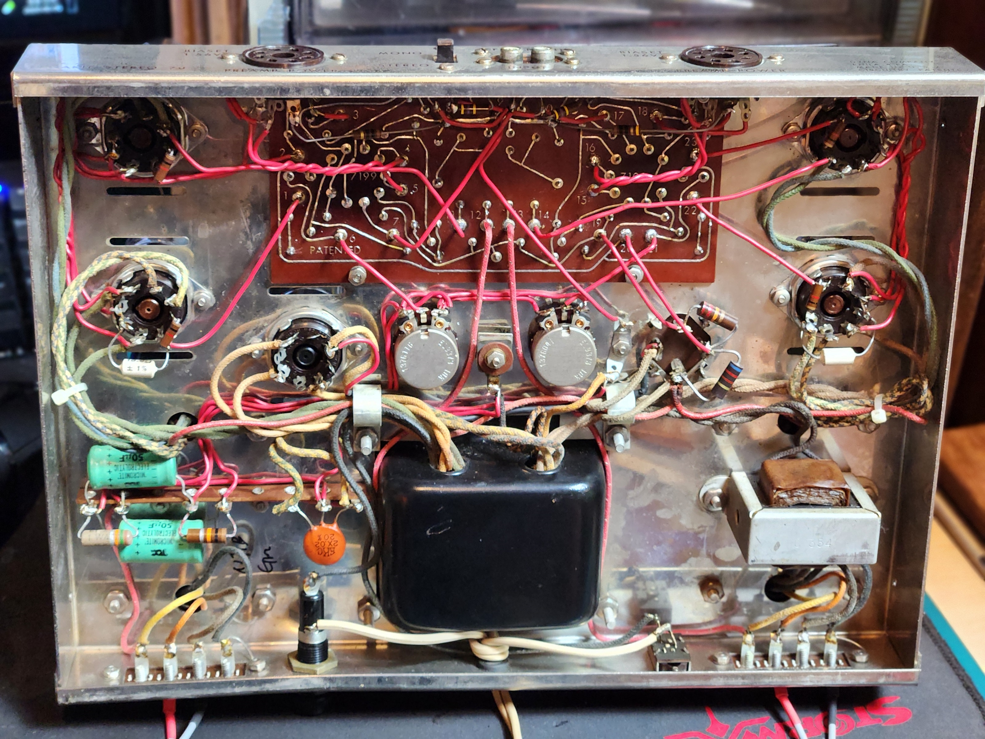 전원트렌스가 탑재되어 있으며 중후기 제품으로서 현제품은 사진과 같이 피라미드 초기형 콘덴서 제품으로 이루어져