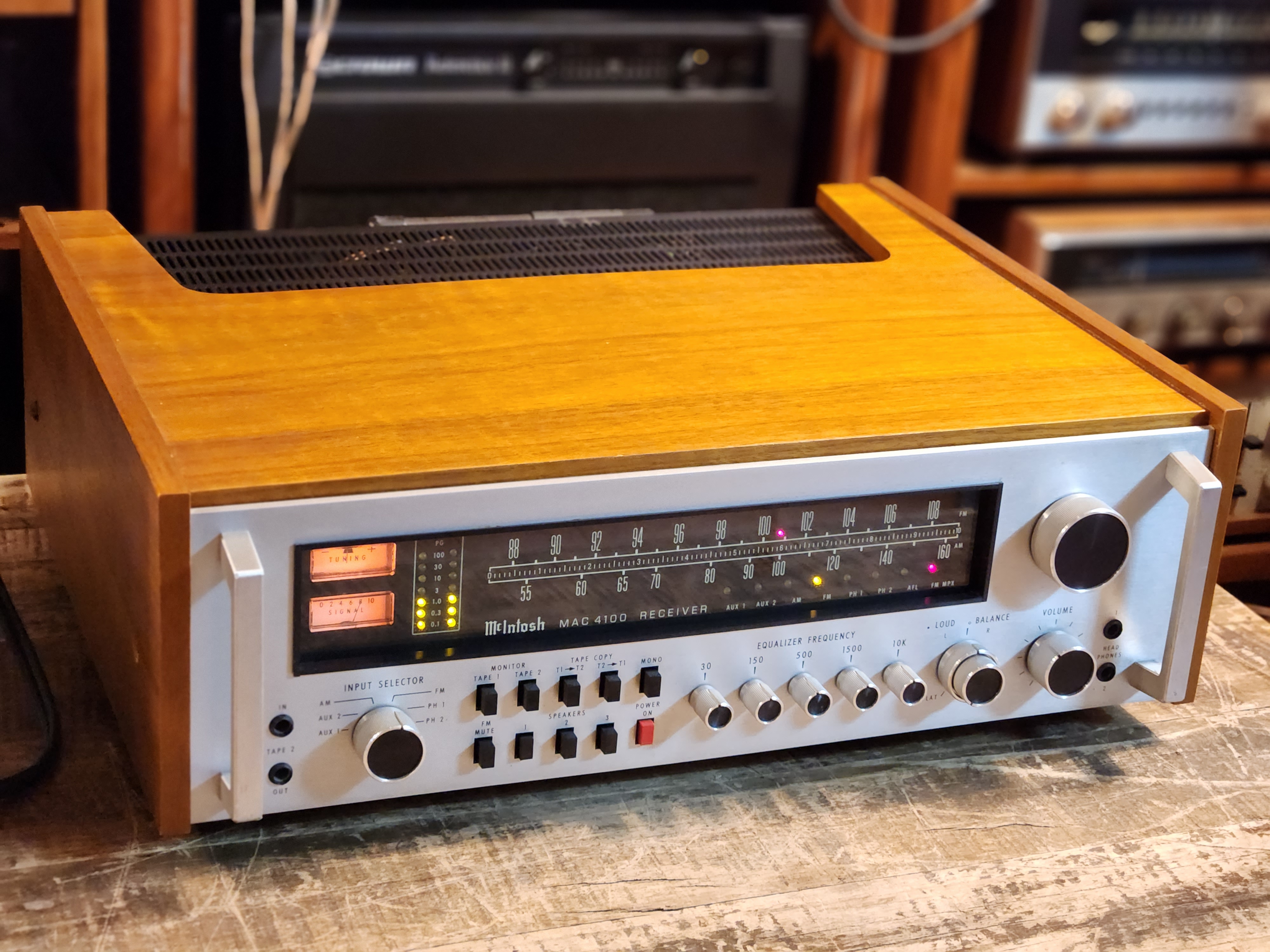 미국 맥킨토시 사의 베스트셀러 MAC-4100 롱런형 리시버 입니다. 80년대 발매작중 유독 인기가 좋은 디자인과