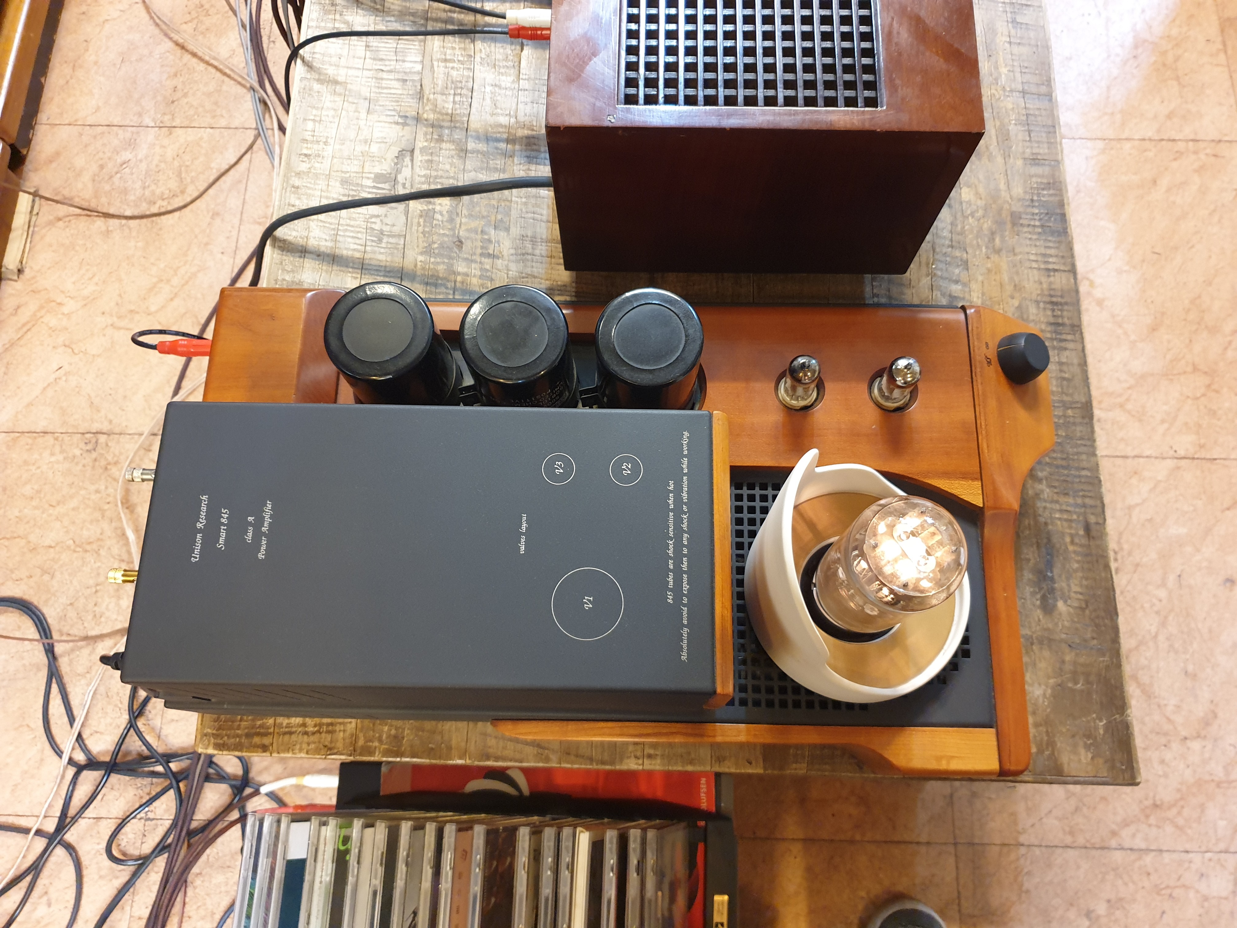 이제품의 단점이라면 845 출력관이 송신관 출신이기에 굉장히 고압으로 알려져 있어 필라멘트가 간혹 나갈수있다는점