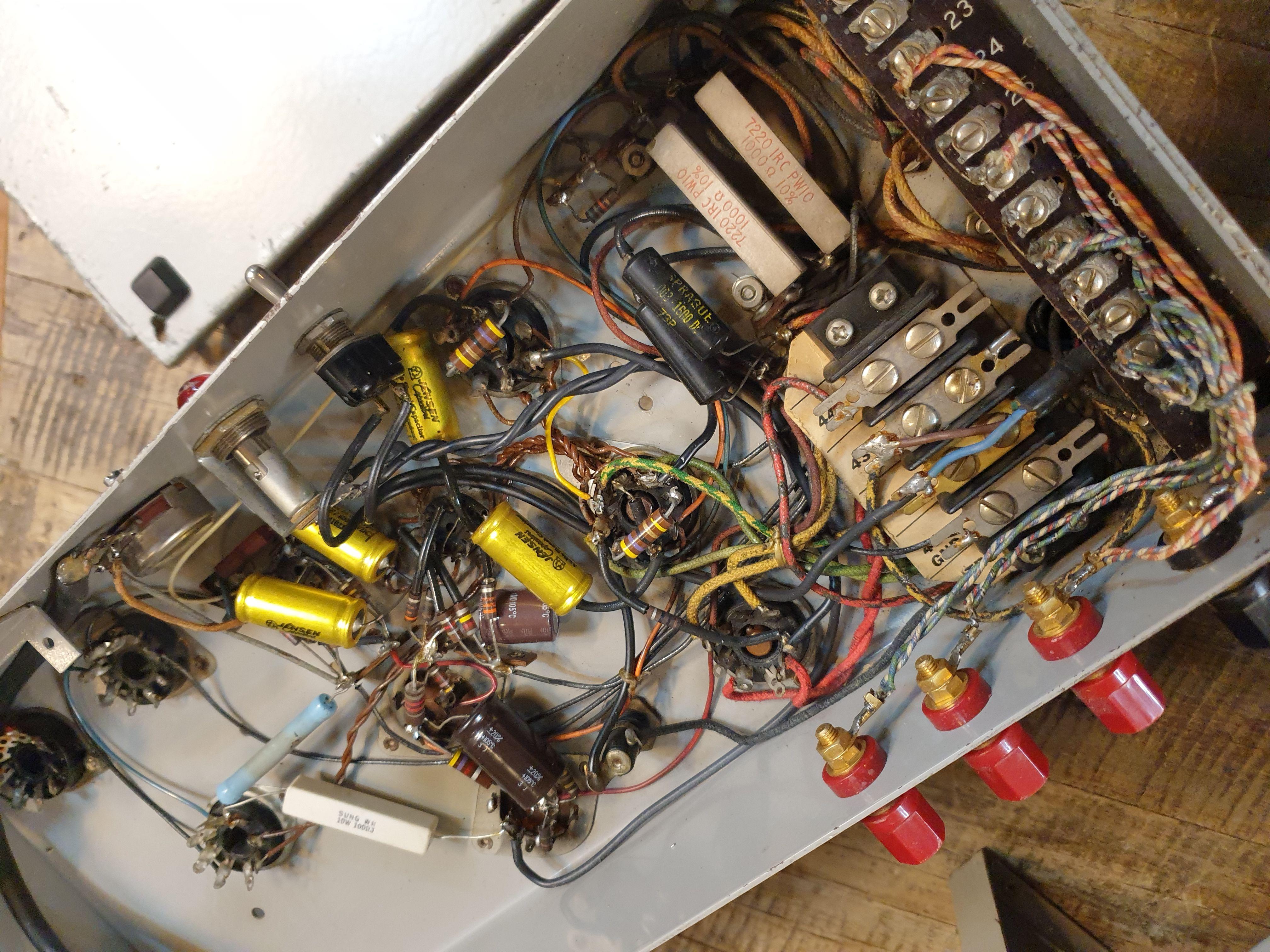 들어왔으며 더스트커버가 없고 좌우측 출력관 이 상이차이가 납니다. 원하시면 작은 6L6관으로 맞춰어