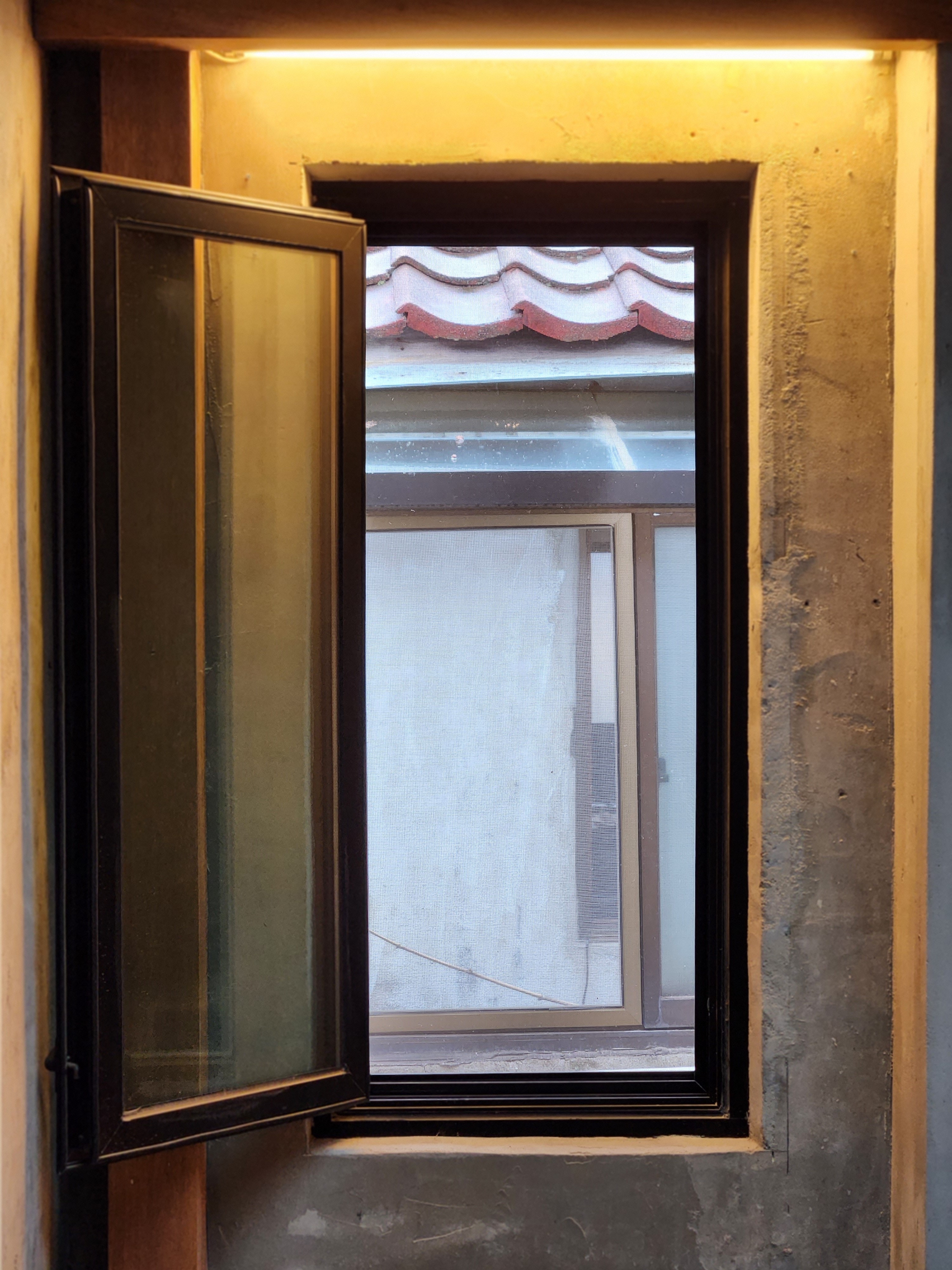 창문 속 건넛집의 모습 이지만 뭔가 그속에 기와가 보이는 그림 작품같네요.