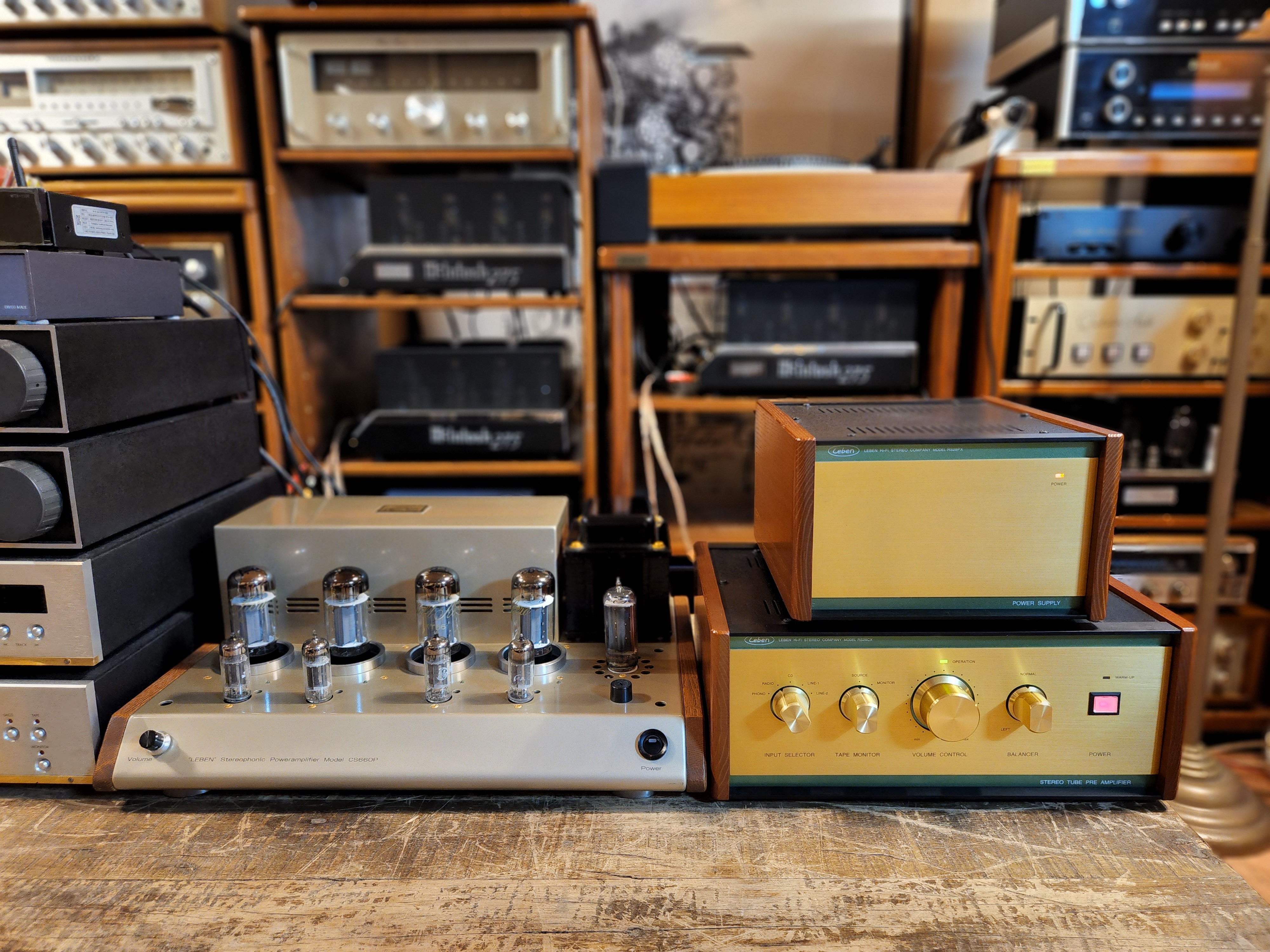 일본 레벤사의 아주귀한 구성인 Leben RS-28CX 진공관 프리엠프와 CS-660P 진공관 파워엠프 조합입니다.