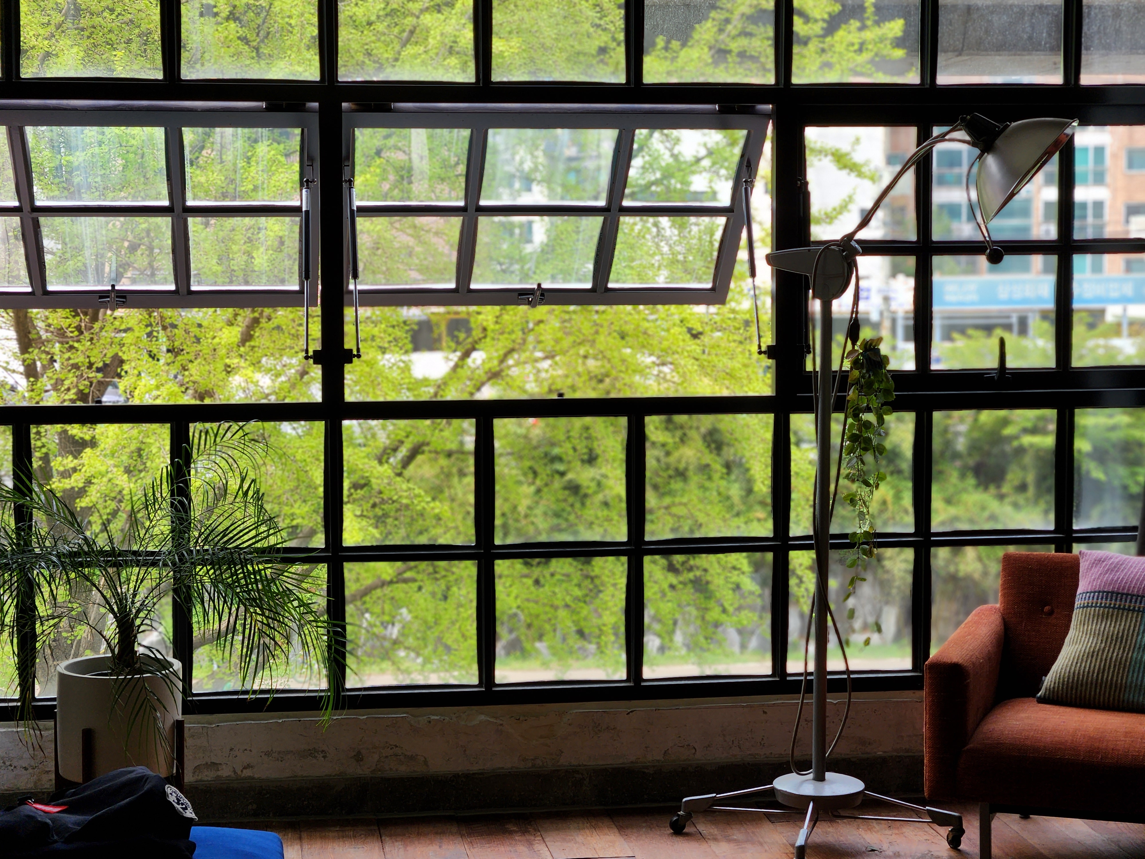 사장님 말씀에 낙엽이 지는 가을이 더 이쁘다는 창가입니다.