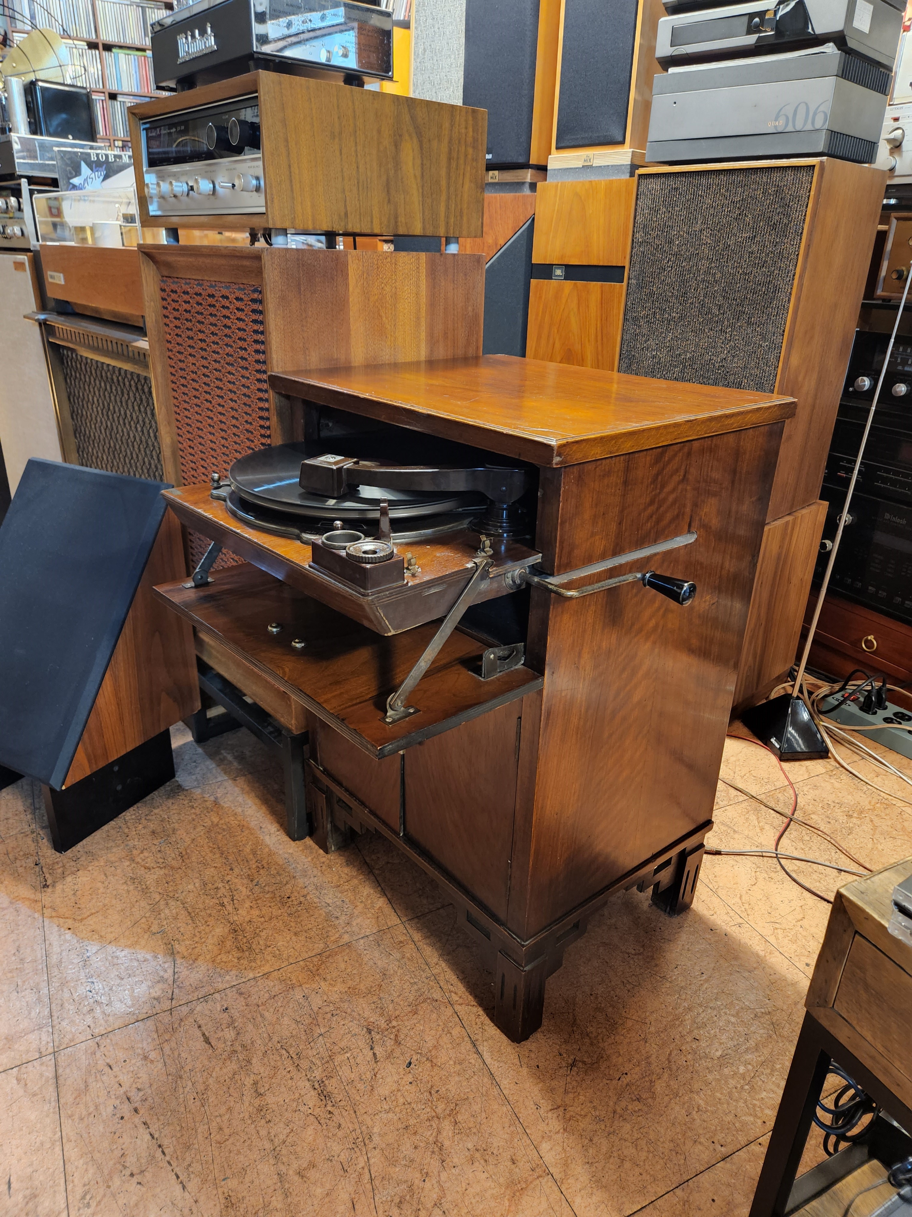 돌판등 축음기판을 수납할수있는 요건을 가지고있는 제품입니다. 인테리어 오브제나 소품으로 아주 좋습니다