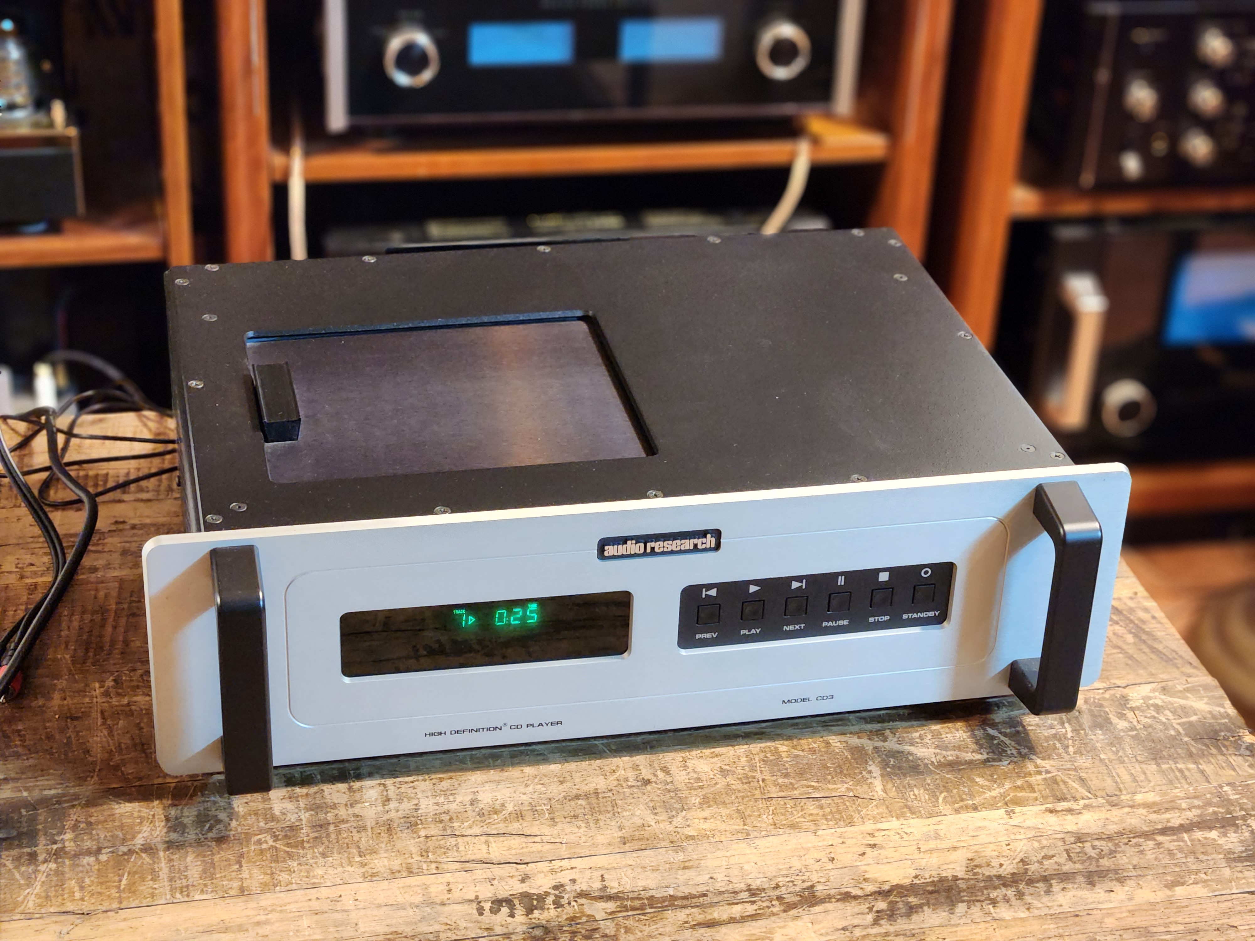 영국 Audio Research 오디오 리서치 사의 CD3 탑로딩형 시디플레이어 입니다. 스테빌라이져를 사용하여 위에서