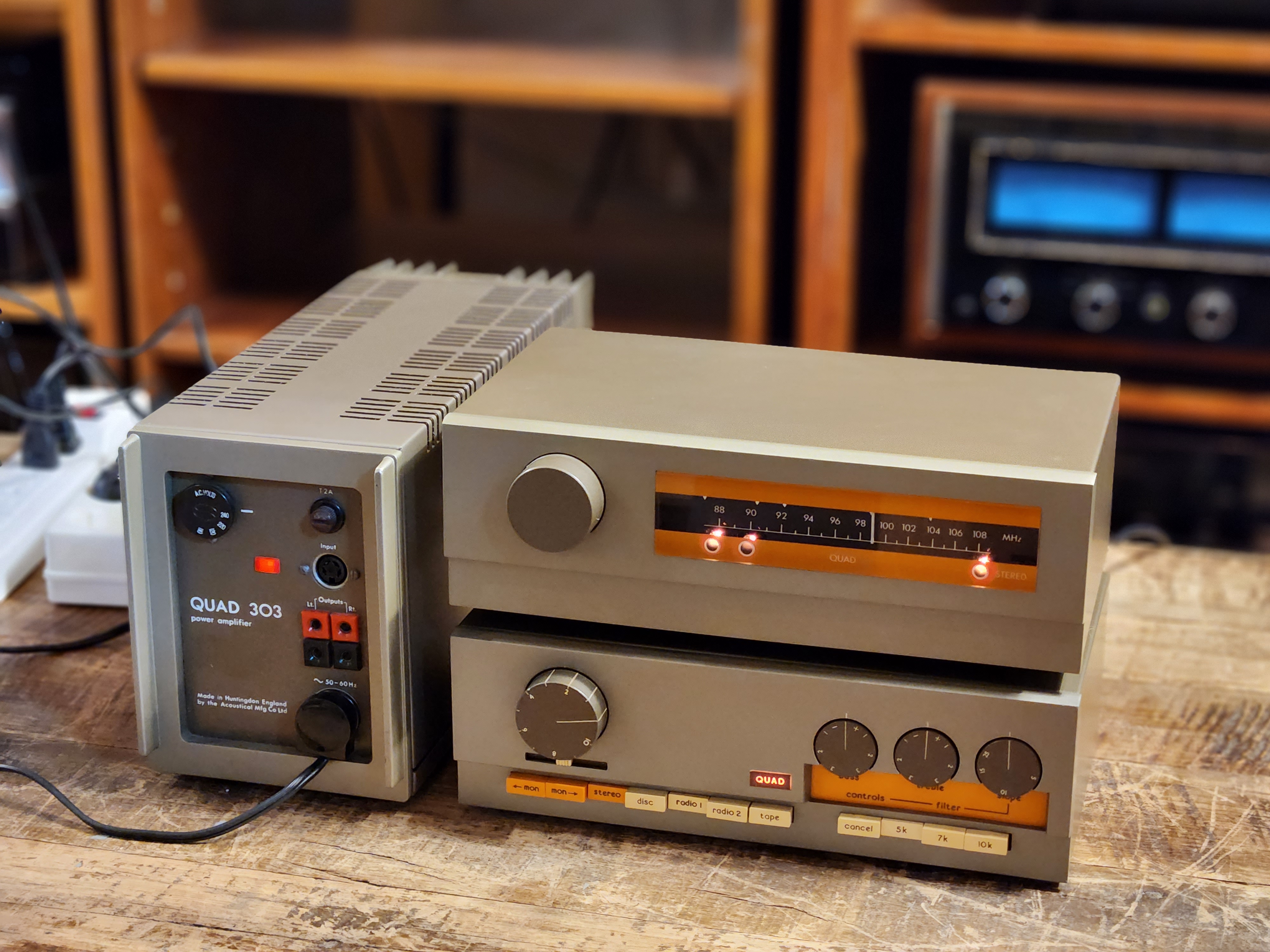 영국 쿼드 (QUAD) 사의 가정용 트렌지스터 엠프로서 QUAD 레이블에서 초기에 발매된 분리형 구성인 FM3 튜너와