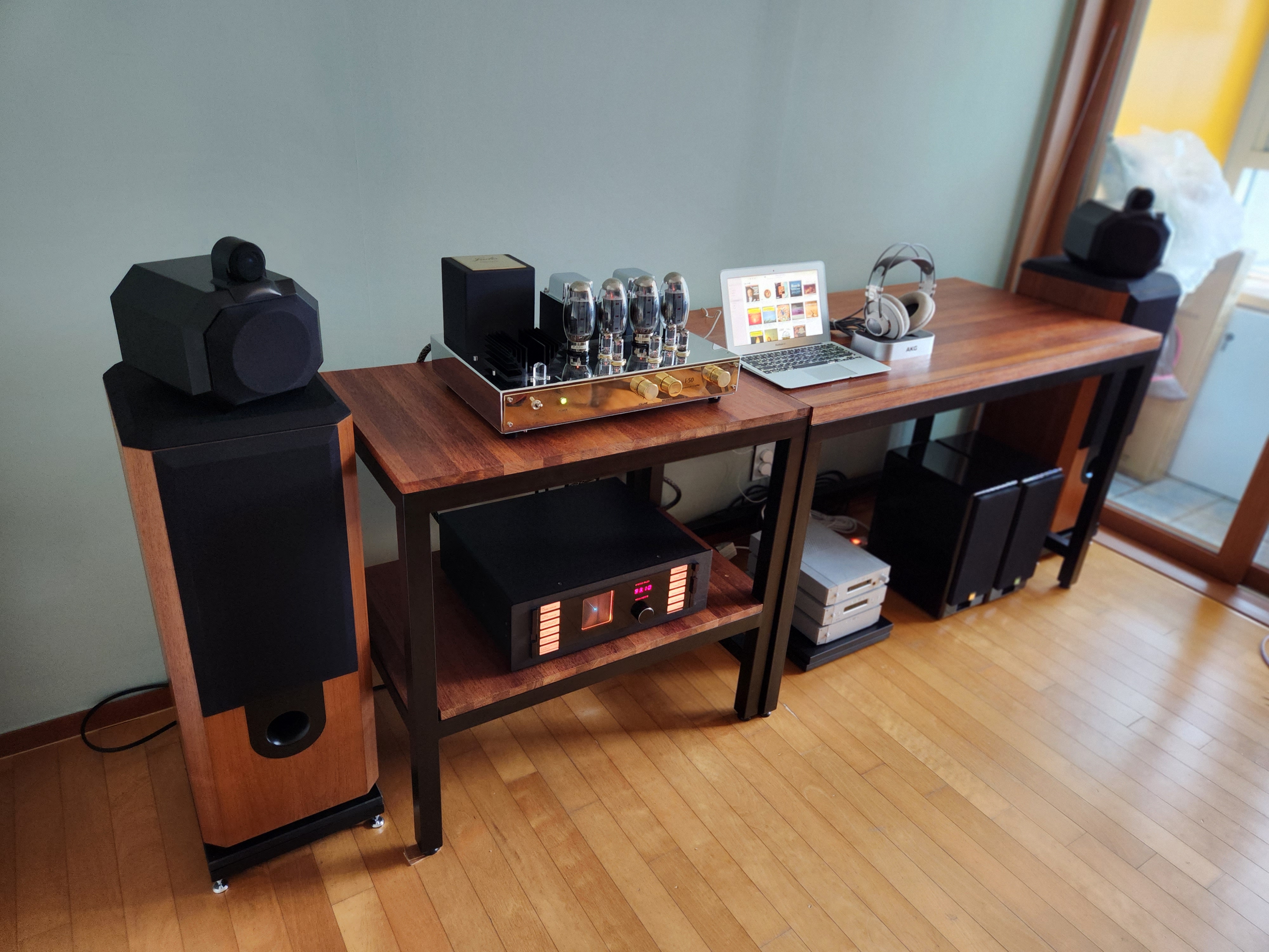 인티엠프를 메인으로 그리고 진공관 대출력에 무난 하게 대응할수있는 편안하지만 해상도는 충분한 영국