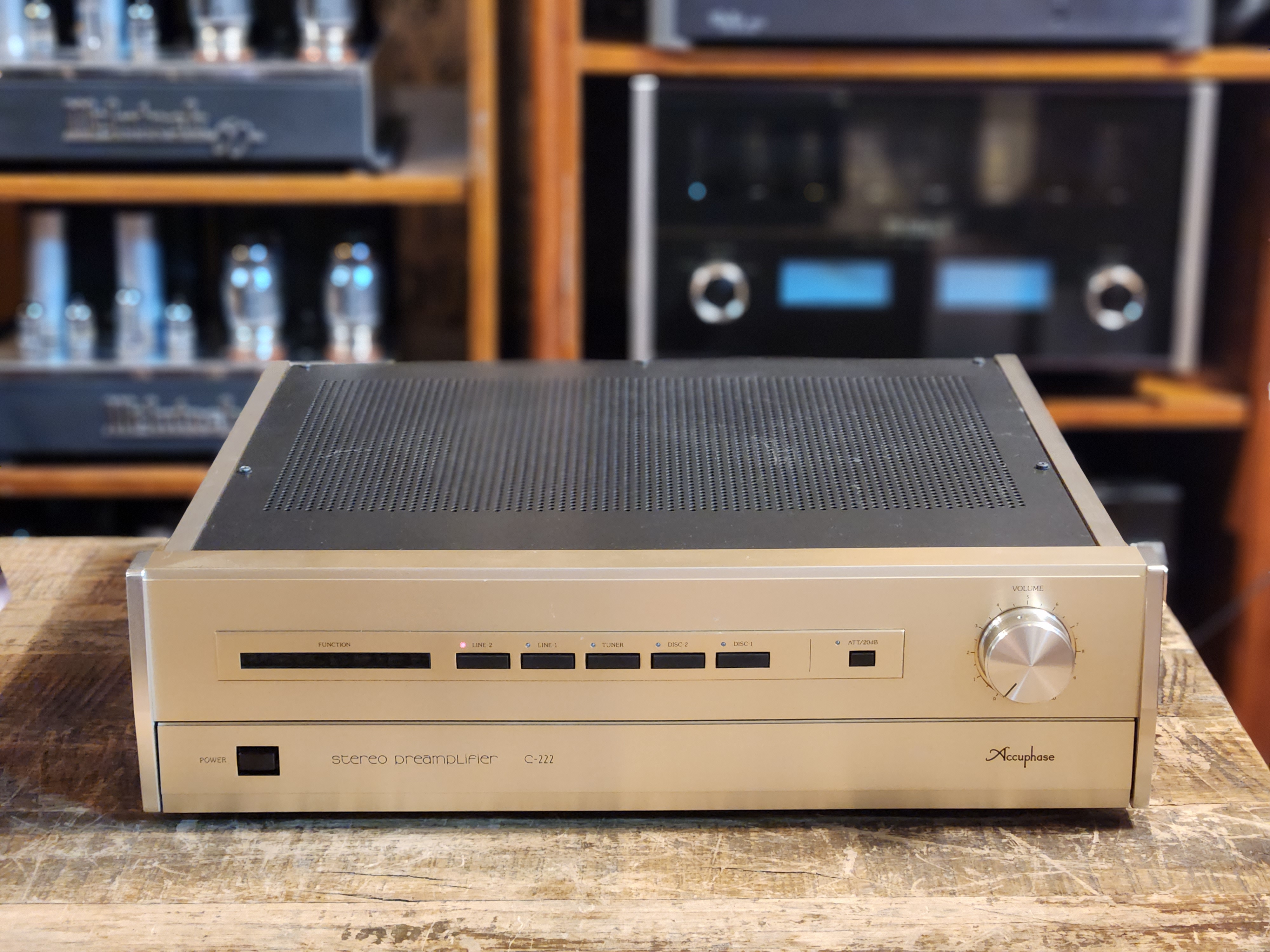 일본 Accuphase 아큐페이즈 사의 C222 프리엠프 입니다. 바다건너 들여온 제품으로서 앞면의 실기스 두어점