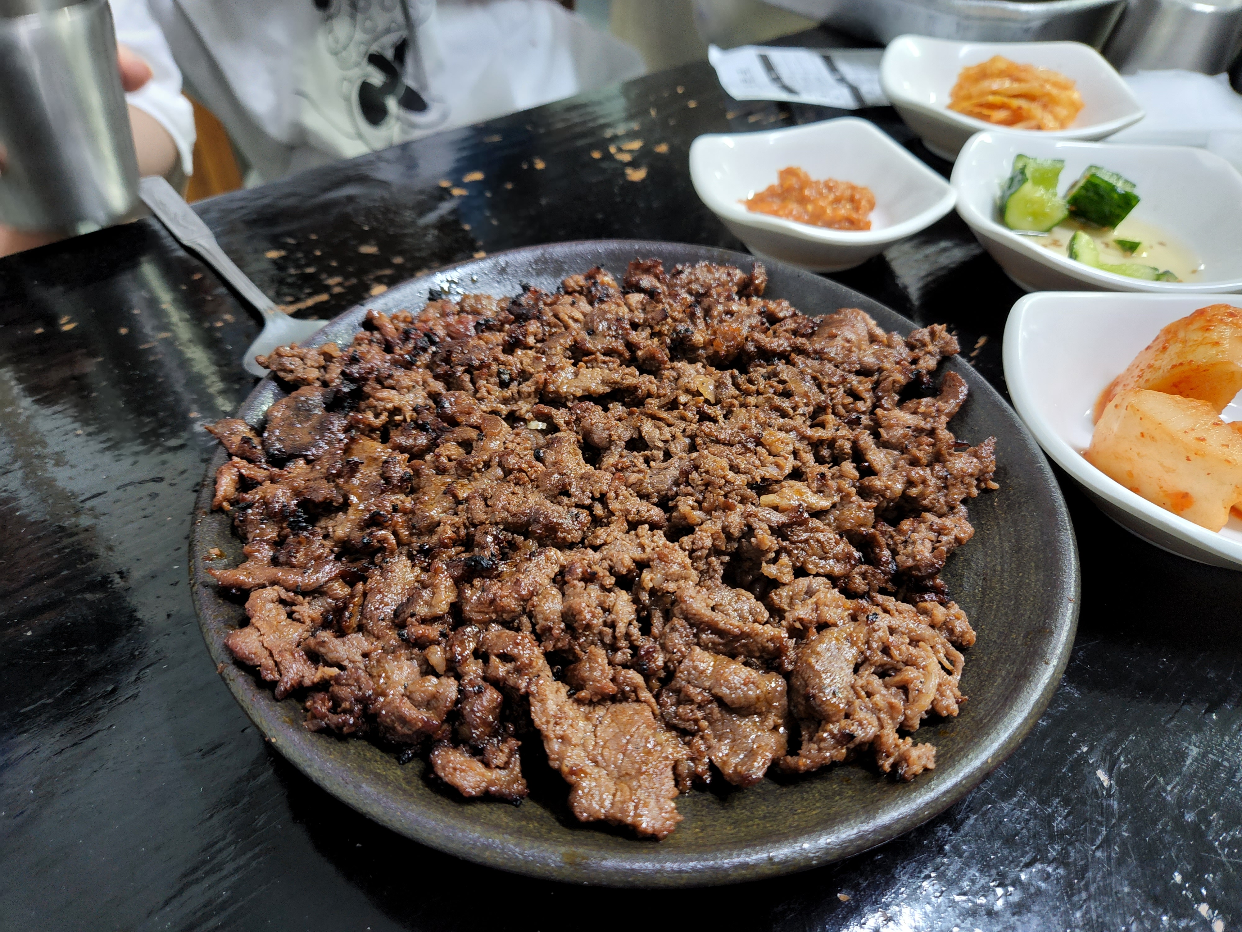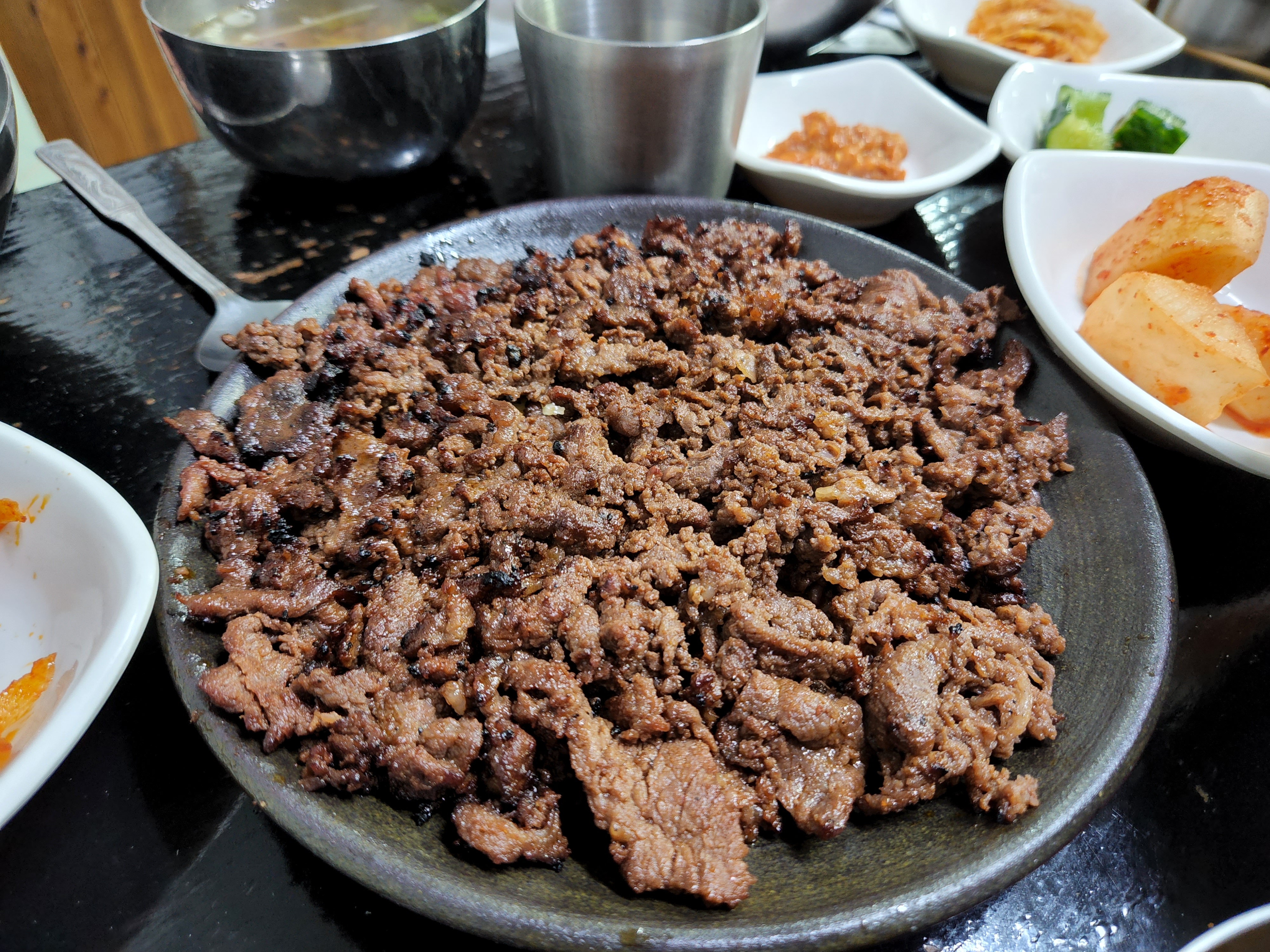 주문한 음식들이 나왔습니다. 연탄불 불고기입니다.