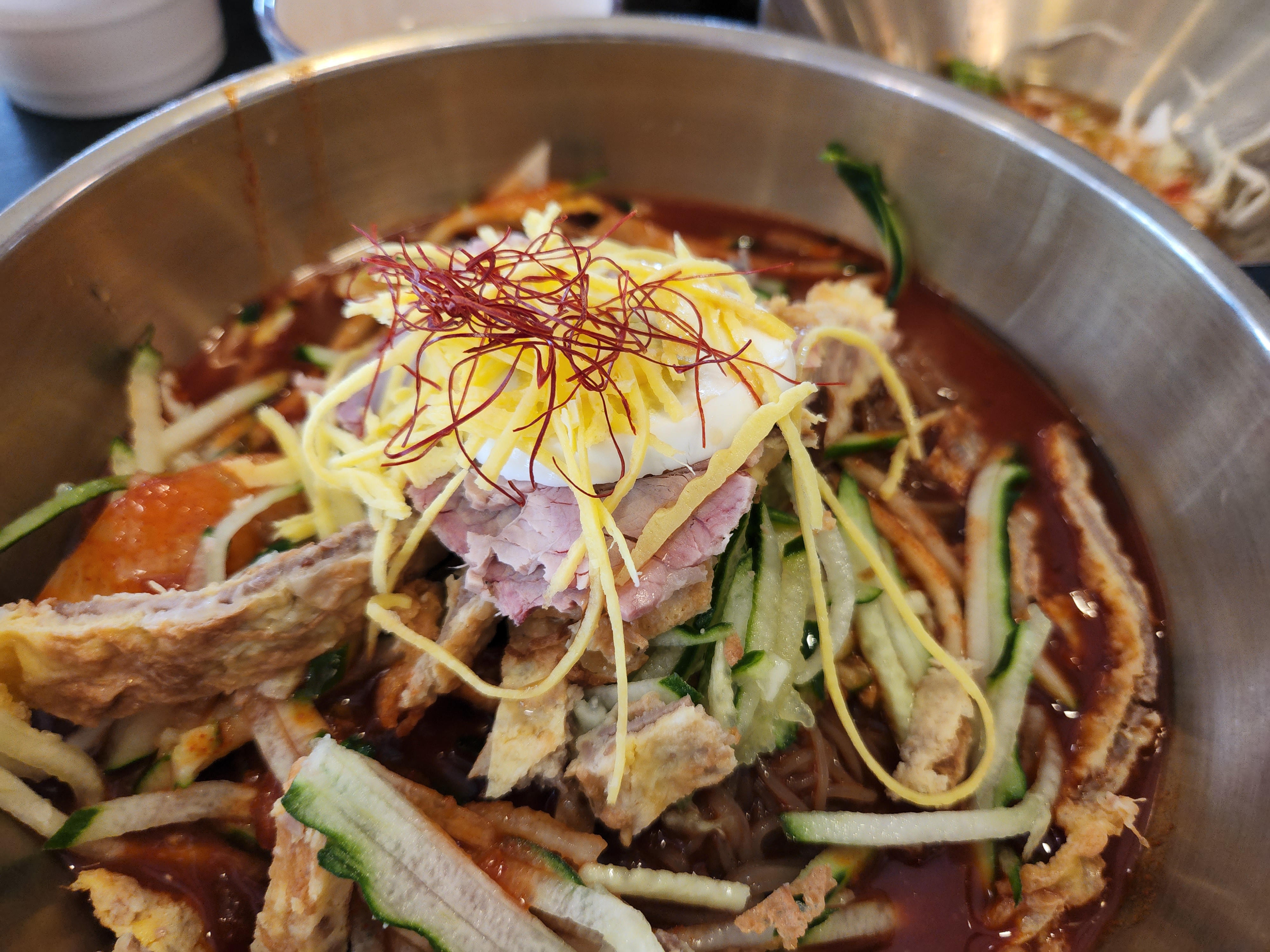 맛은 걍 소소했어요 깊은것도 아니고 물냉면의 육수맛은 조미료맛이 강하게 올라왔구요 평양냉면 좋아하시거나