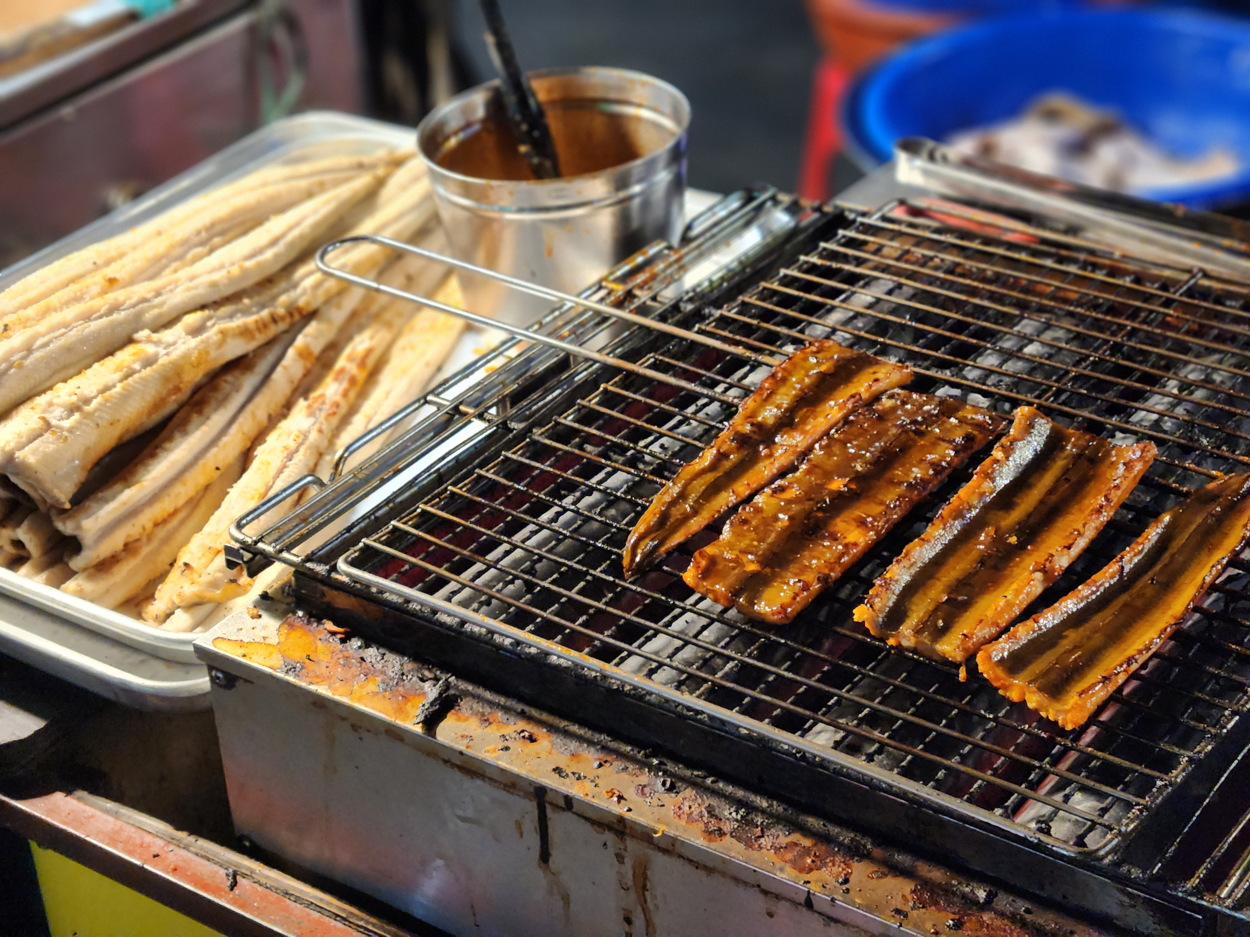 그리고 근처에는 야장에서 포장마차 처럼 이렇게 장어와 불고기 등을 파는곳이 있어요