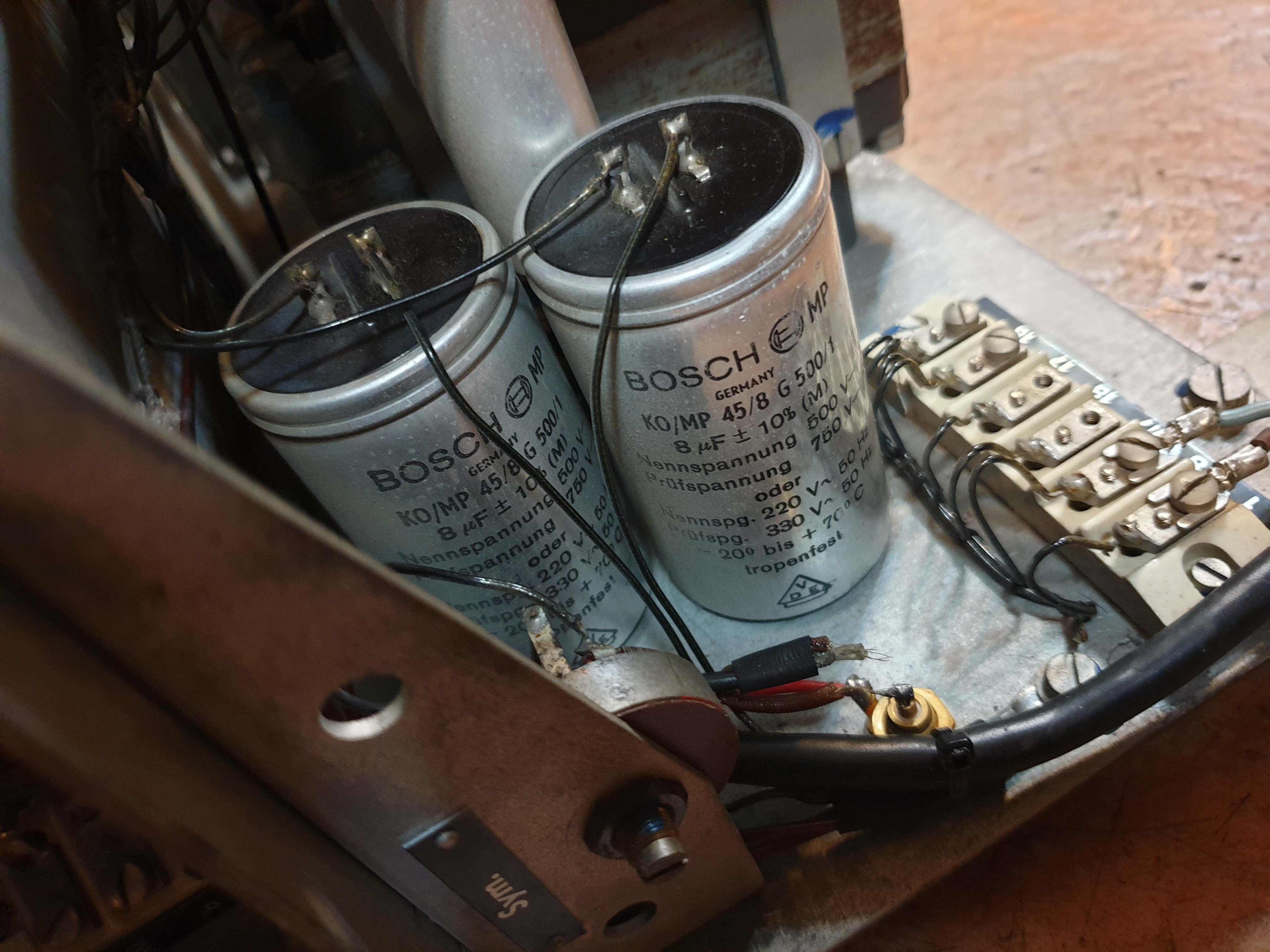 출력부와 정류부가 나누어져 있어 정류관이나 출력관에 문제가 생길시 위 아래에 2개씩 위치하고 있는 휴즈에 불이