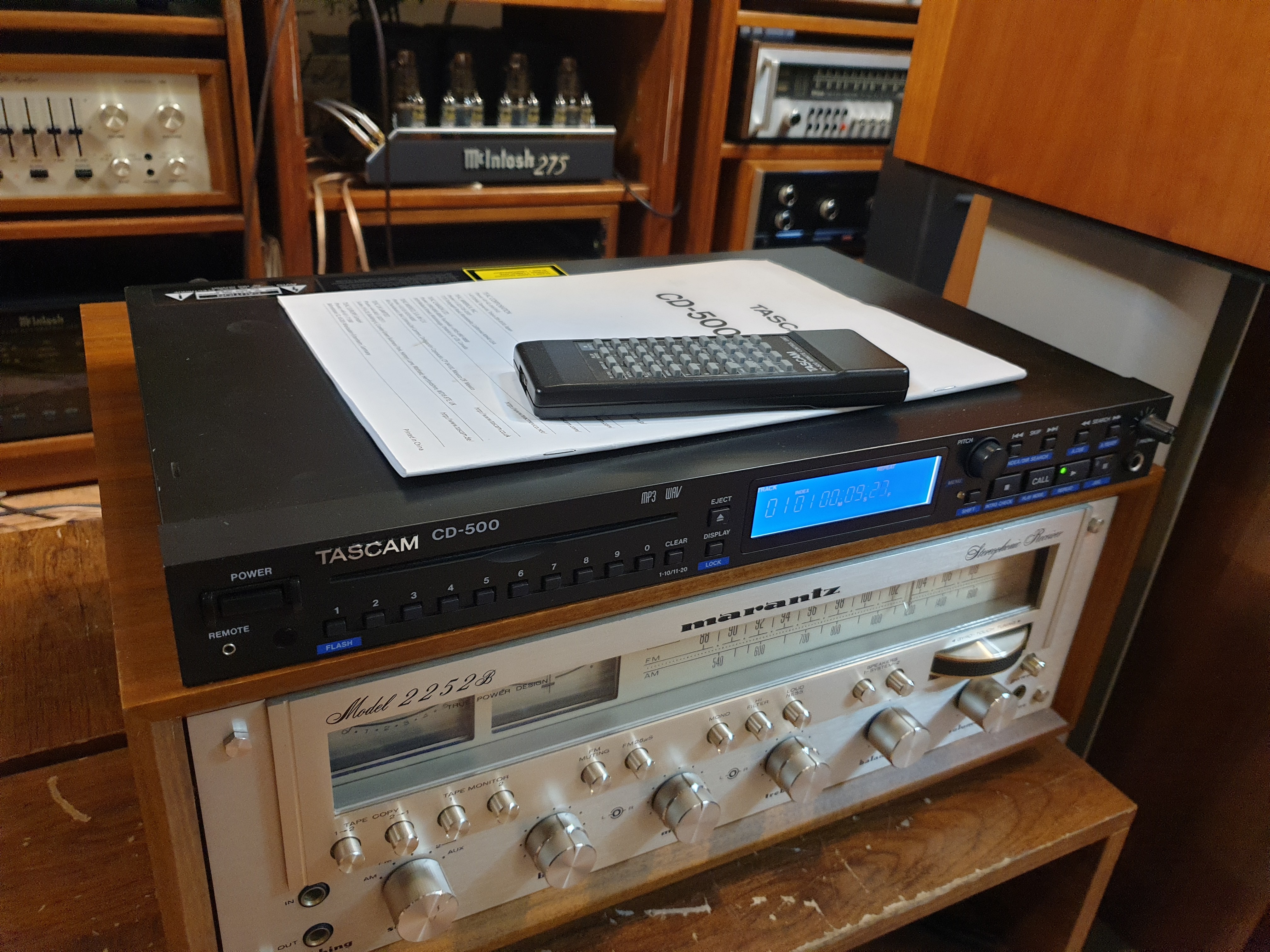 타스캄사의 프로페셔널용으로 출시된 CD-500 시디플레이어 입니다. 업장이나 LP바같은곳에서 사용하기 적합하게