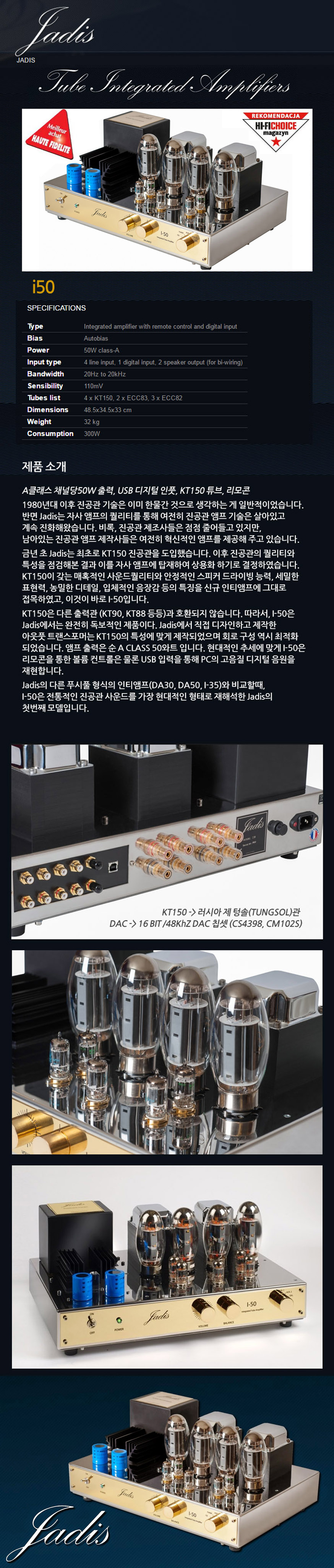 프랑스 오디오 명가인 Jadis 자디스 사의 상위기종인 i-50 진공관 인티엠프 입니다.