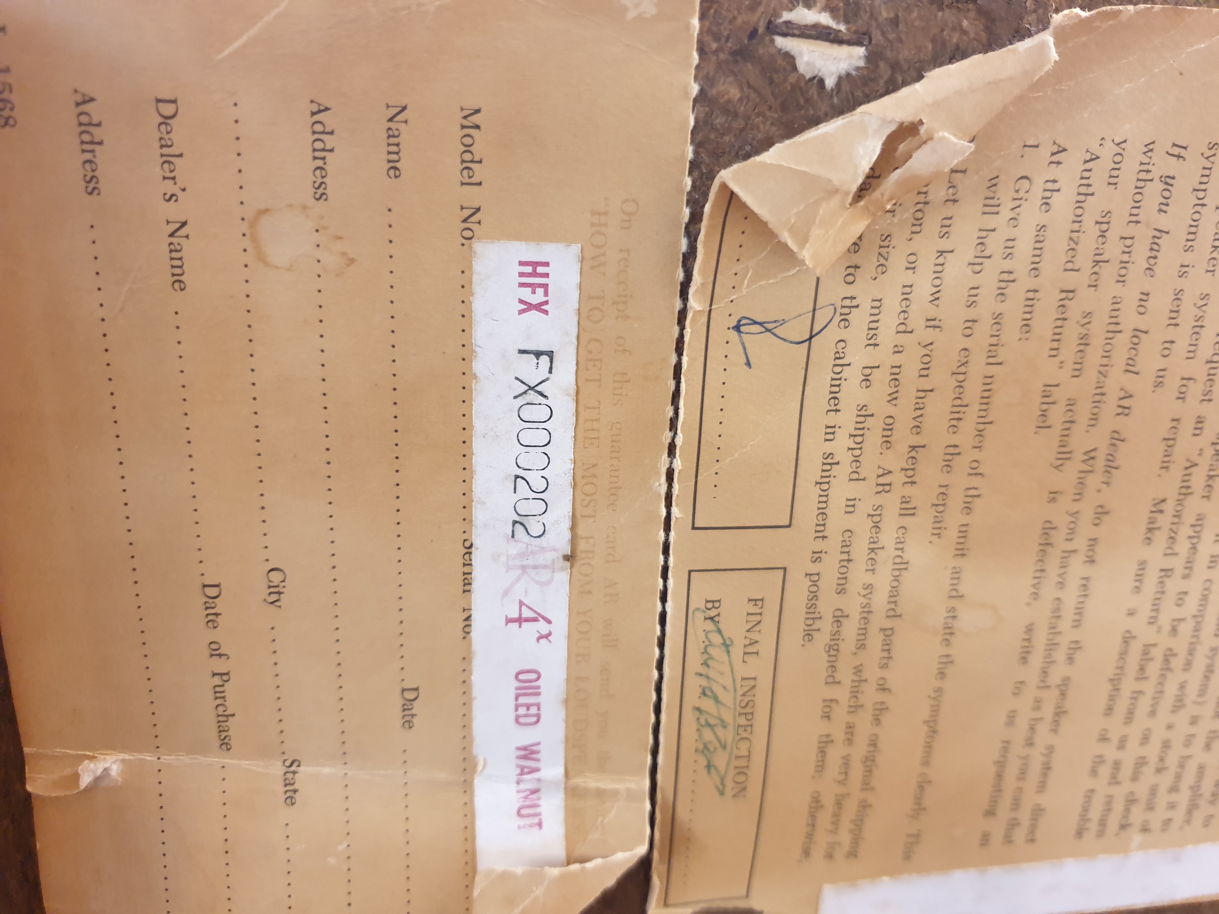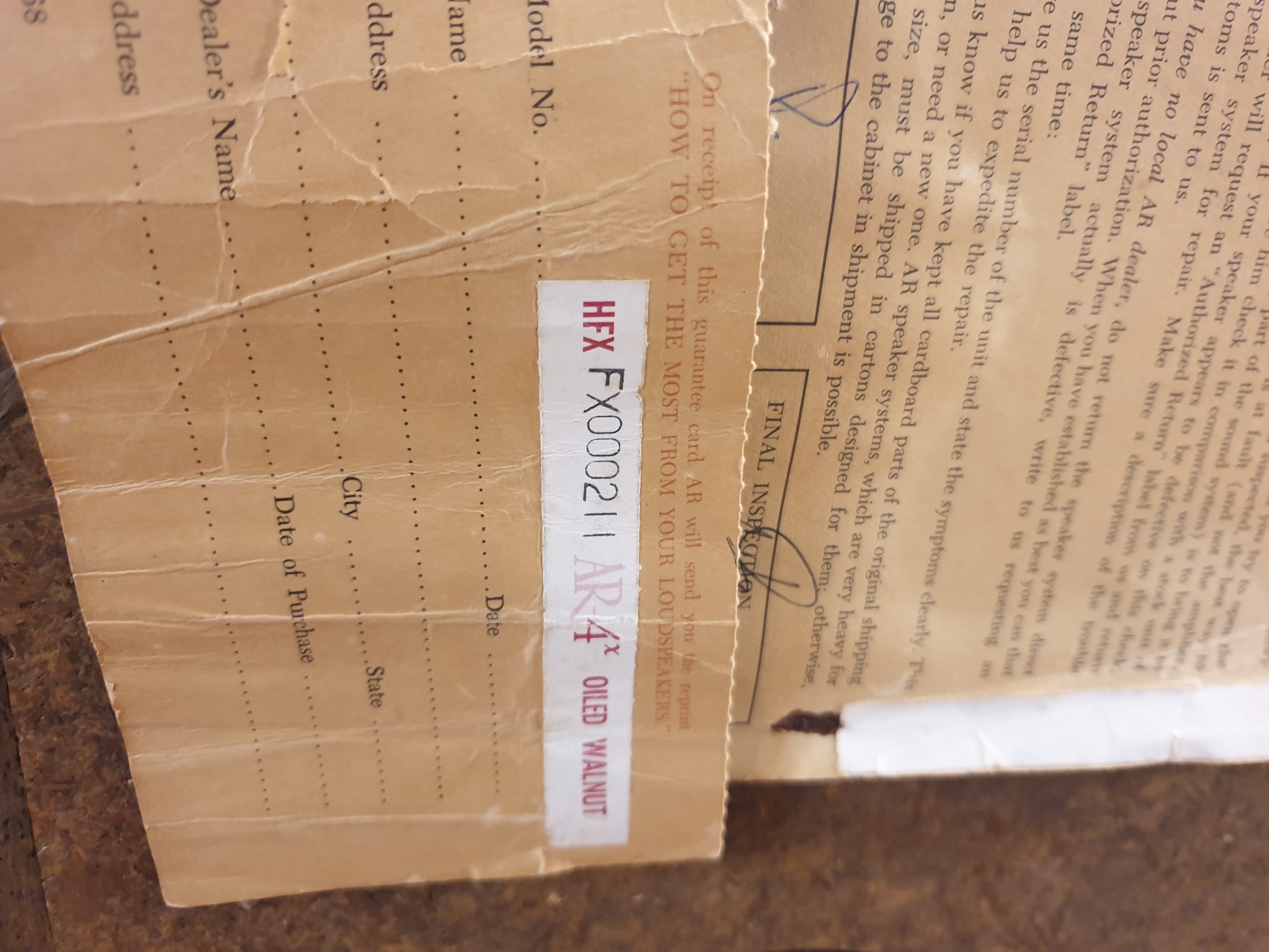 이번에 미국에서 들여온 노오픈 상태의 북쉘프 명기 (Acoustic Research) AR 사의 4x 스피커 입니다. 앞,뒤 칲보드