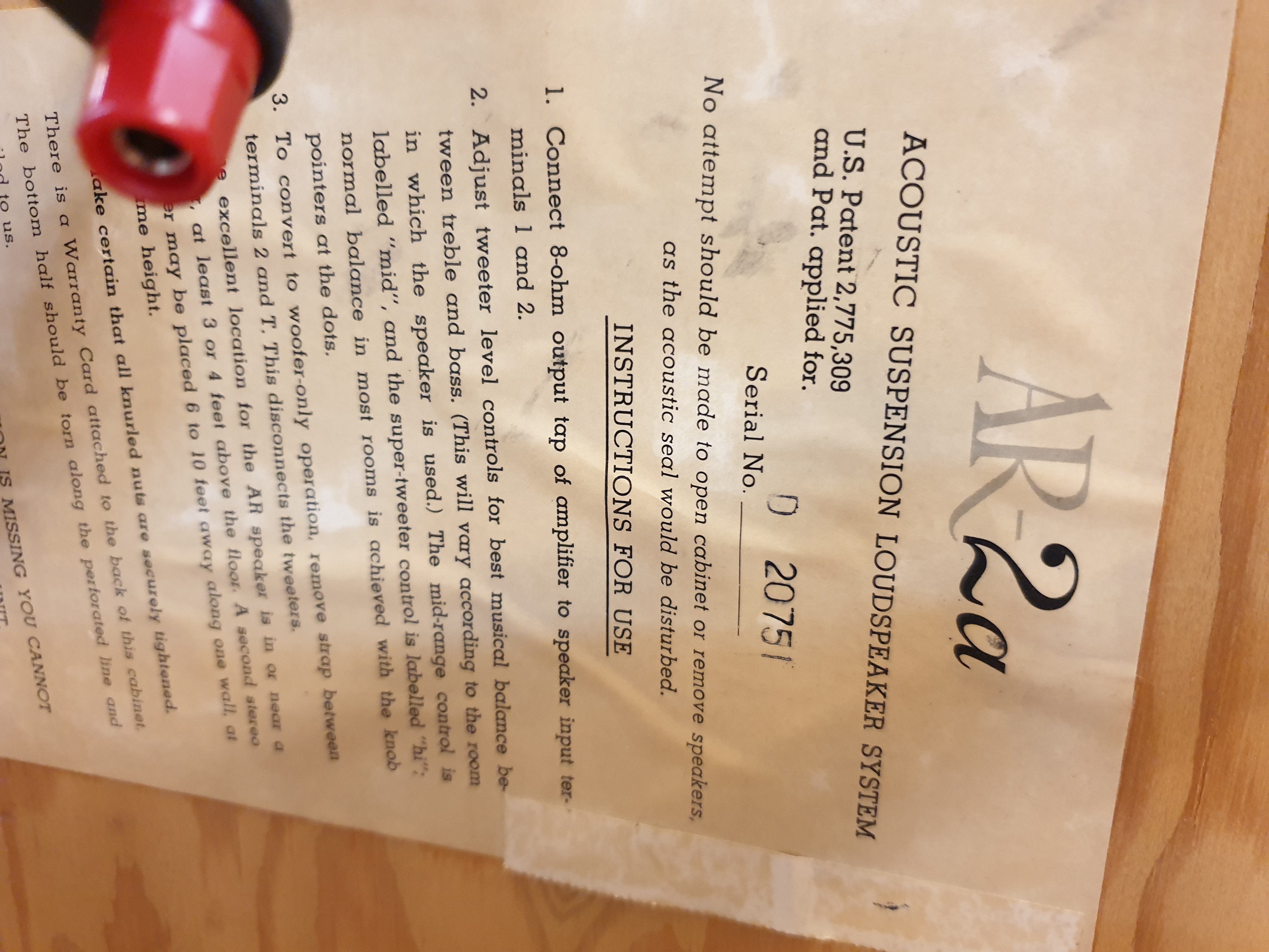 미국에서 들여온 (Acoustic Research)AR 사의 2a 스피커 입니다. 시리얼 차이가 거의 없는 2만번대 초기형