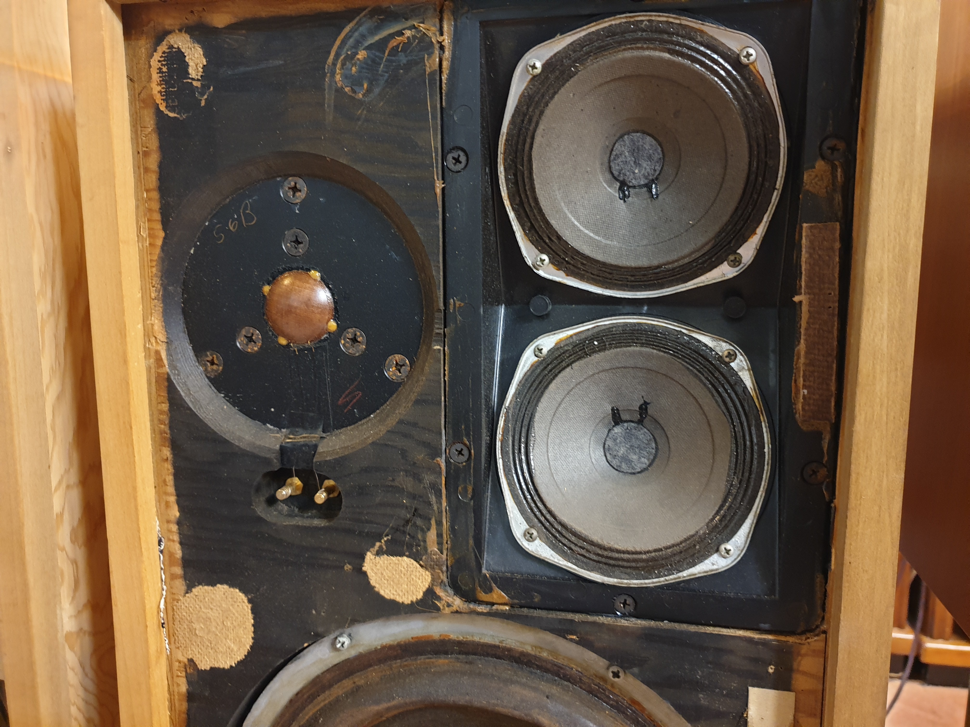 많이 티나지 않습니다. 사진과 같이 중음 크렉없이 완벽하며 고음 우퍼 상태 완벽을 자랑합니다. 매칭은 피셔 제품의