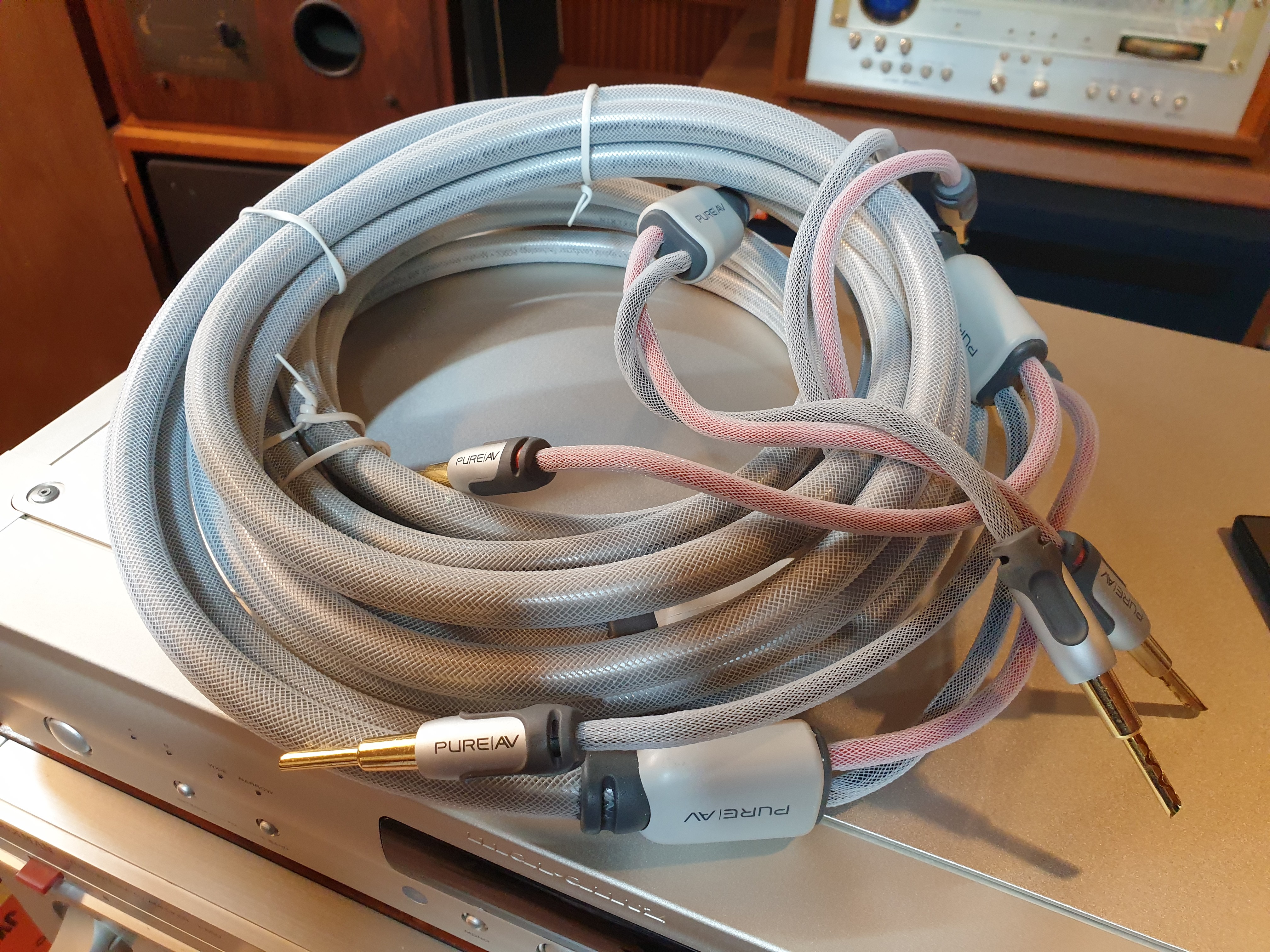 80년대부터 케이블을 만들어서 납품하던 BELKIN사에서 OEM납품했던 PURE AV 스피커케이블 3.5m 페어입니다