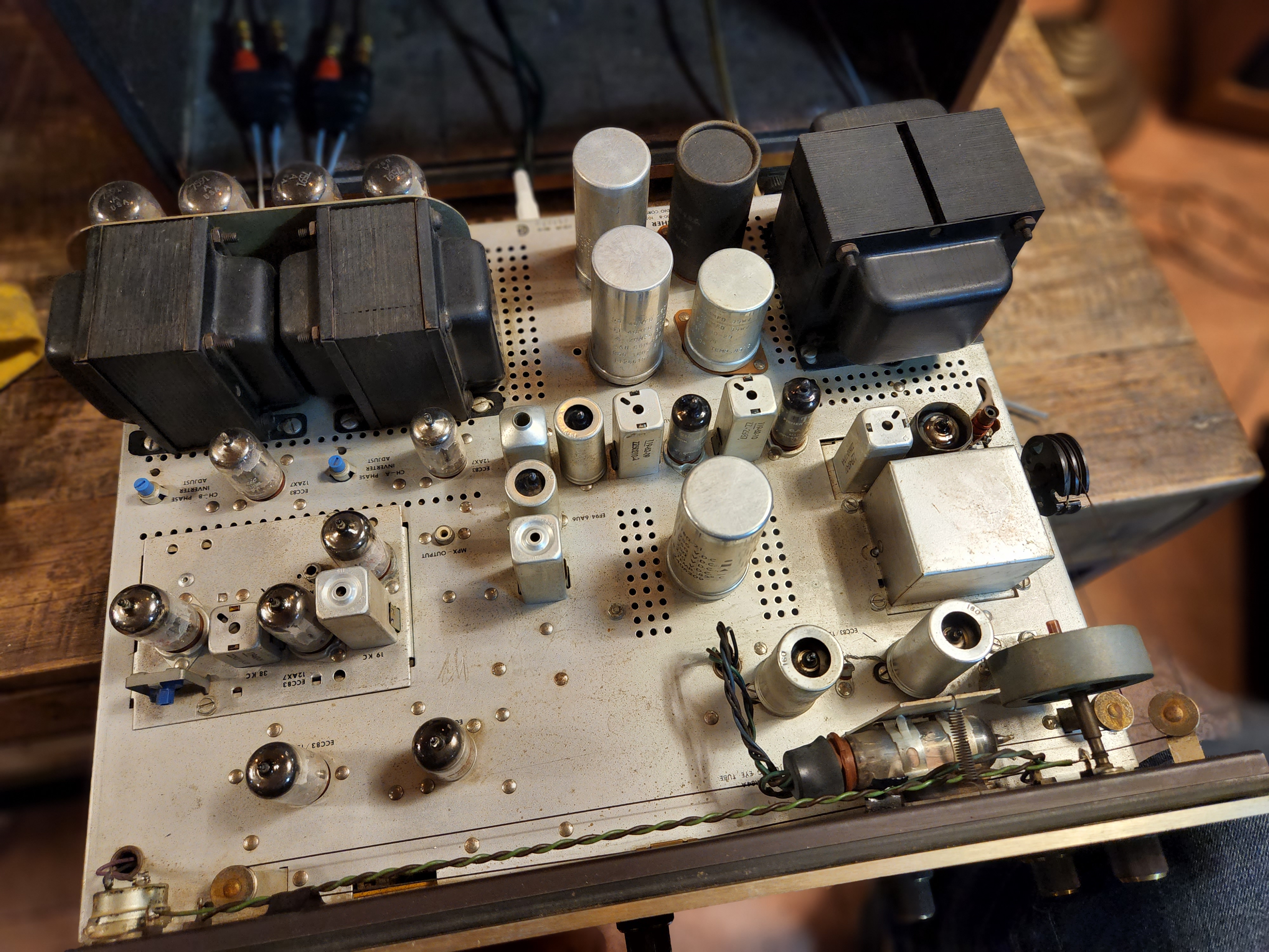7591 출력관은 GE에서 납품했던 EI 누드관 구성이며. 12AX7 밎 초단관은 모두 미제관 구성으로 되어 있습니다.