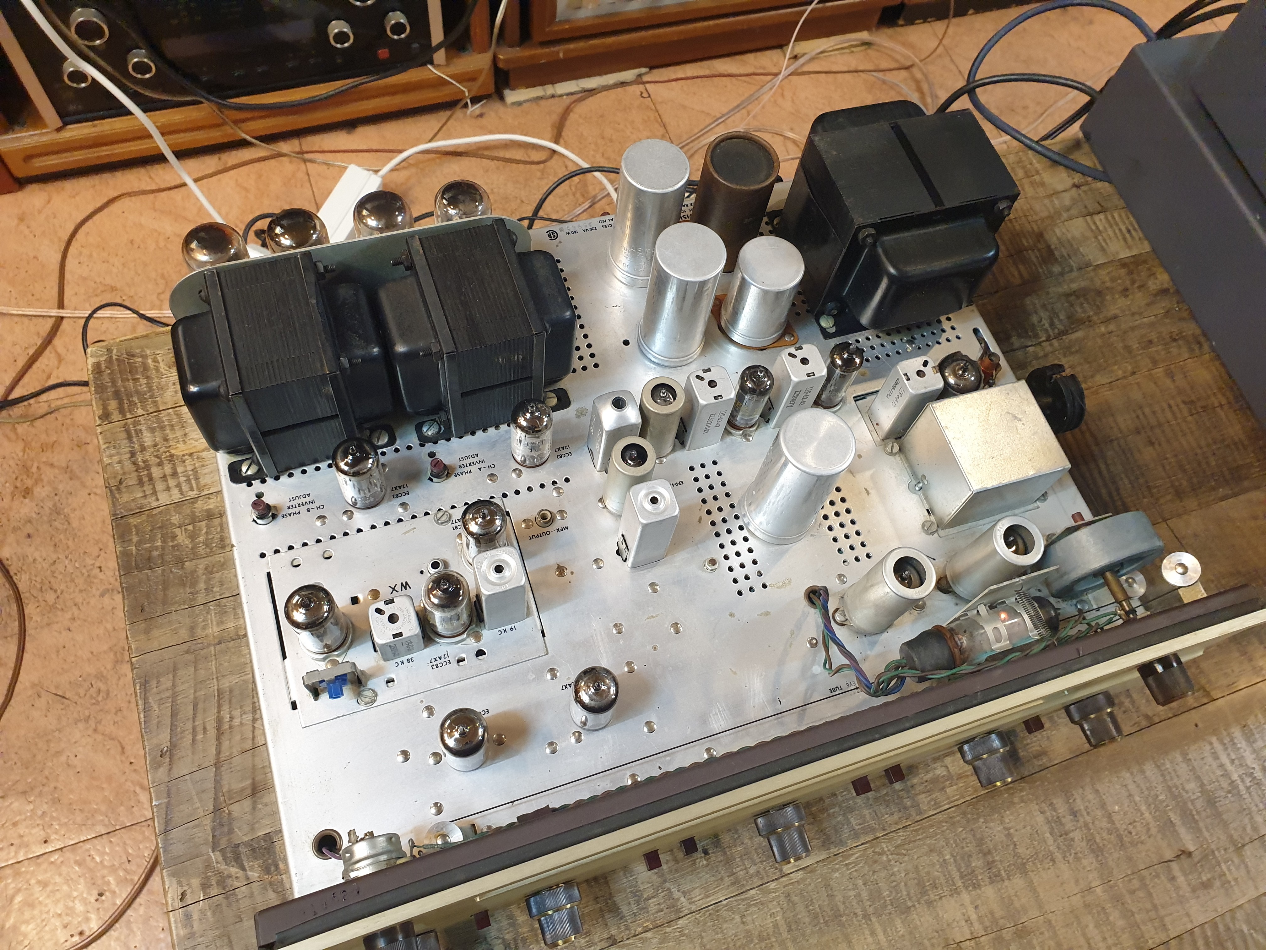 남은 1대 입니다. 7591 출력관은 피셔마킹 오리지널관 구성이며. 12AX7 은 피셔마킹과 텔레푼켄 각인관 구성으로