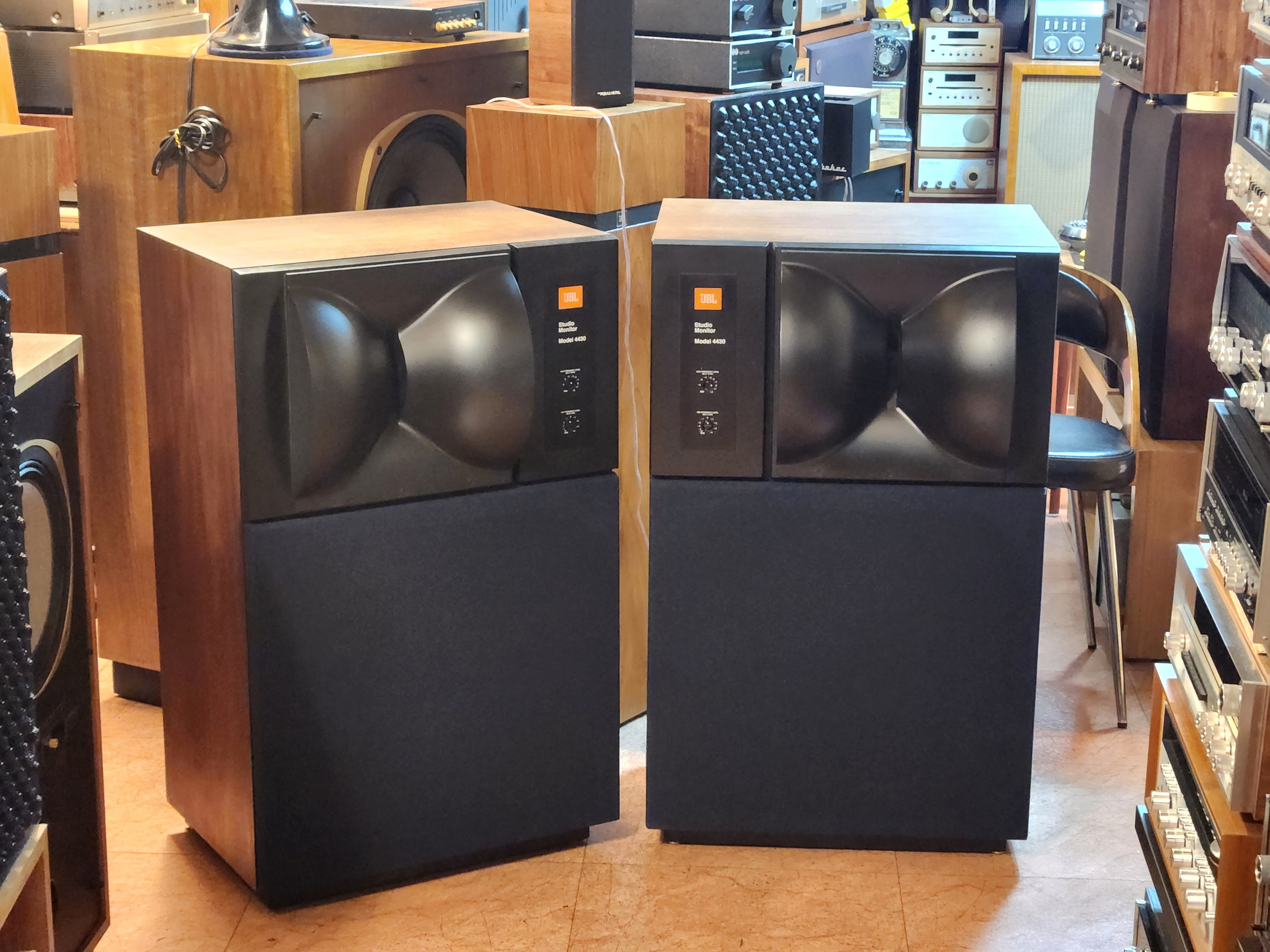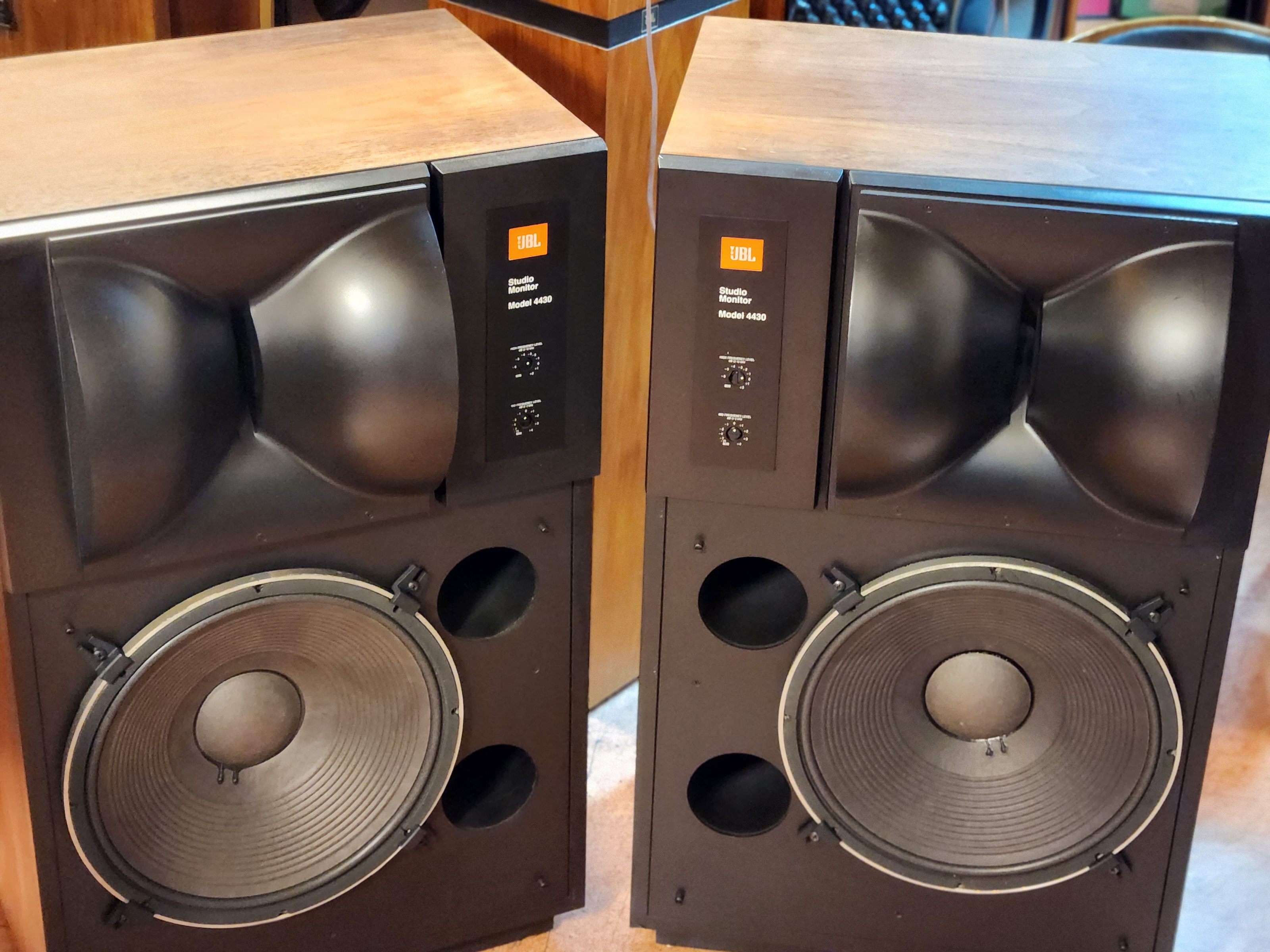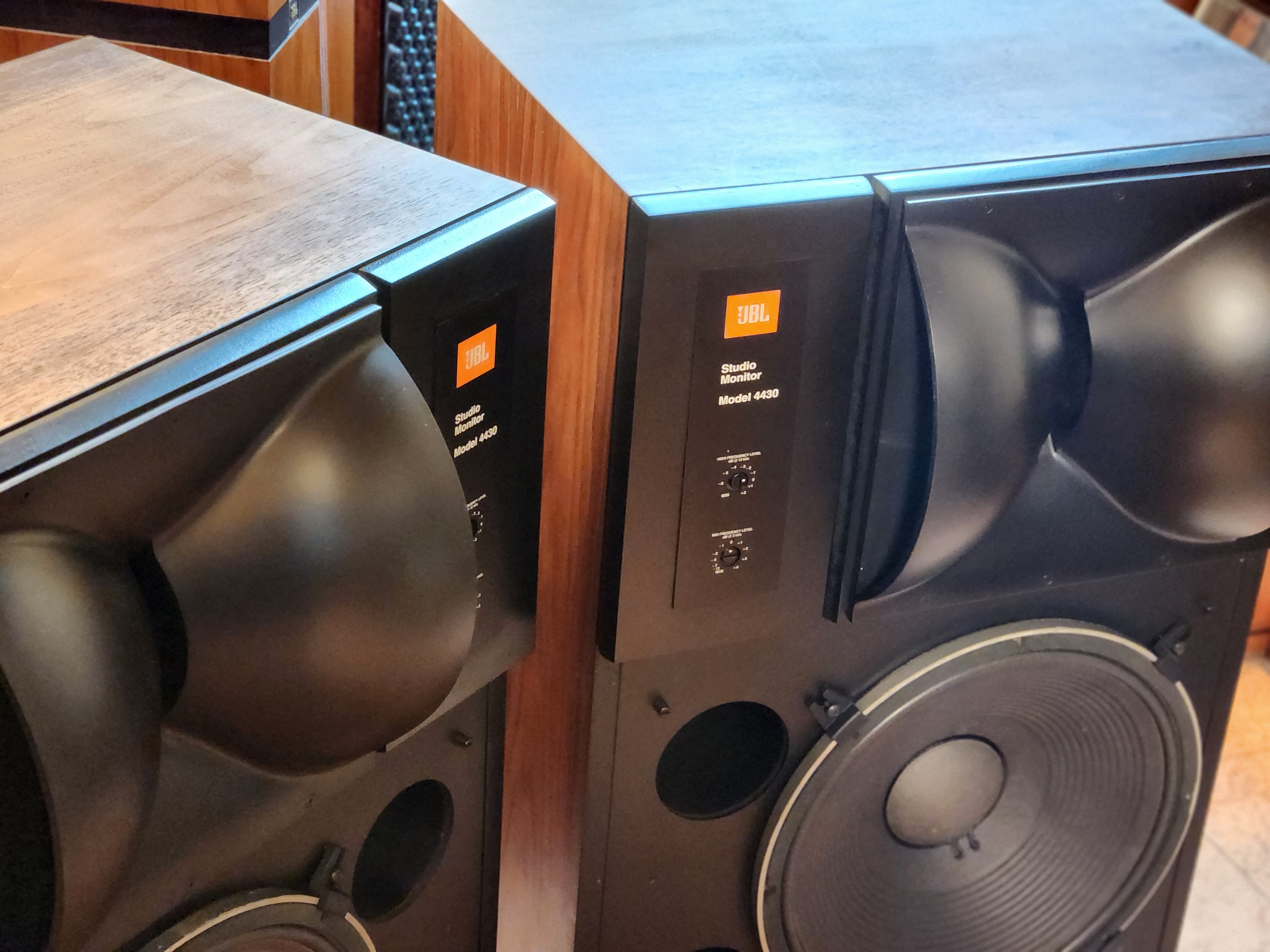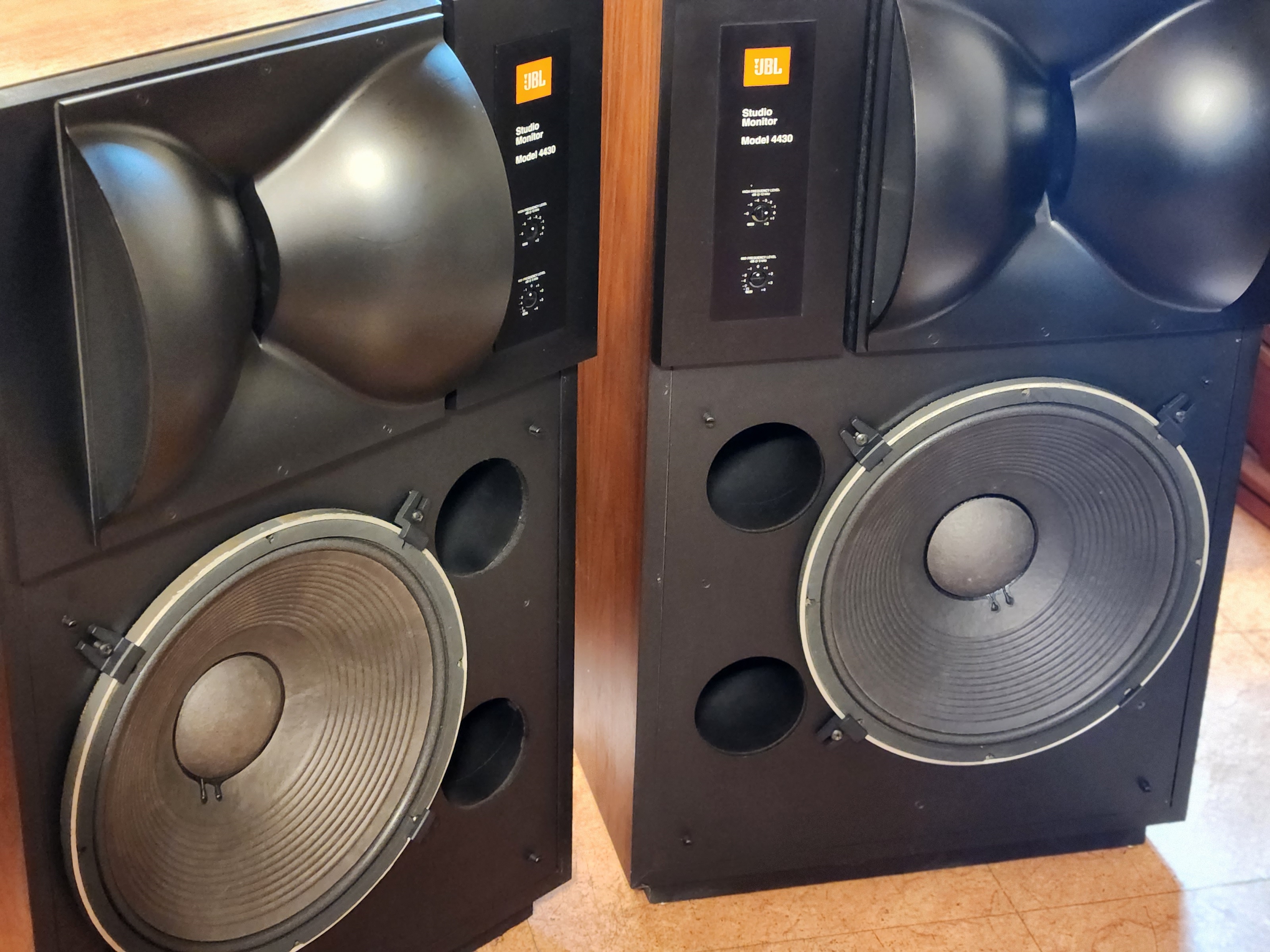 4425스피커는 빽그라이드 드라이버 작은것이 채용되었으며 4430의 드라이버는 진동판이 보여지는 JBL 구형 대형기들에