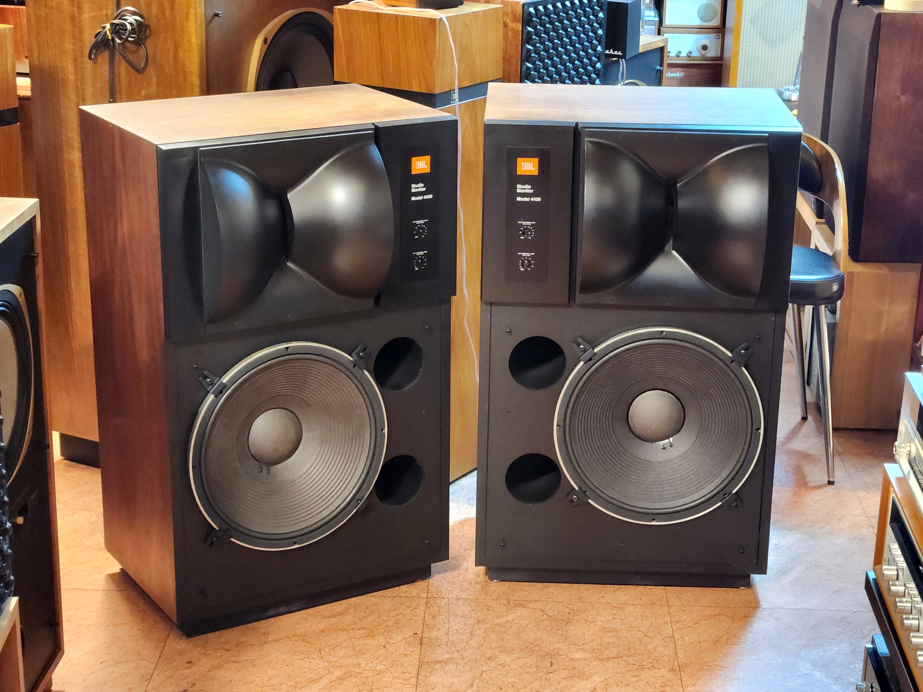 4425스피커는 빽그라이드 드라이버 작은것이 채용되었으며 4430의 드라이버는 진동판이 보여지는 JBL 구형 대형기들에