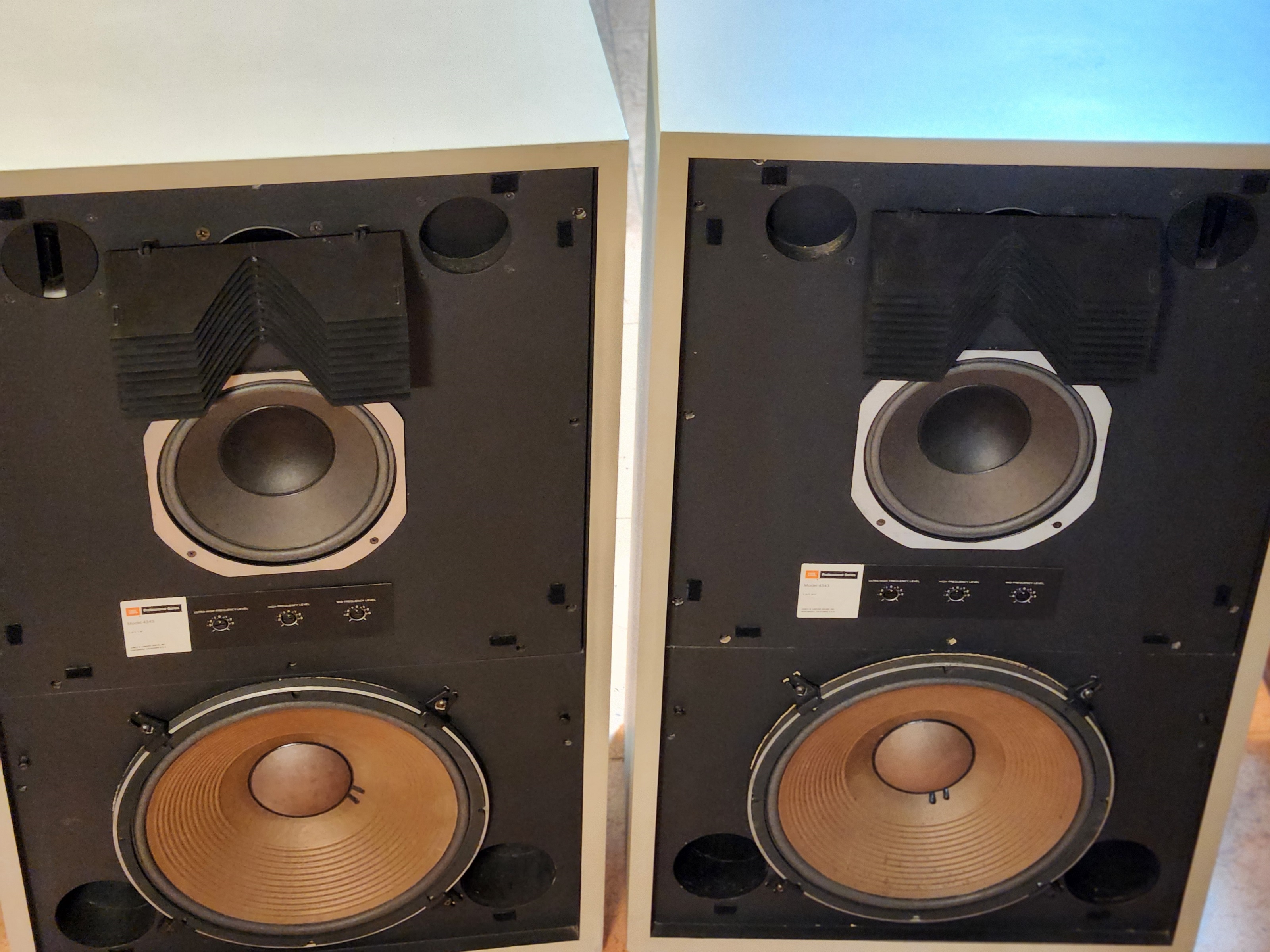 JBL 스테디셀러인 4343 STUDIO MONITOR 대형 스피커 입니다. 오디오 입문으로 시작하시는 분들에게는