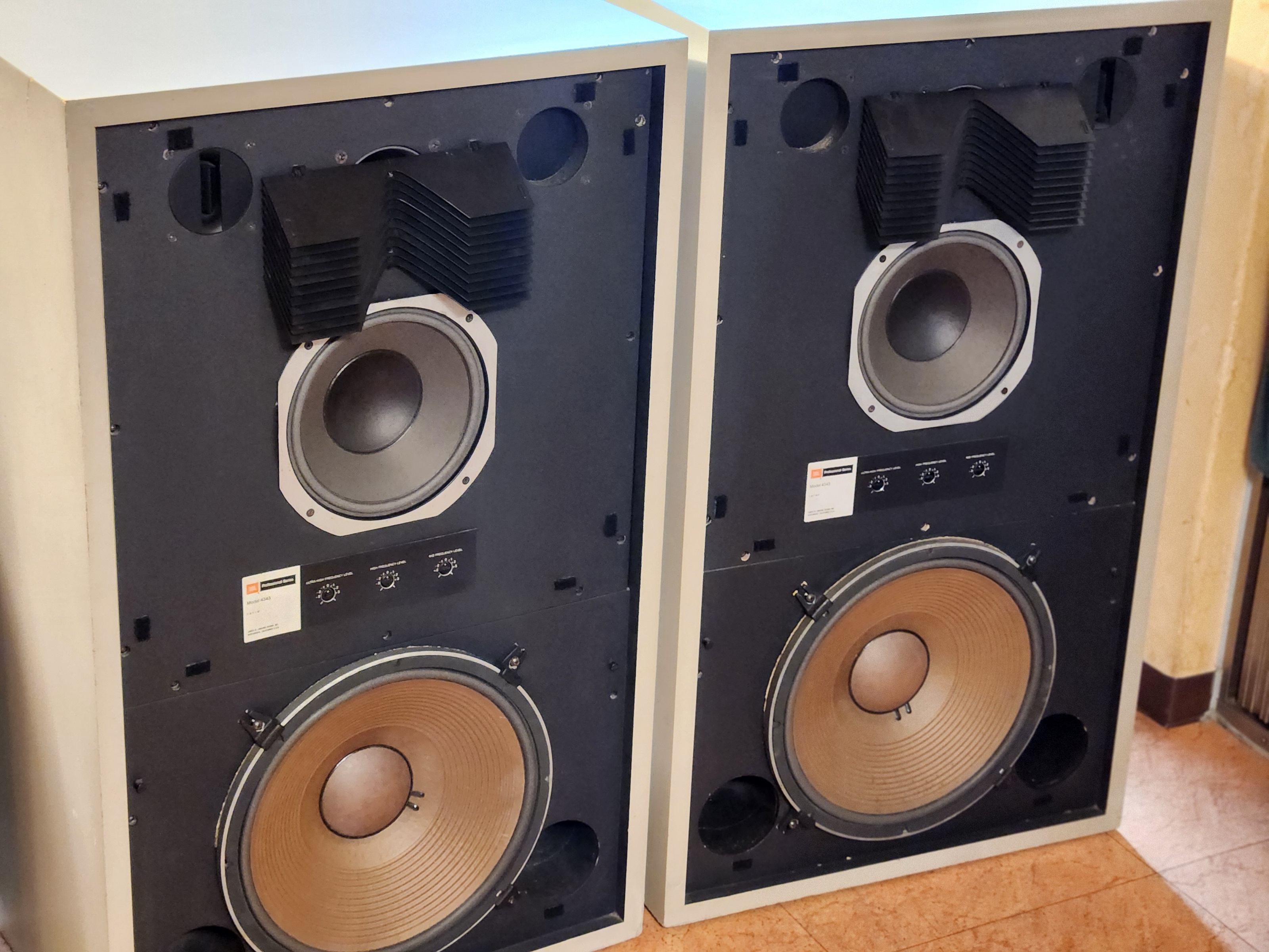 JBL 스테디셀러인 4343 STUDIO MONITOR 대형 스피커 입니다. 오디오 입문으로 시작하시는 분들에게는