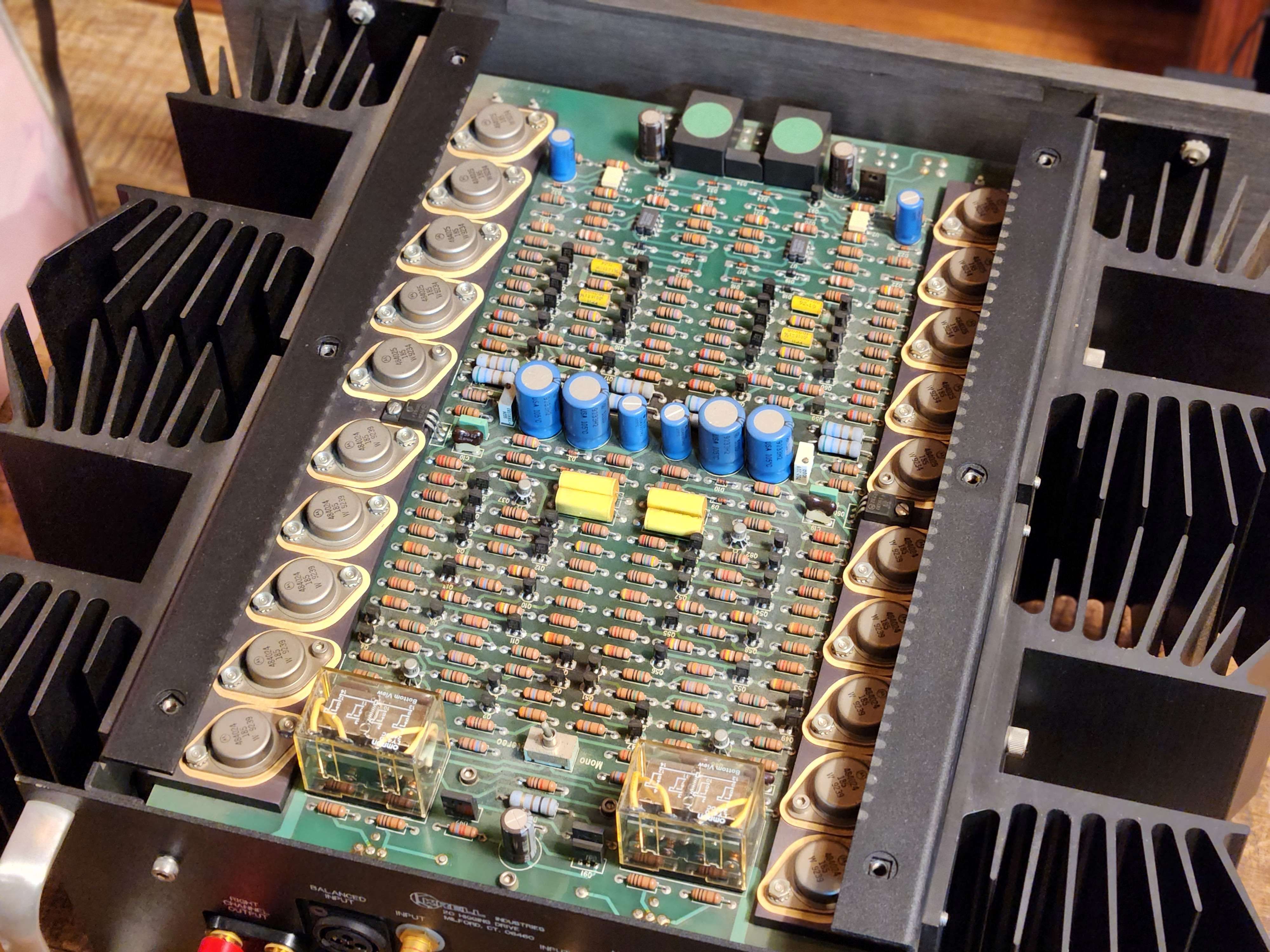 1옴에 800W 8옴에 100W 출력을 지원하며 50W까지 A Class 구동으로 알려져 있습니다. 적당히 열이 나는 엠프이며