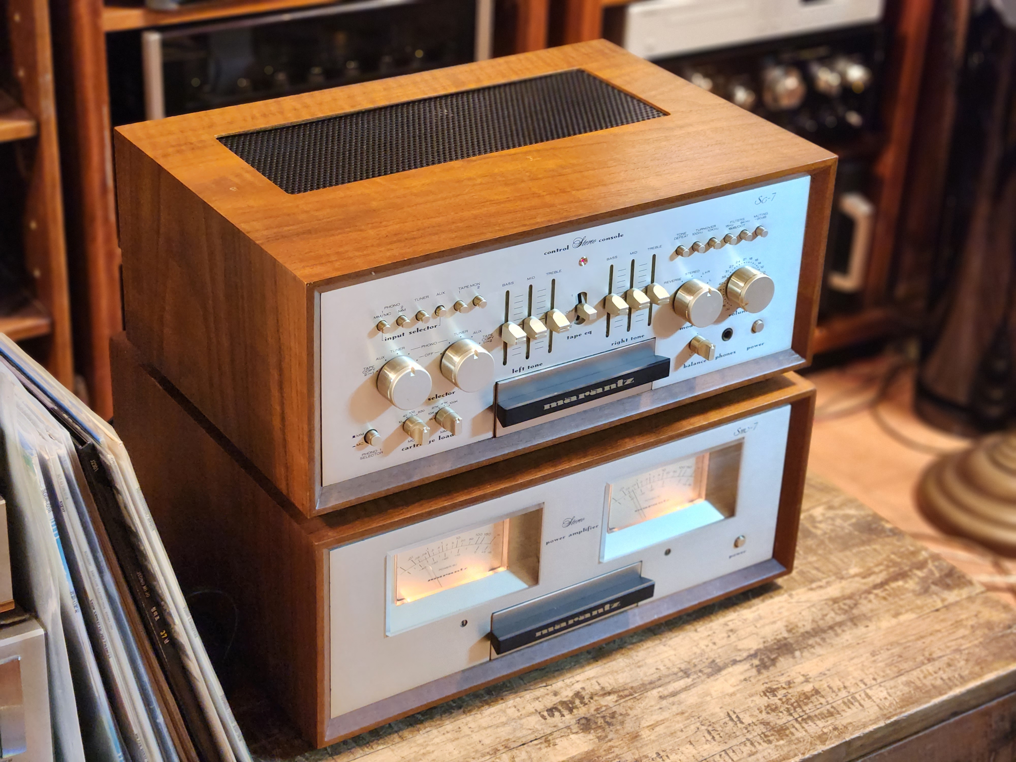 Marantz 마란츠 사의 구형 베스트셀러 분리형 제품인 SC-7 프리엠프와 SM-7 파워엠프 구성입니다.