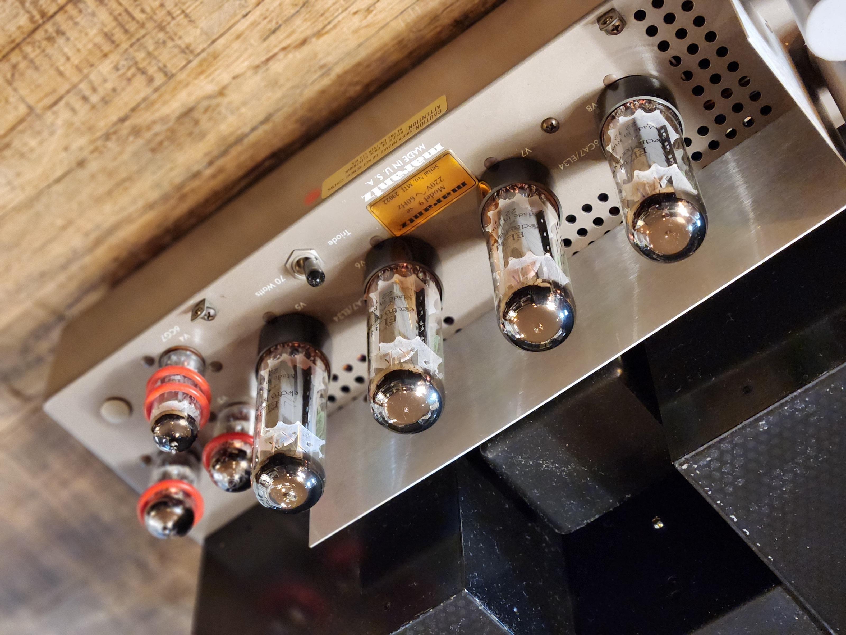 EL34 진공관을 사용한 이 초선형 병렬 푸시-풀 설계는 70와트의 전력을 생산했는데, 이는 당시로서는 상당한 성과였습니다. 증가된 출력은 부분적으로 McIntosh와의 강력한 경쟁에서 비롯되었습니다. McIntosh의 파워 앰프(당시)는 일반적으로 동급 Marantz 모델보다 더 근육질이었습니다. Model 9를 3극관 작동으로 설정하여 더 낮은 와트수에서 더 나은 사운드를 얻을 수도 있다는 점은 주목할 가치가 있습니다.