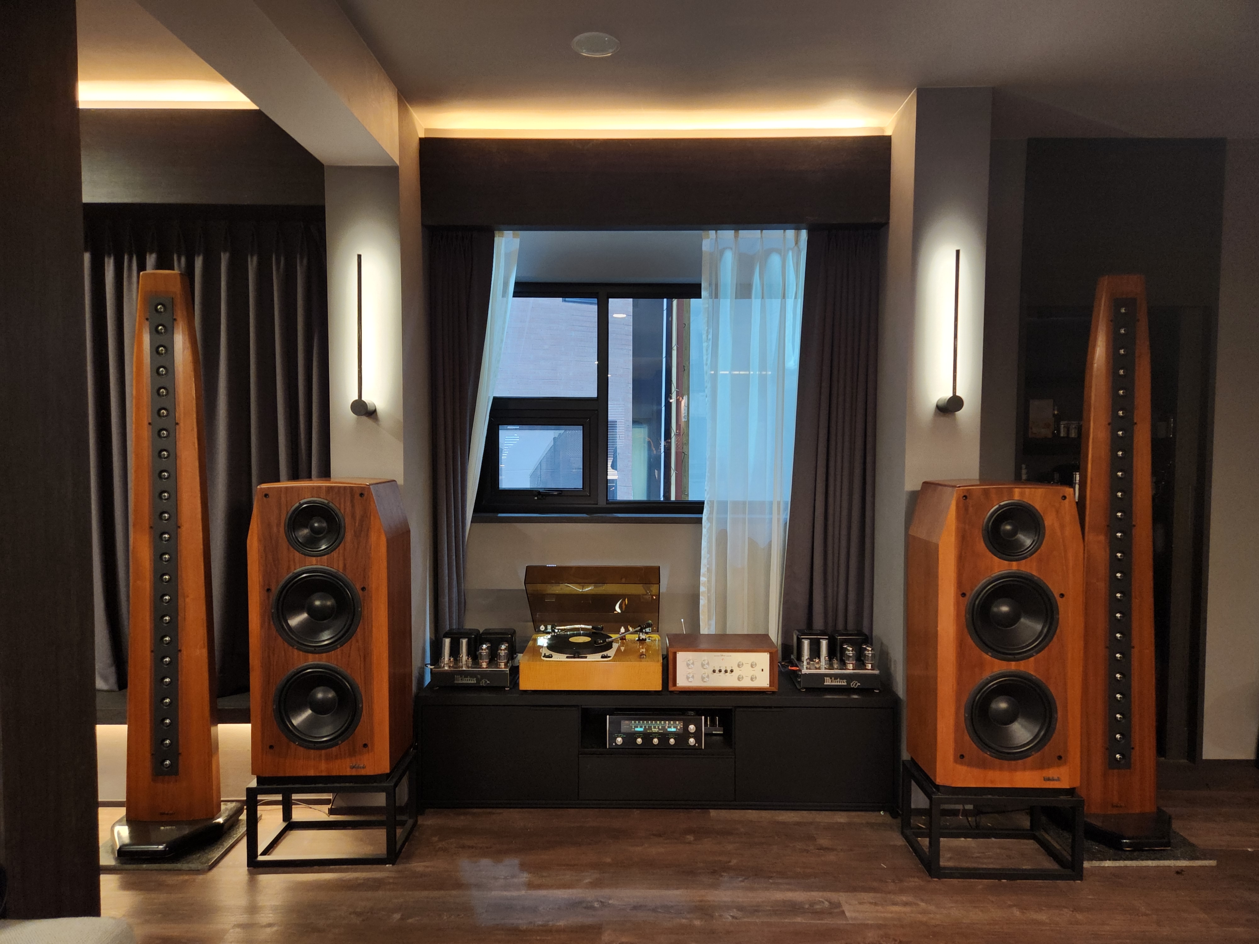 어느 공간에 가도 훌륭한 자태와 소리를 들려주고 보여주리라 봅니다. 생각보다 맥킨토시MC500 급되는 파워엠프와