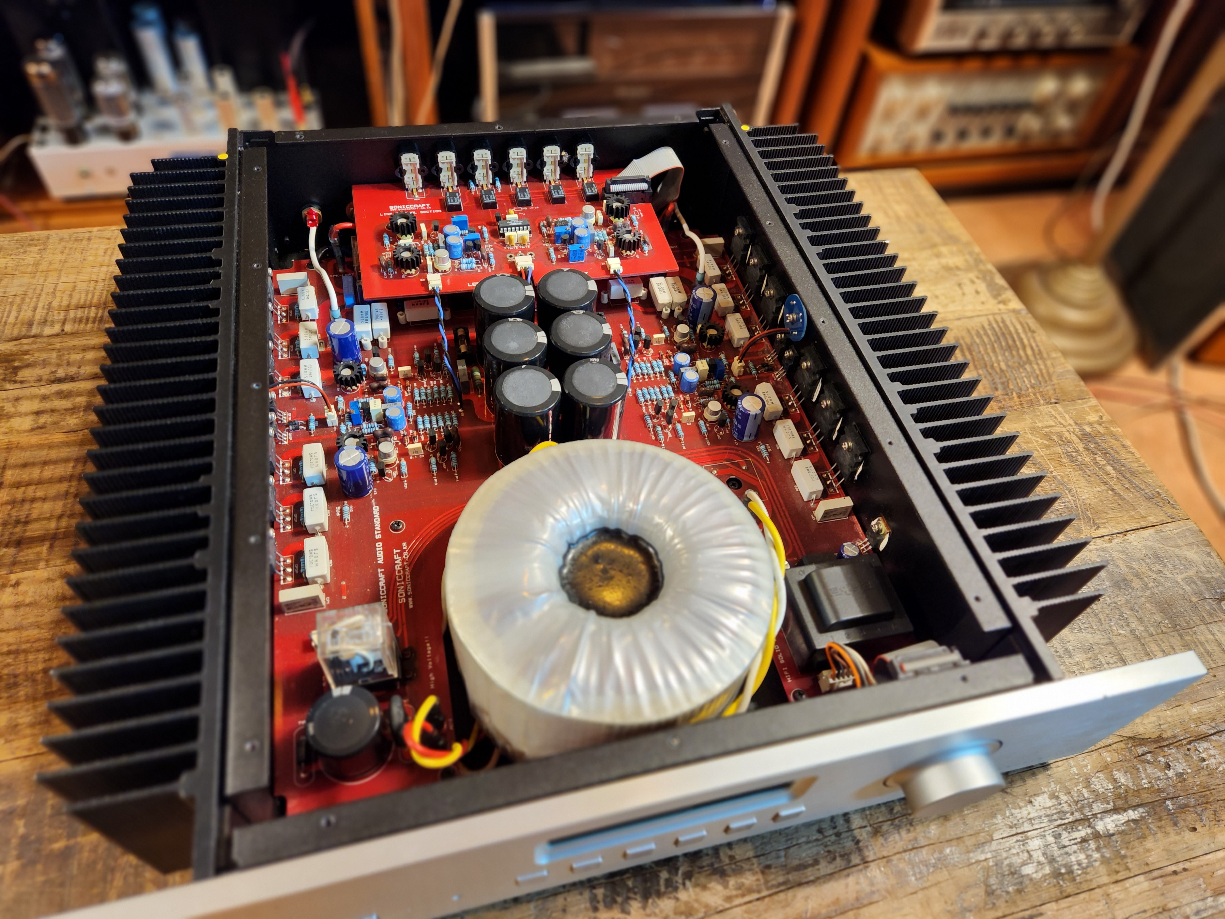 2000년대 국내 작중  가성비 끝판왕 이라고 불리우는 소닉크래프트 사의 마일스톤 SA-300 인티엠프 입니다. 내부사진