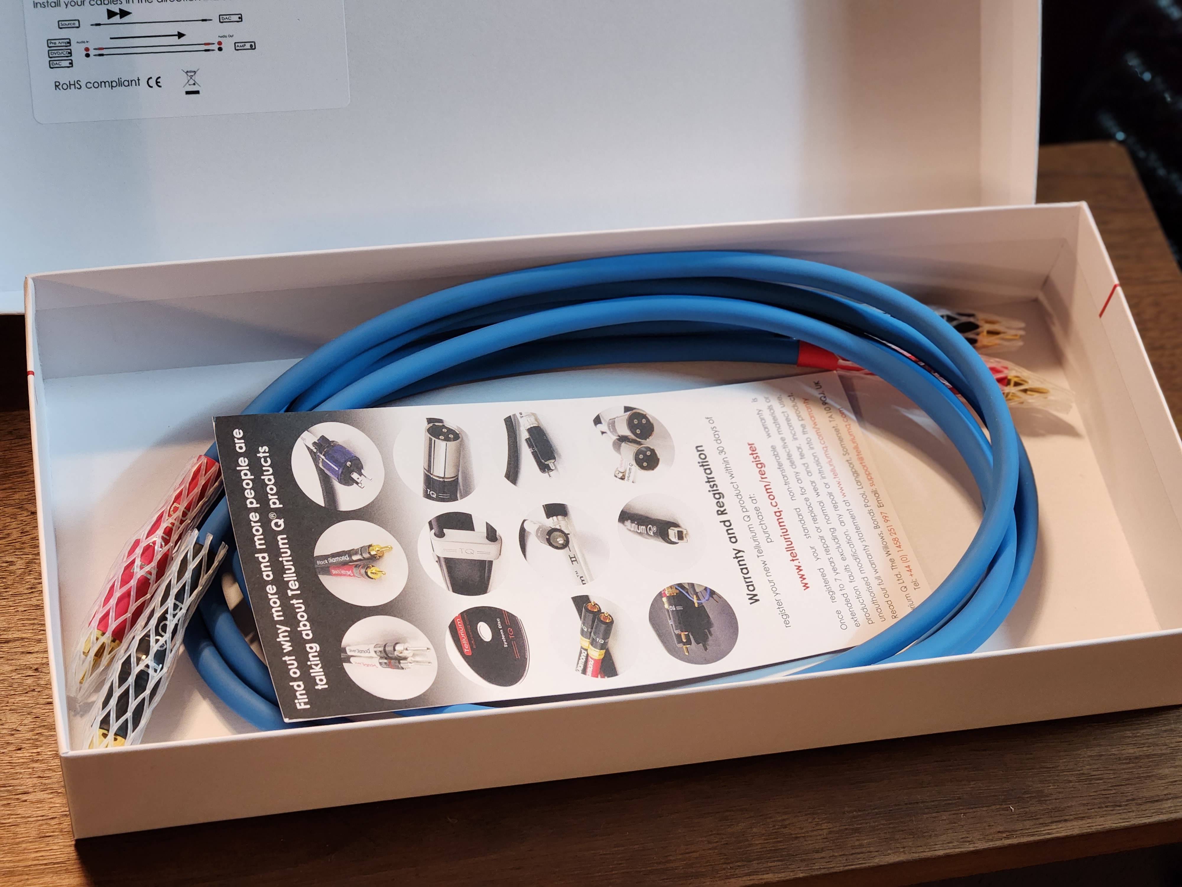 영국 텔루륨Q 사의 BLU II RCA 인터케이블 1조입니다. 미사용품 으로서 현재도 50만원대 신품을 판매하는