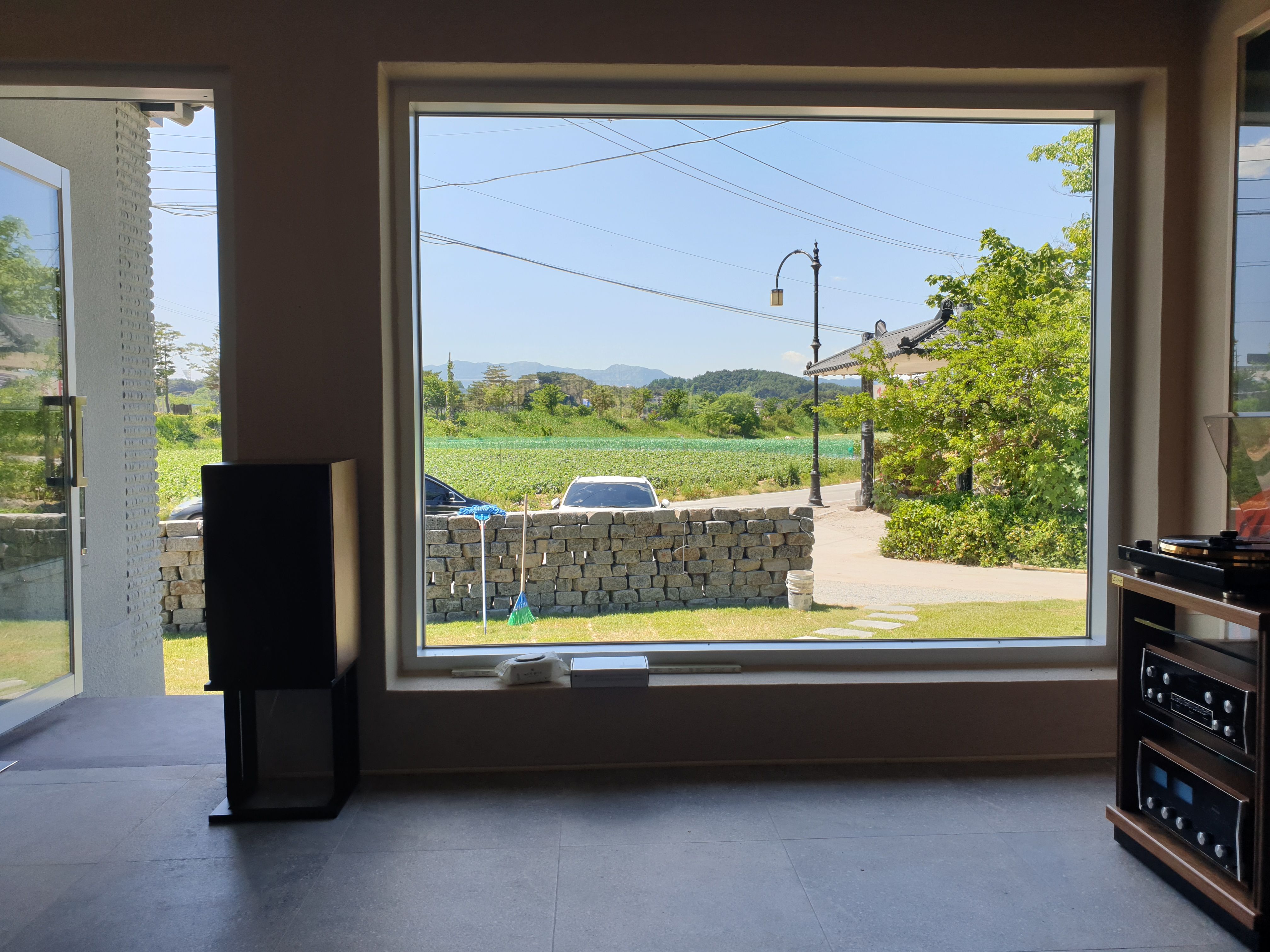 속에서 보이는 바깥풍경입니다. 훤하고 녹색이 풍요로워 보입니다.