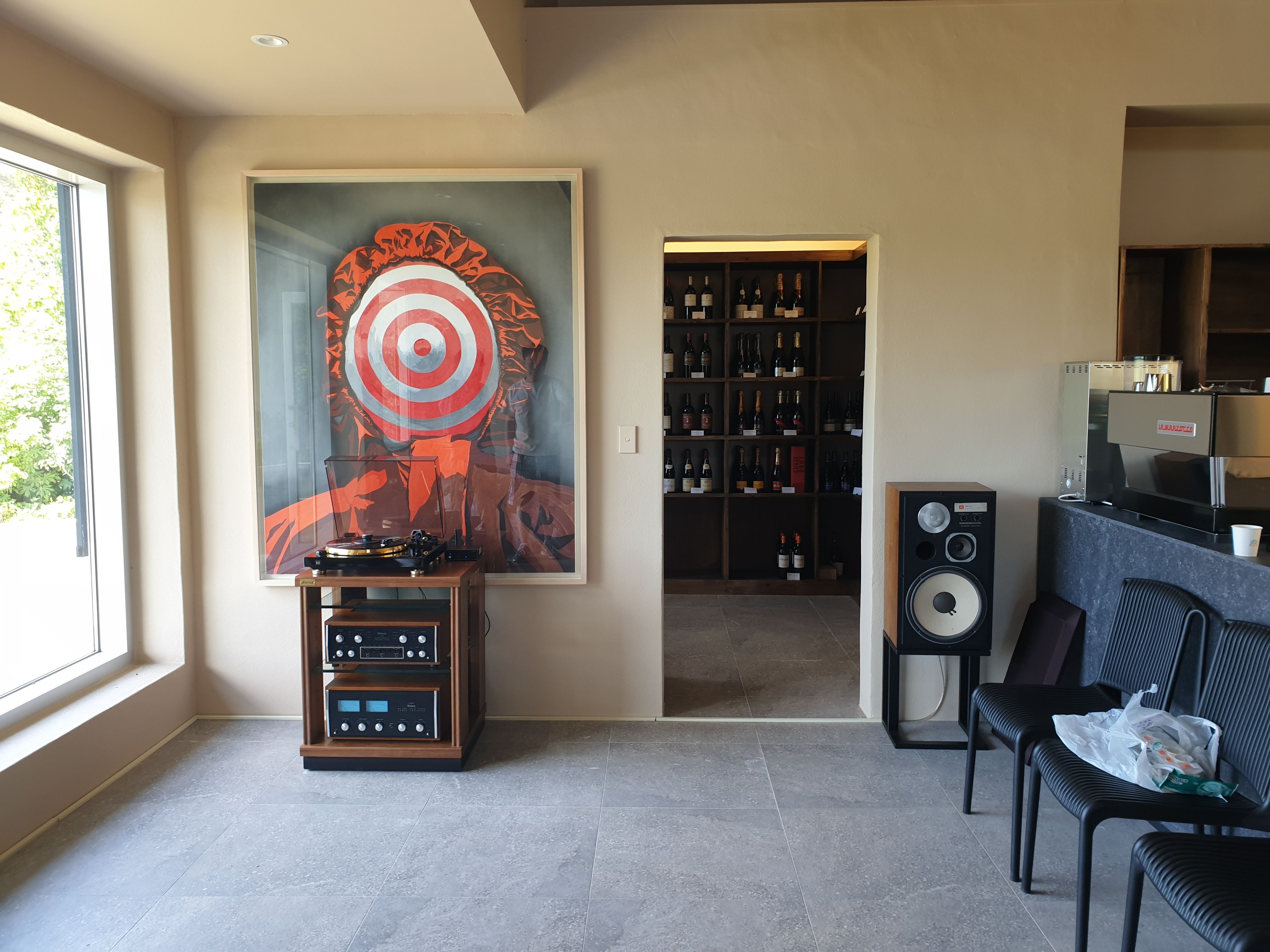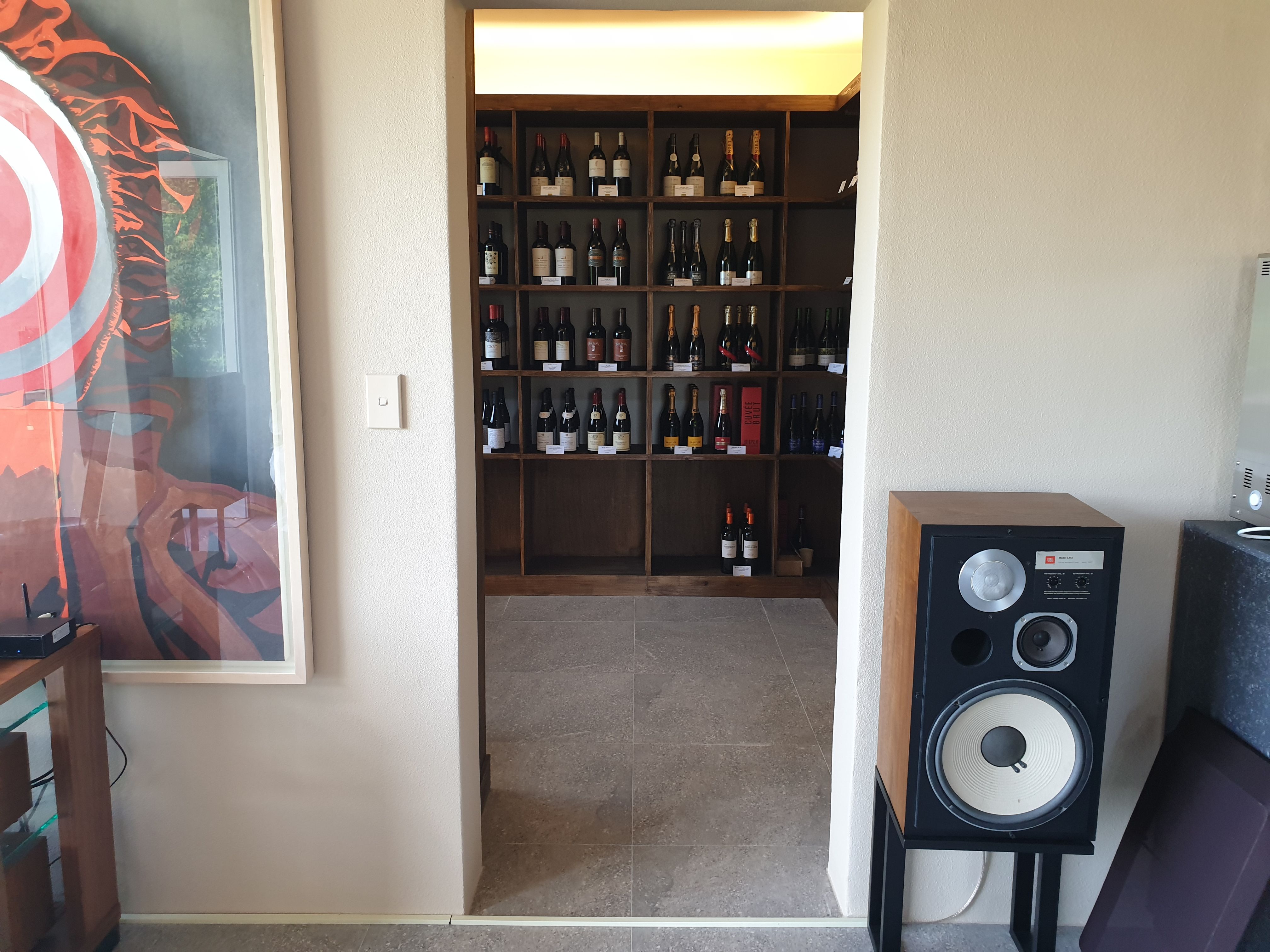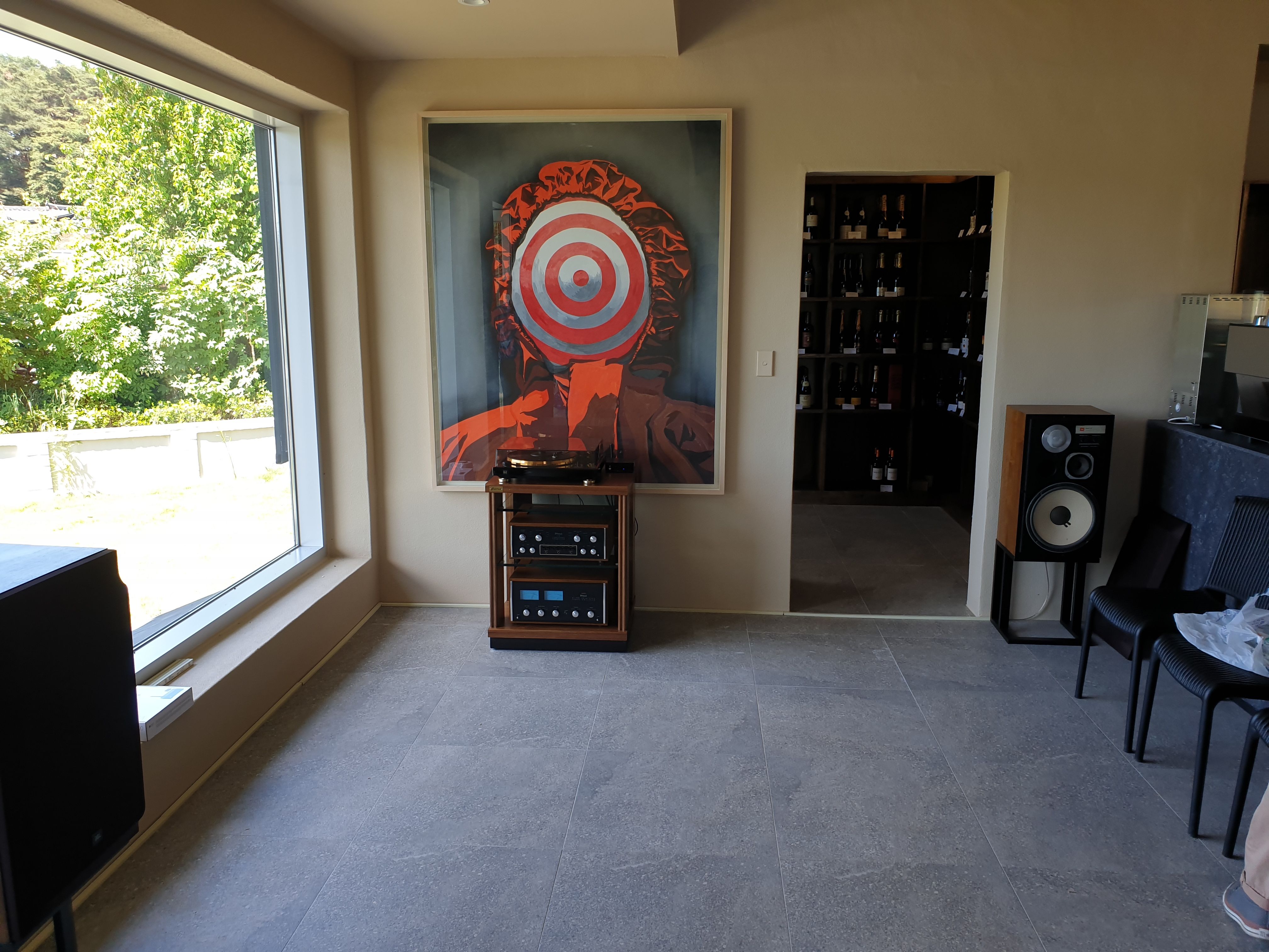 연결하였구요 스피커는 JBL L112스피커로 연결해 드렸습니다. 생각보다 공간이 가벽도 없고 천정이 높아 소리가