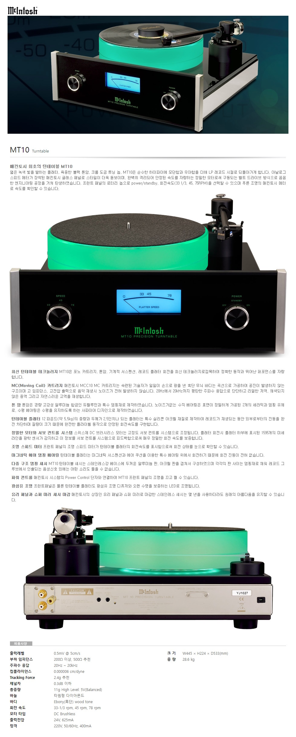 미국 Mcintosh 맥킨토시 최초의 MT-10 턴테이블 입니다 -극상품-(Stock-out)