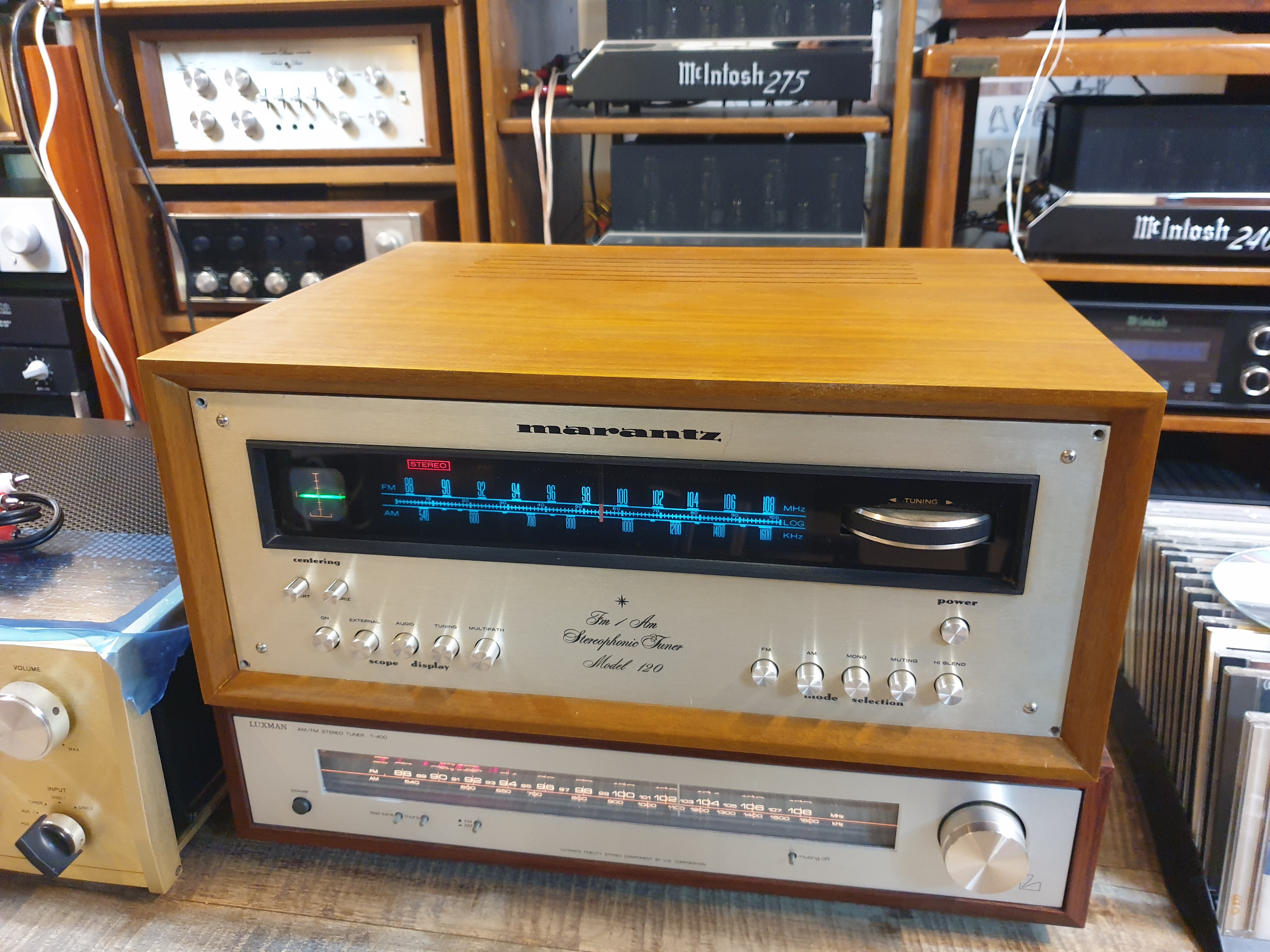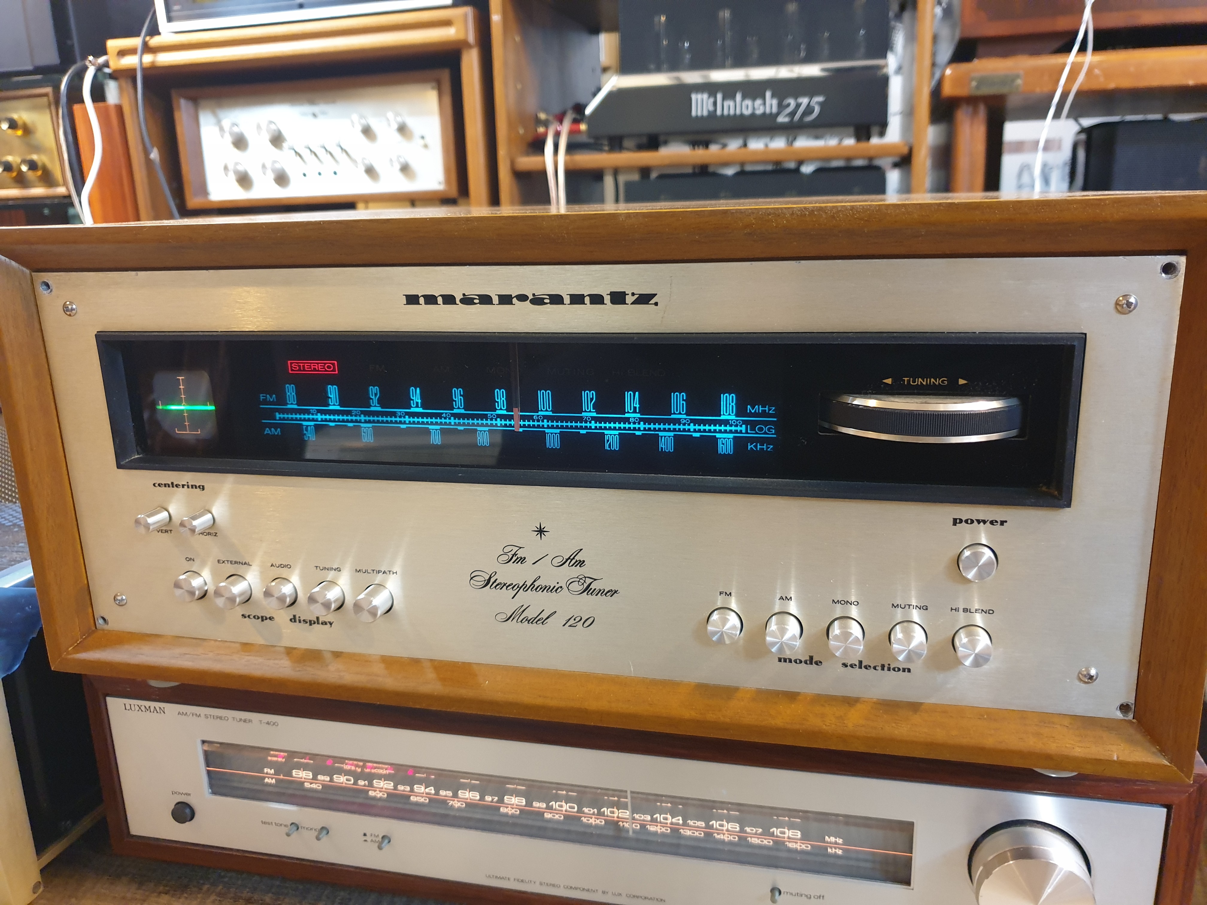 시장에 자주 나오지 않는 귀한 모델중 한제품에 속하는 마란츠 명기 120 스코프형 아날로그 튜너 입니다.