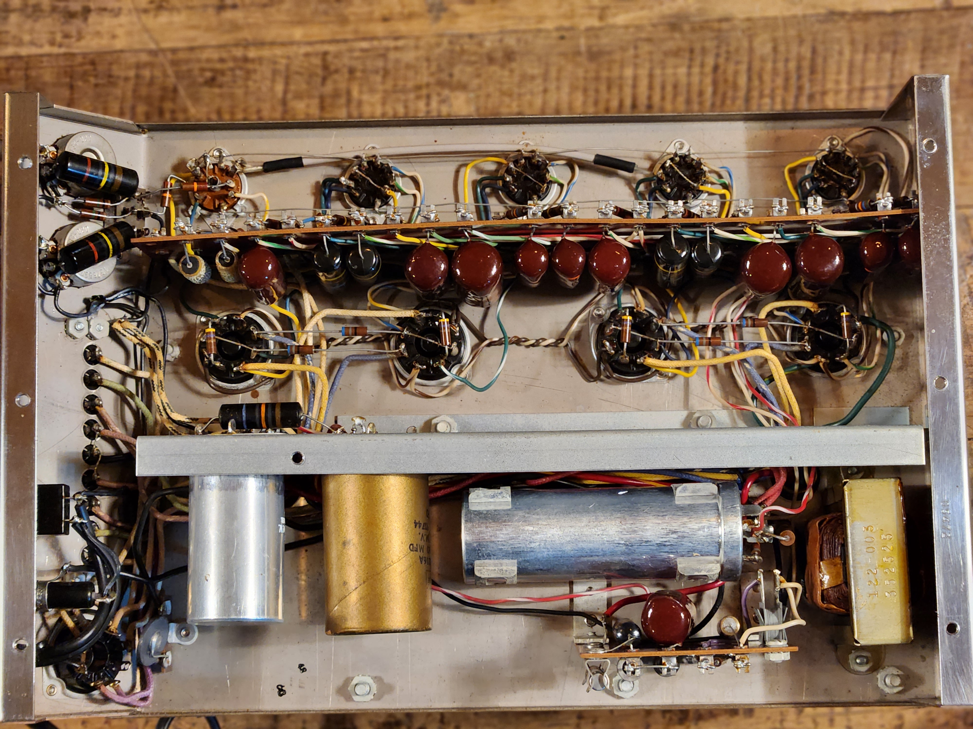 TUBES: 4-7591 output, 12AX7, 2-12AU7, 2-12BH7. Solid state rectifier.