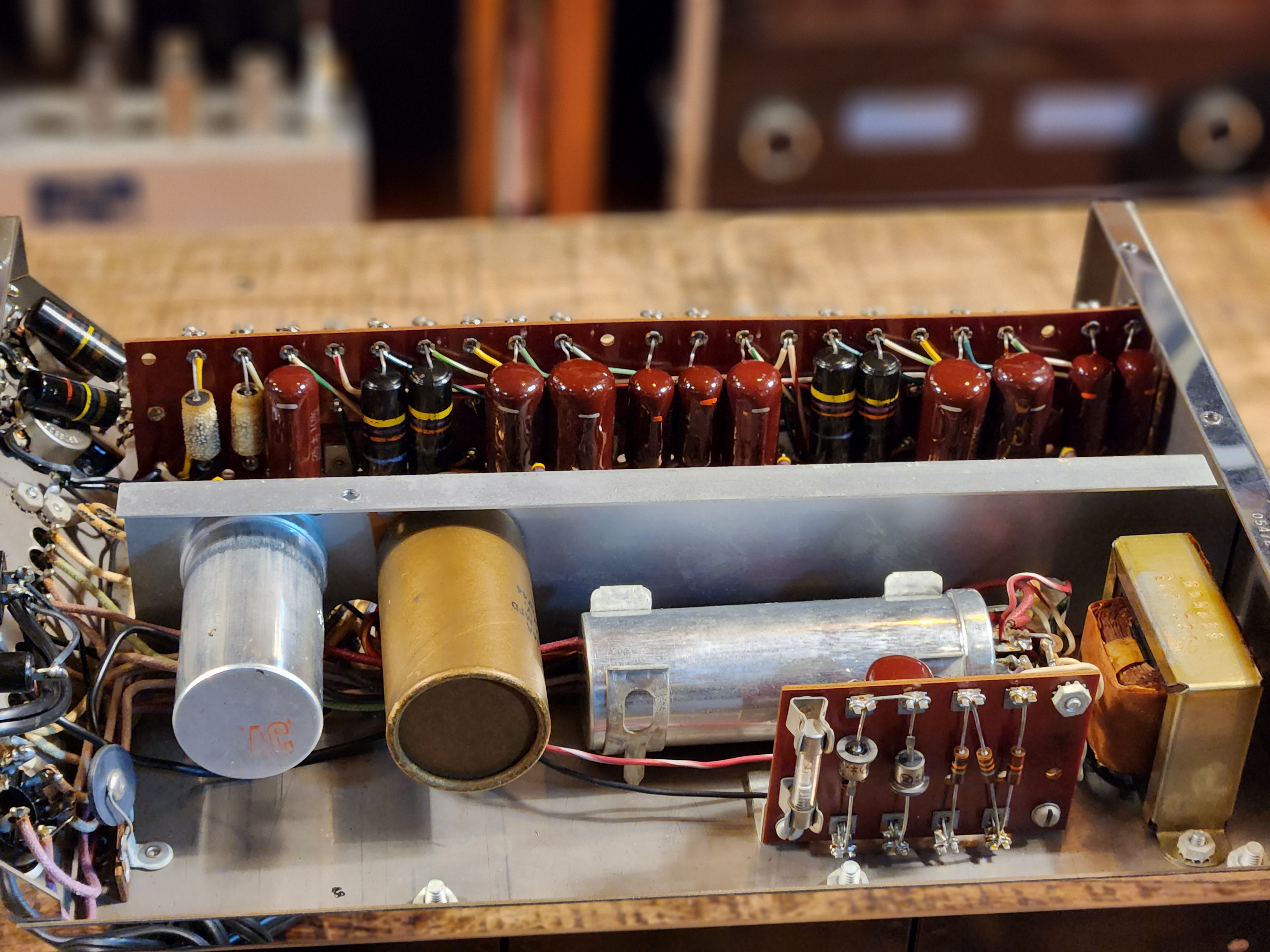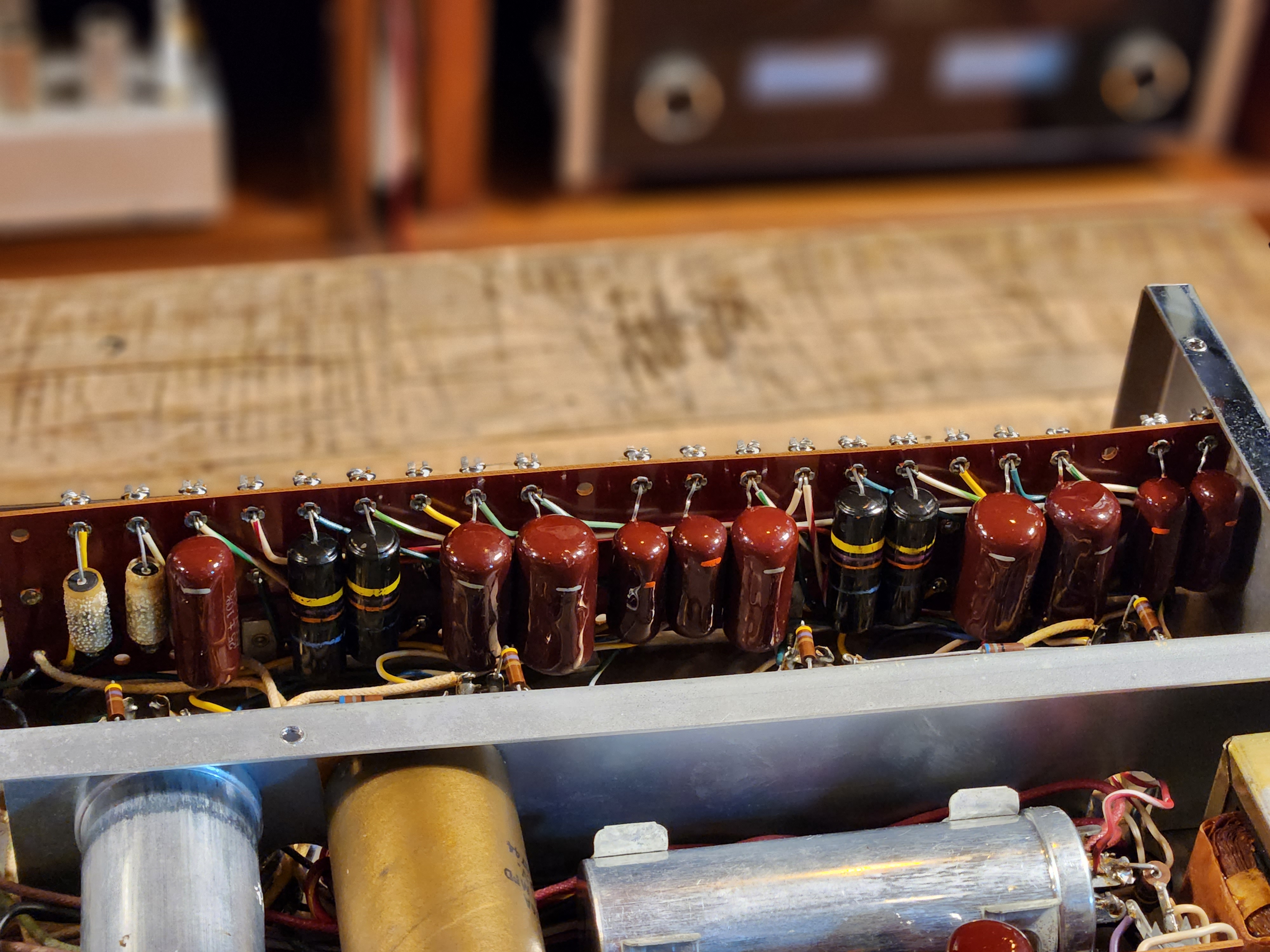 구형 피셔 진공관엠프 제품에 많이들어가는 갈색 건빵콘덴서 들과 범블비 제품군들이 이루어져 채용되어 있는 제품으로서